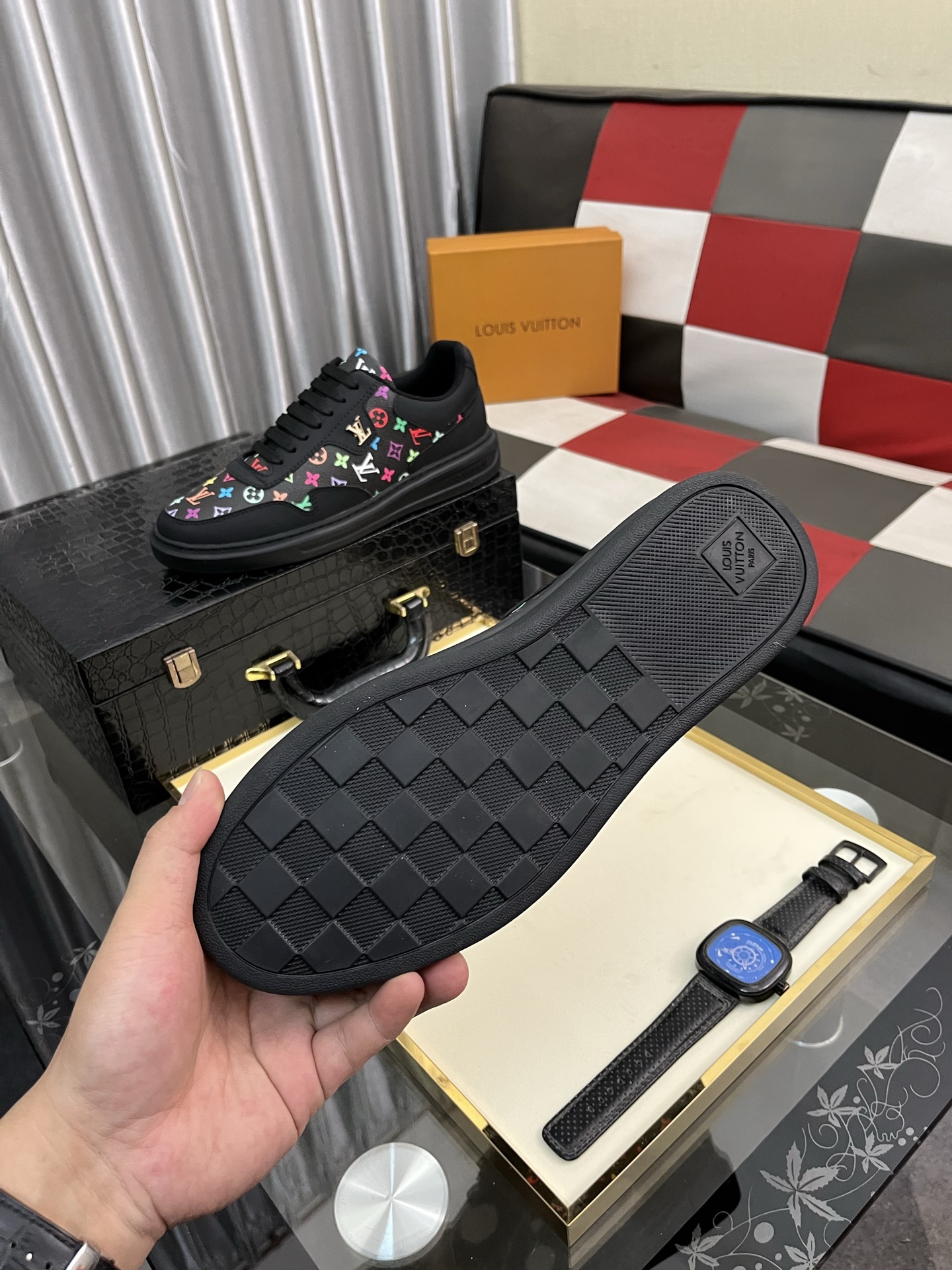 这款鞋子是AAAAA 1:1 质量 (非常棒). 使用了和原版一模一样的材料. 商标部分也保持了和路易威登/Louis Vuitton一样. 图片拍摄是实物鞋子拍摄, 您所收到的实物保证和我们图片一模一样.
