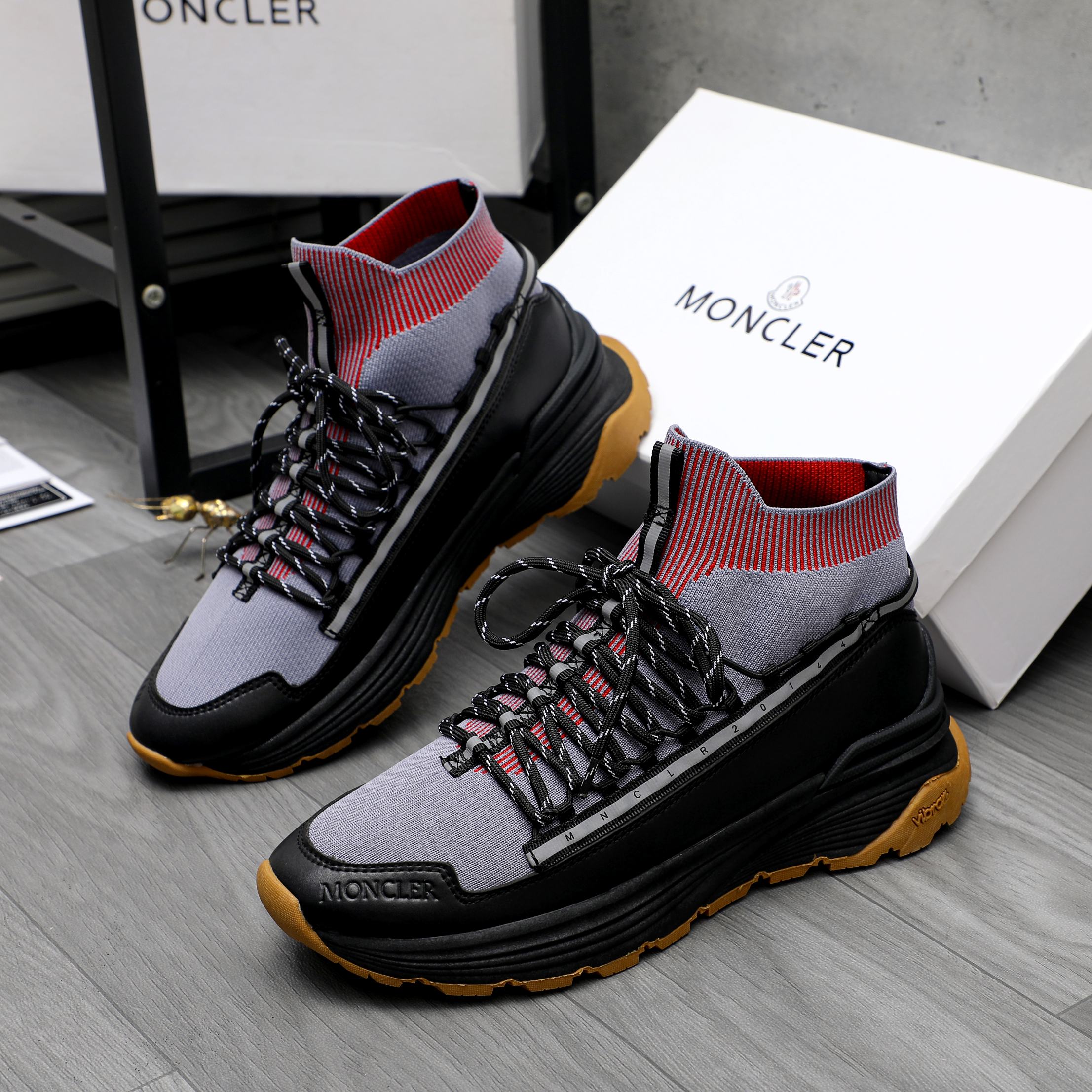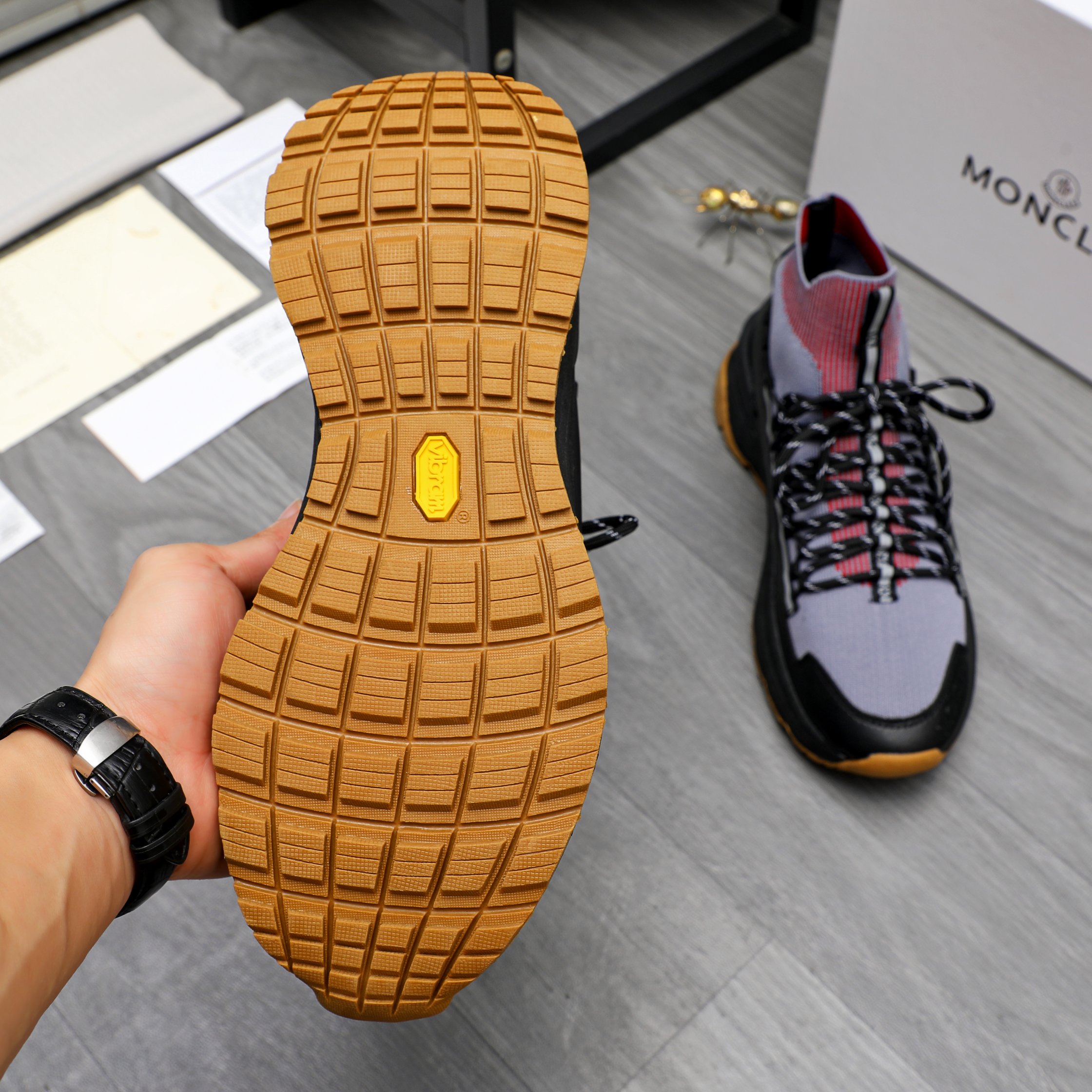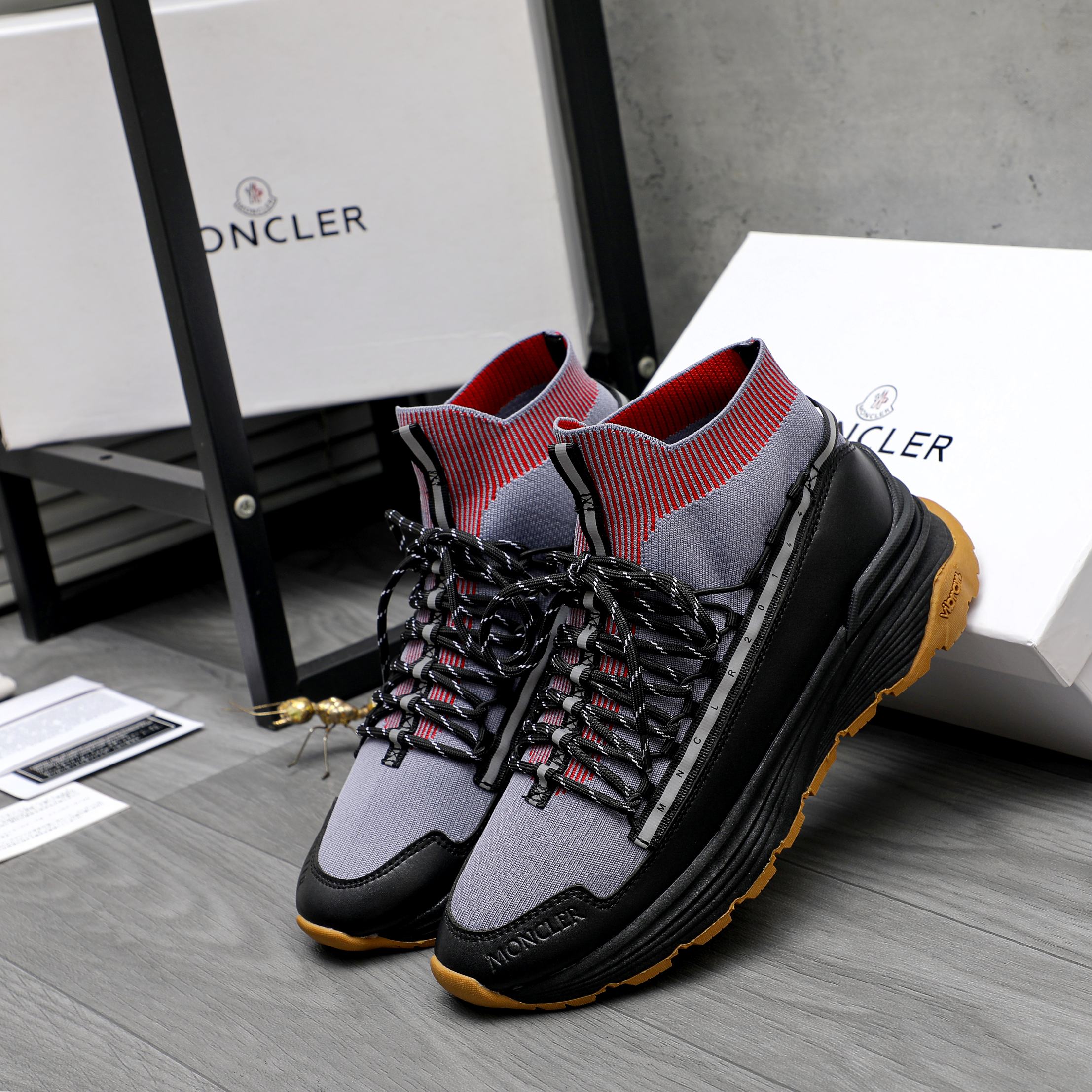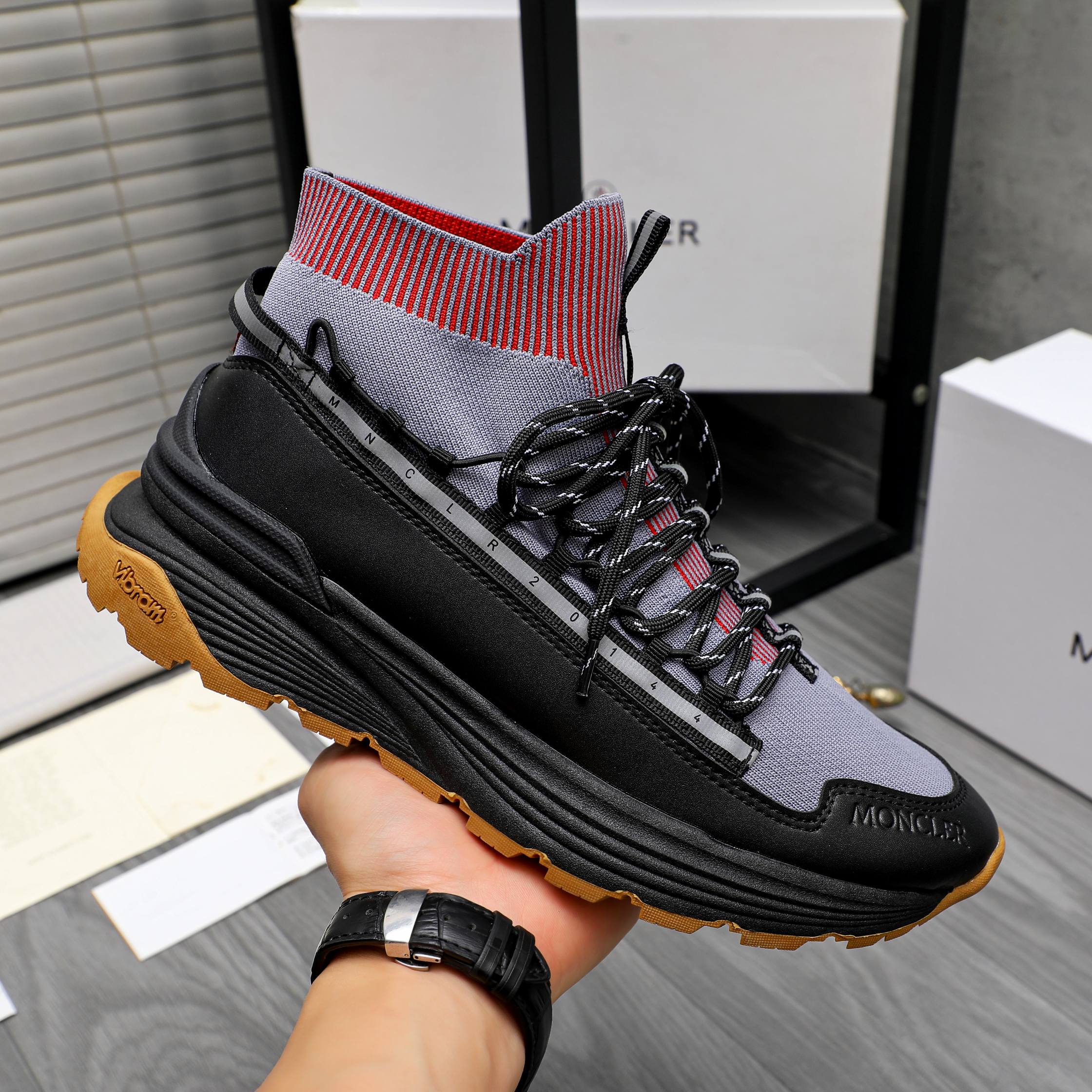 这款鞋子是AAAAA 1:1 质量 (非常棒). 使用了和原版一模一样的材料. 商标部分也保持了和盟可睐/moncler一样. 图片拍摄是实物鞋子拍摄, 您所收到的实物保证和我们图片一模一样.