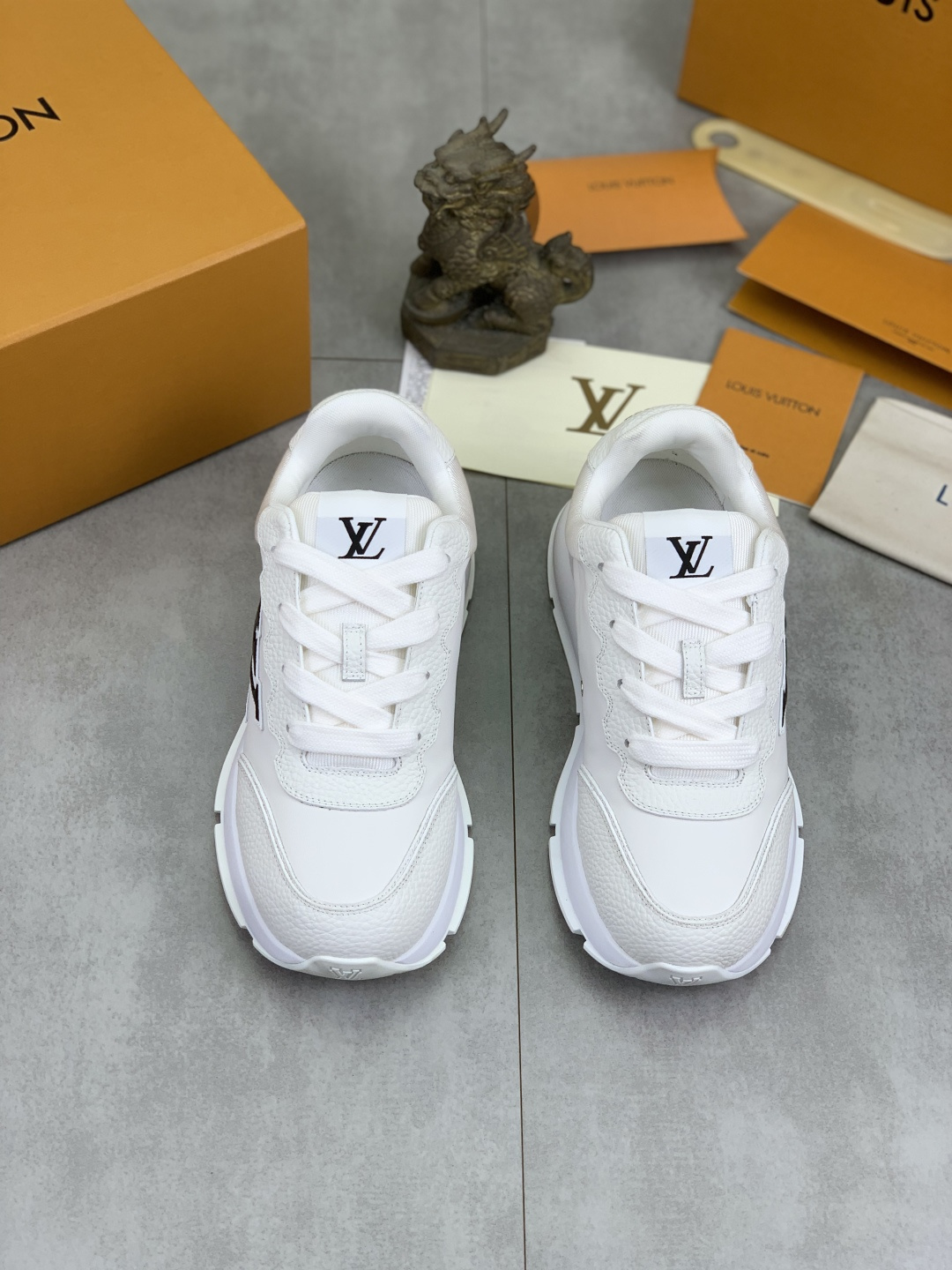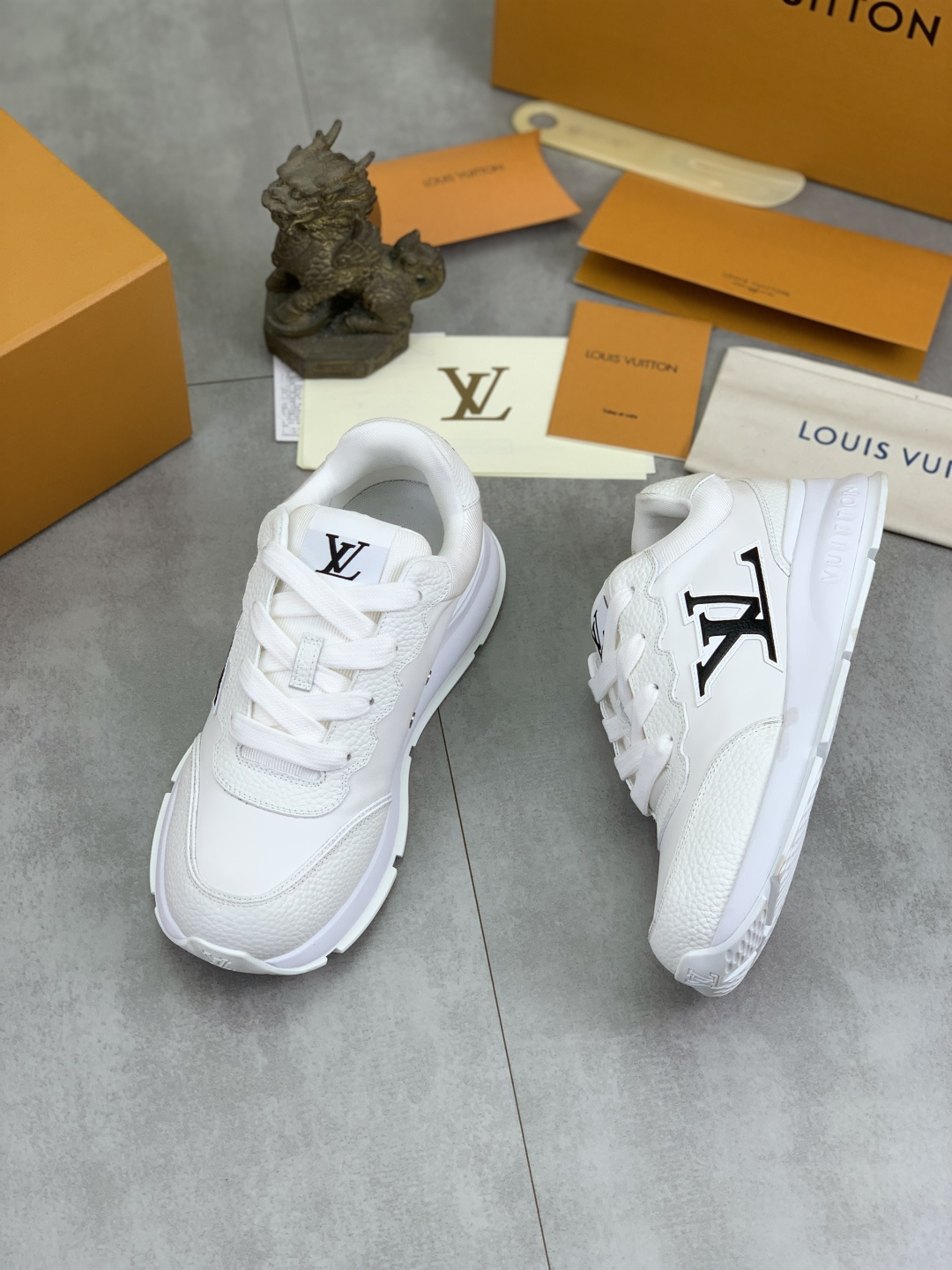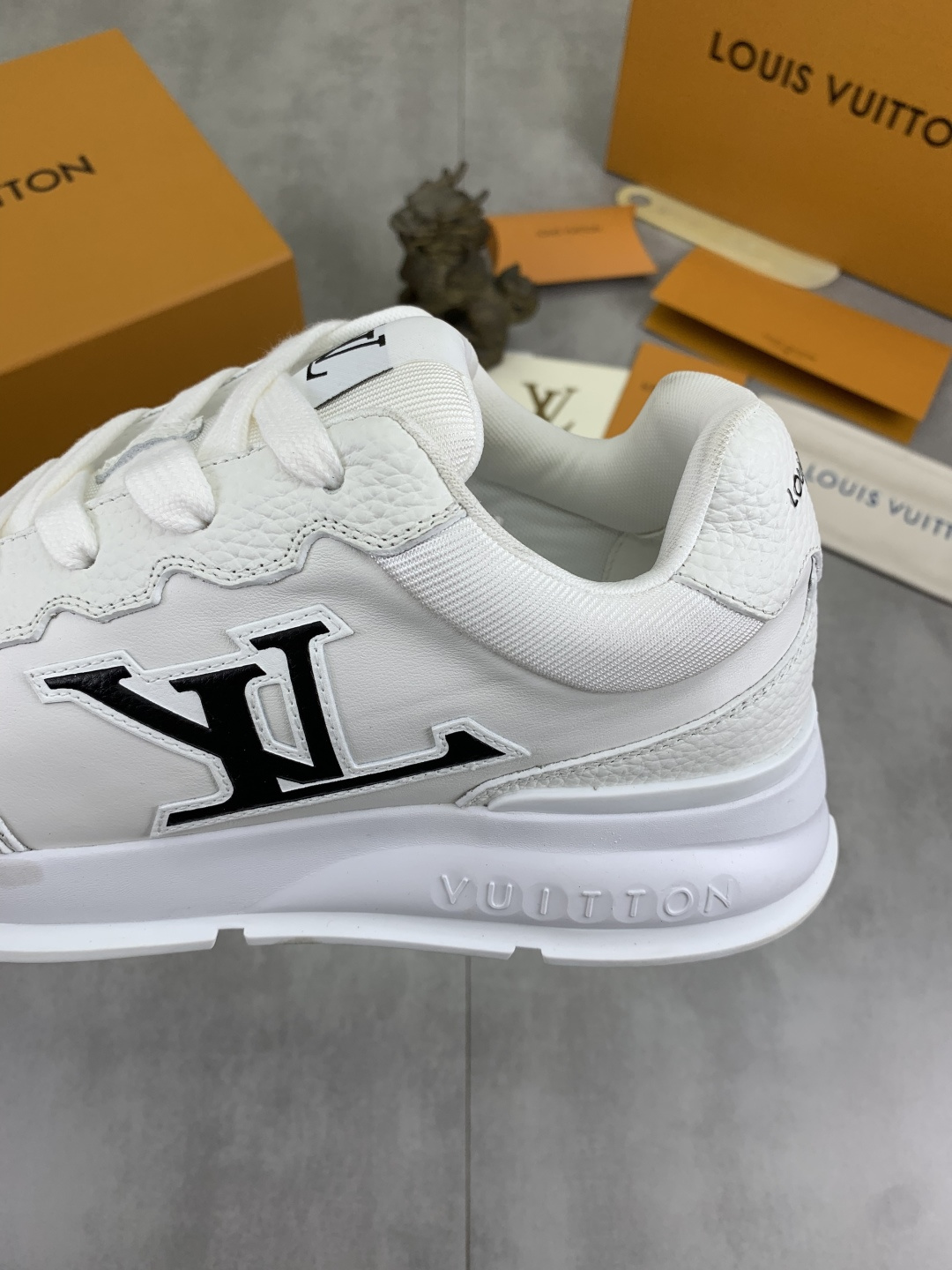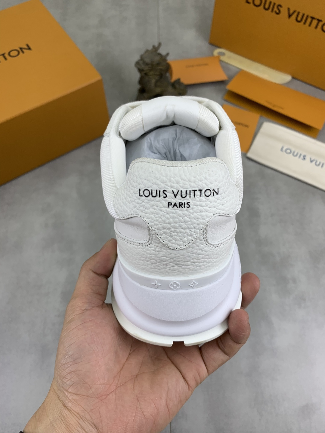 这款鞋子是AAAAA 1:1 质量 (非常棒). 使用了和原版一模一样的材料. 商标部分也保持了和路易威登/Louis Vuitton一样. 图片拍摄是实物鞋子拍摄, 您所收到的实物保证和我们图片一模一样.