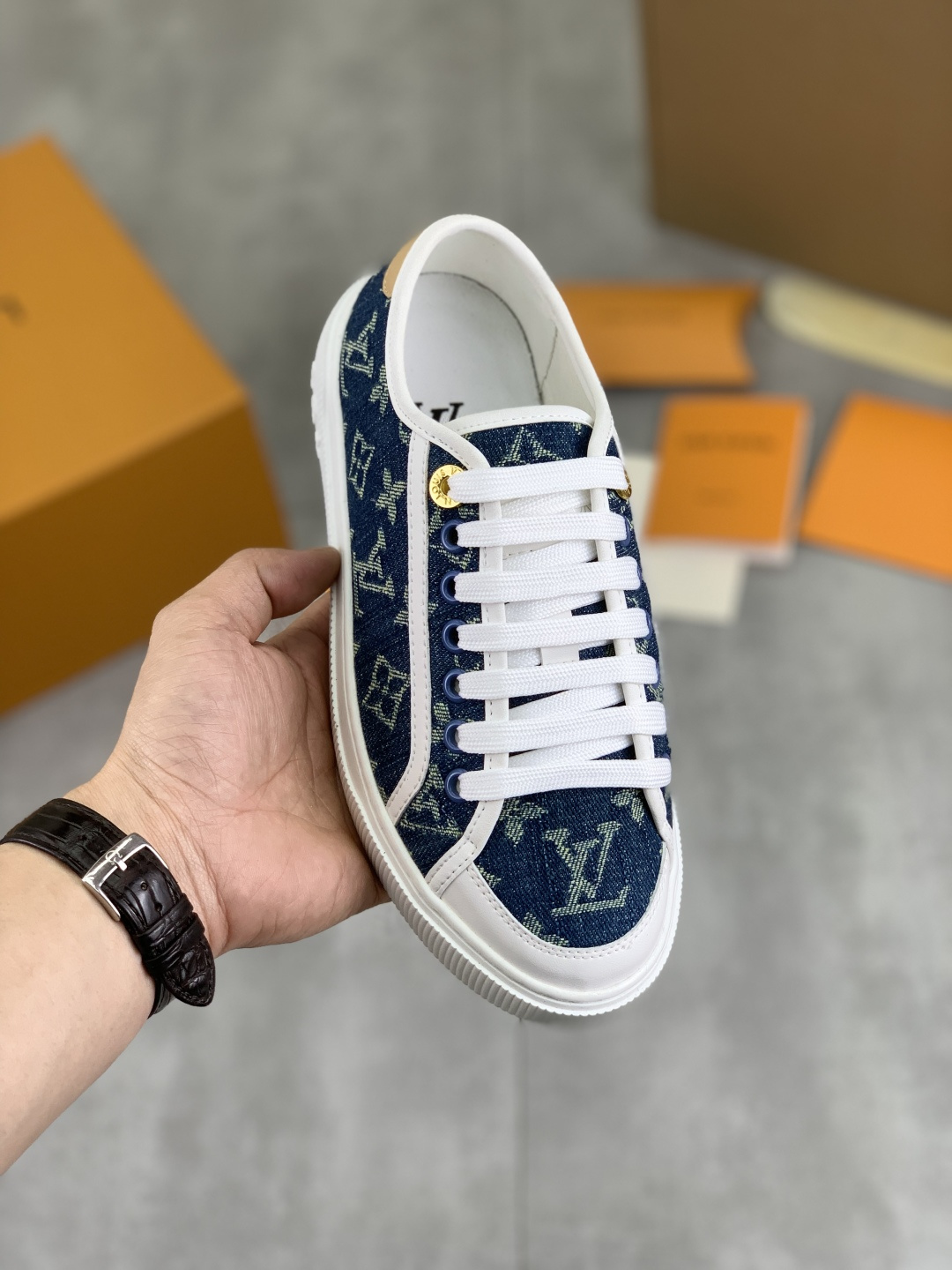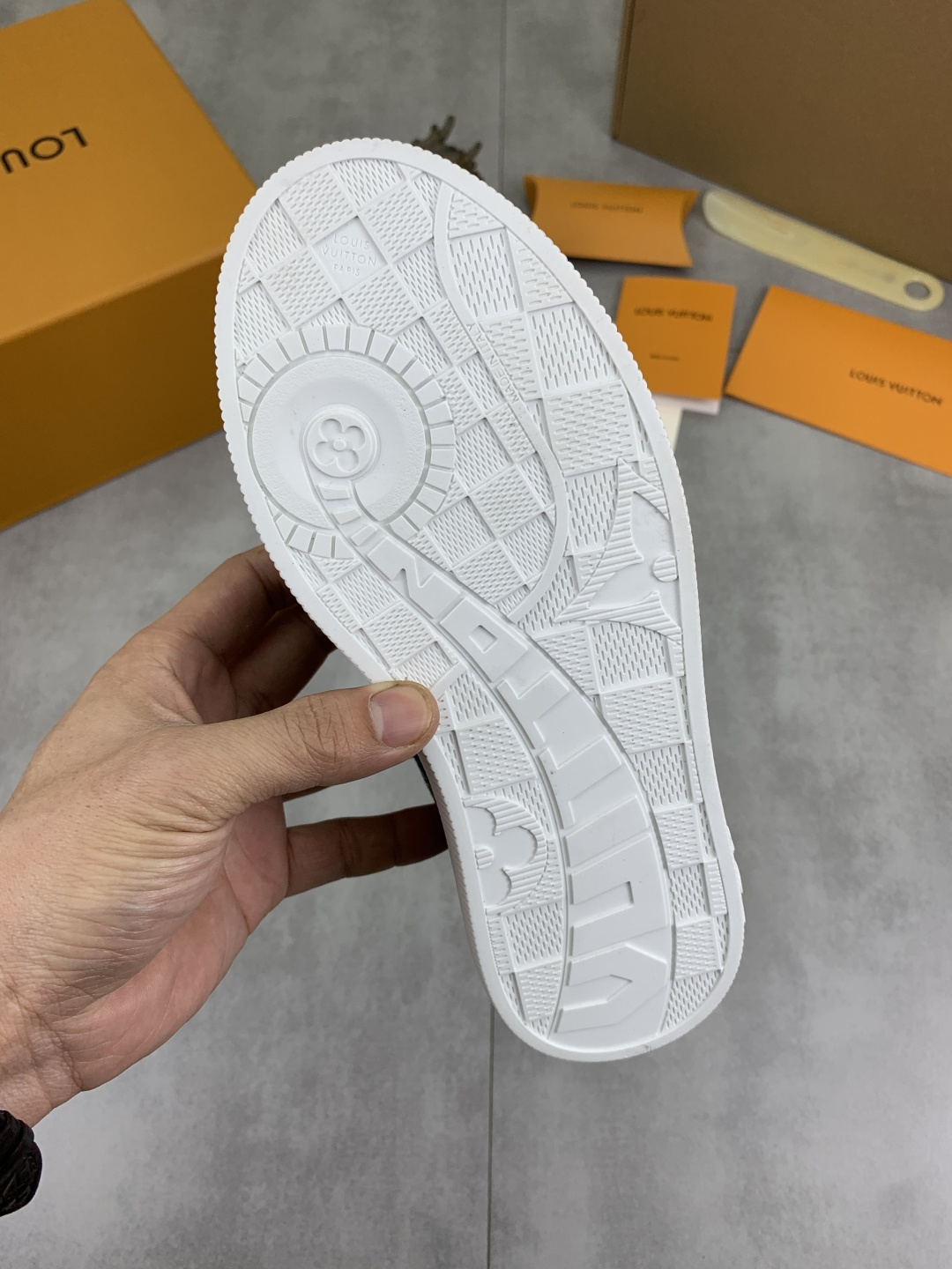 这款鞋子是AAAAA 1:1 质量 (非常棒). 使用了和原版一模一样的材料. 商标部分也保持了和路易威登/Louis Vuitton一样. 图片拍摄是实物鞋子拍摄, 您所收到的实物保证和我们图片一模一样.