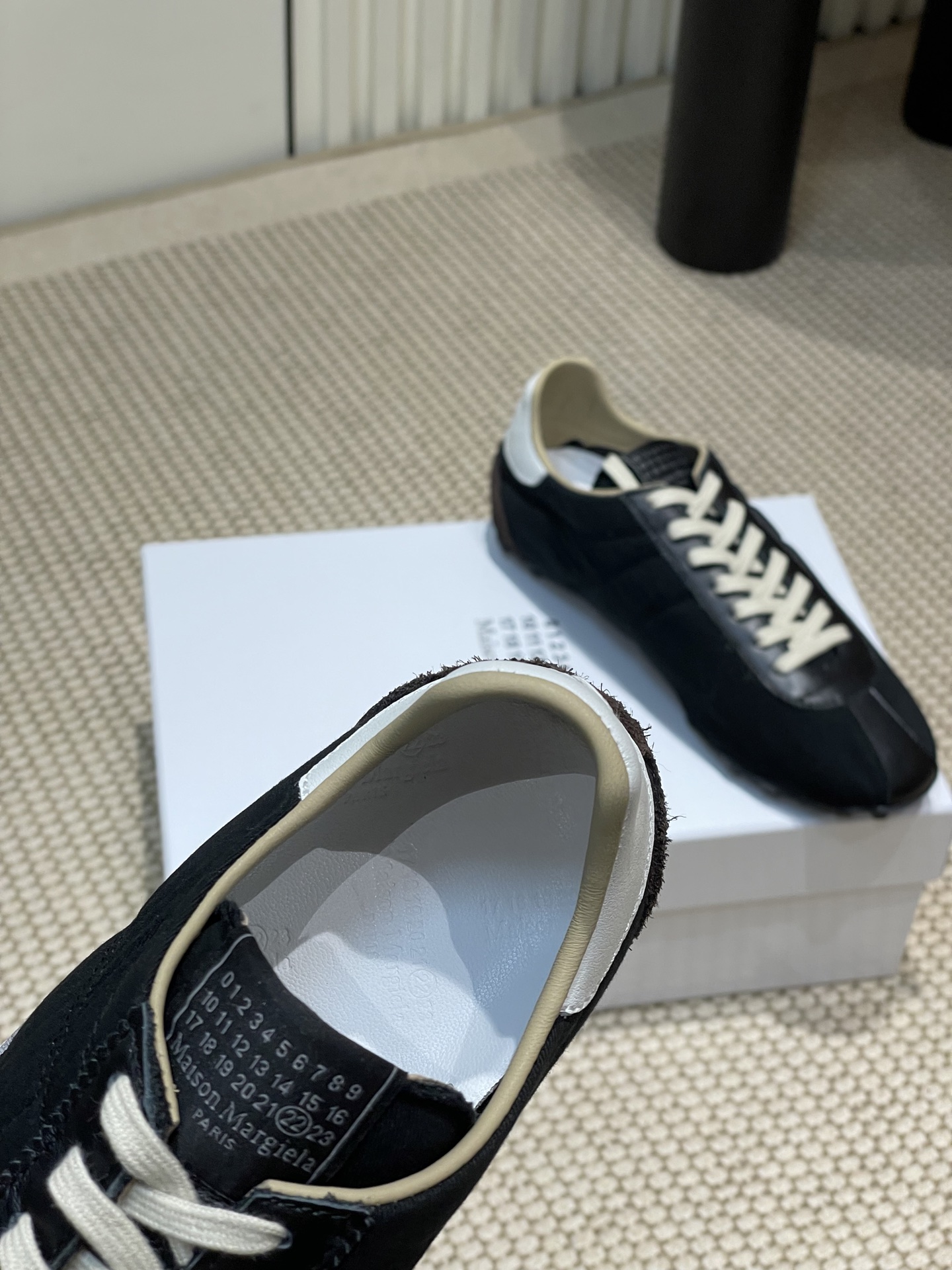 这款鞋子是AAAAA 1:1 质量 (非常棒). 使用了和原版一模一样的材料. 商标部分也保持了和Maison Margiela一样. 图片拍摄是实物鞋子拍摄, 您所收到的实物保证和我们图片一模一样.