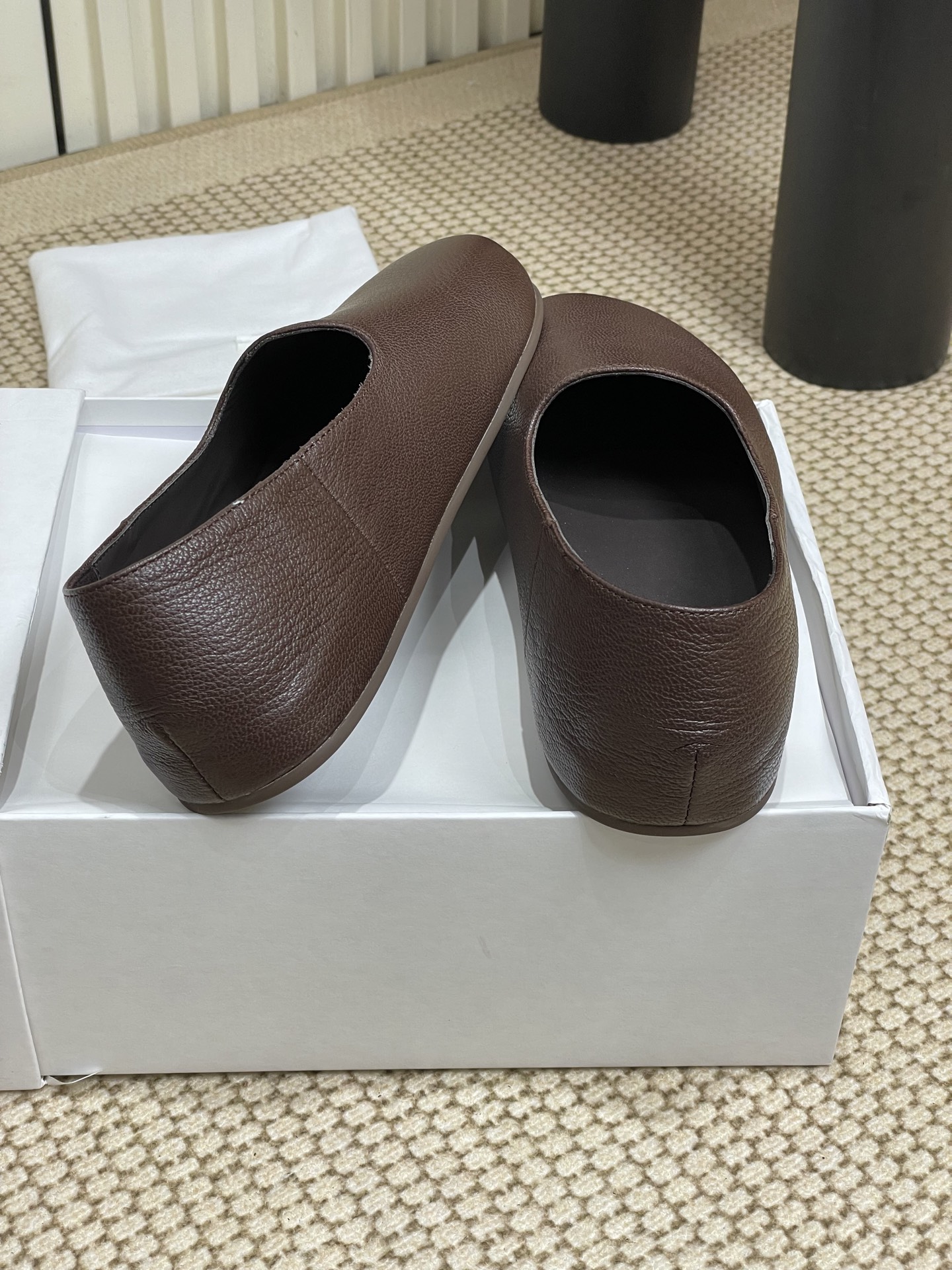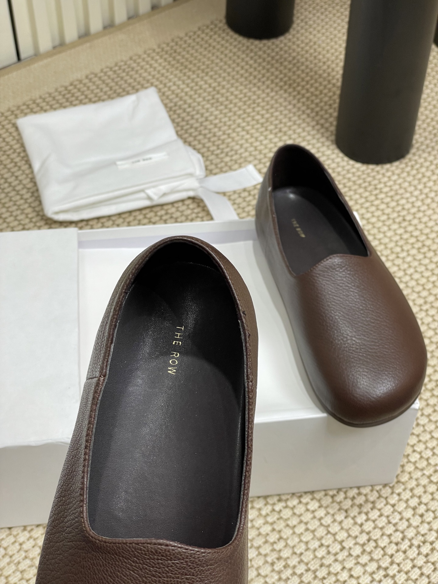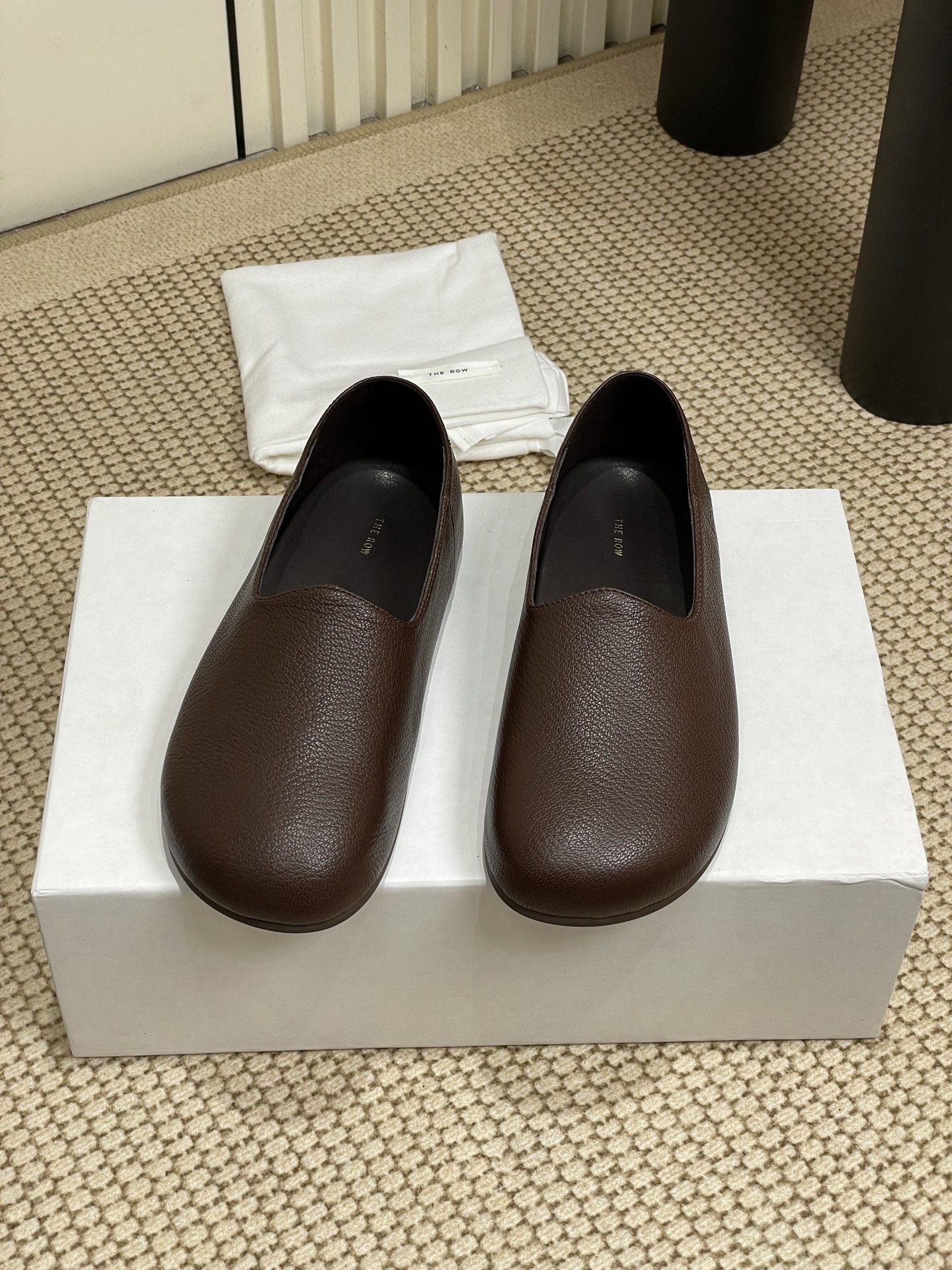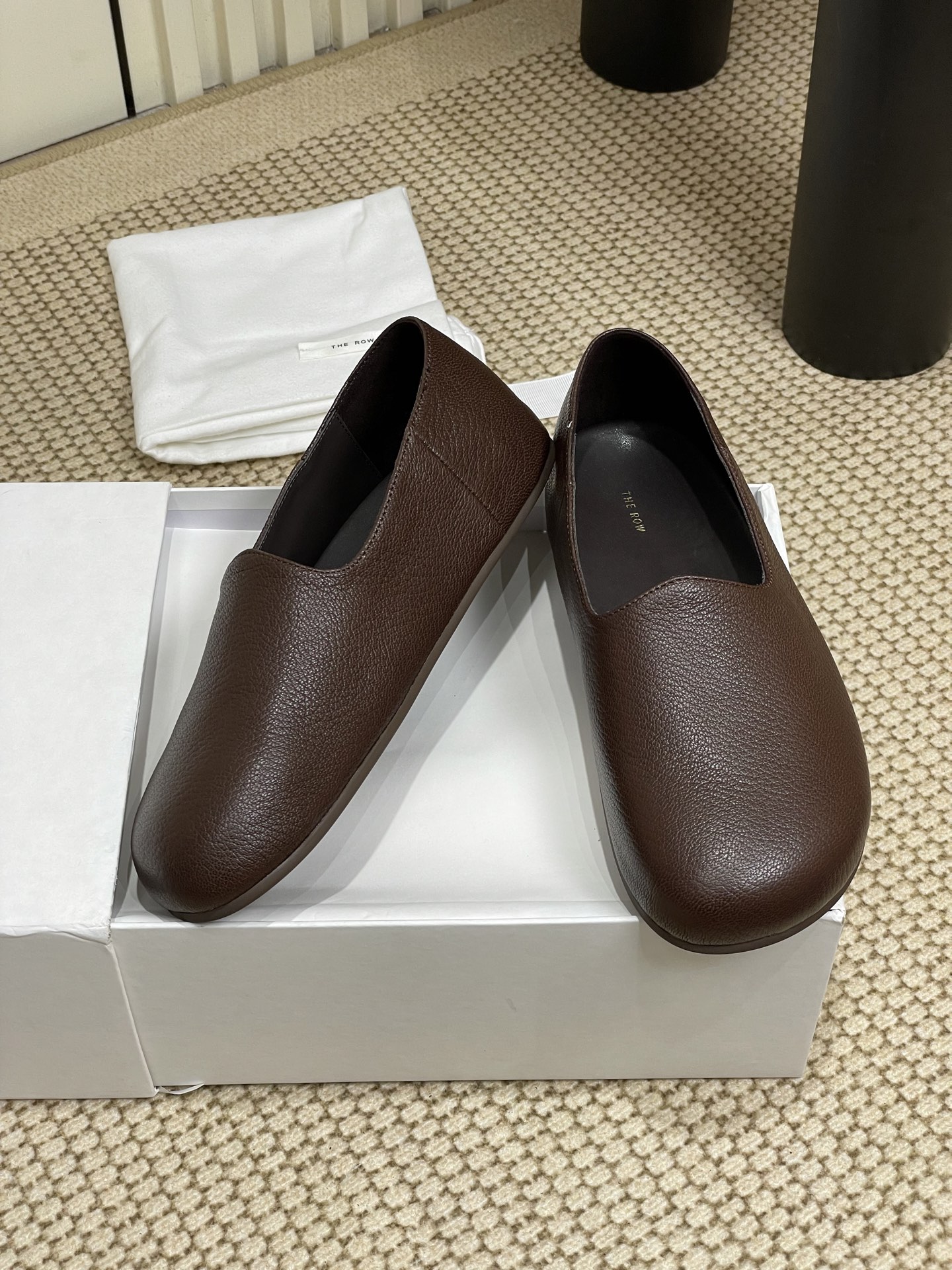 这款鞋子是AAAAA 1:1 质量 (非常棒). 使用了和原版一模一样的材料. 商标部分也保持了和The Row一样. 图片拍摄是实物鞋子拍摄, 您所收到的实物保证和我们图片一模一样.