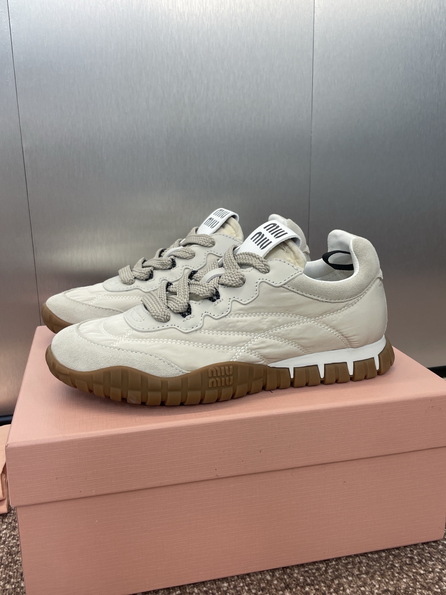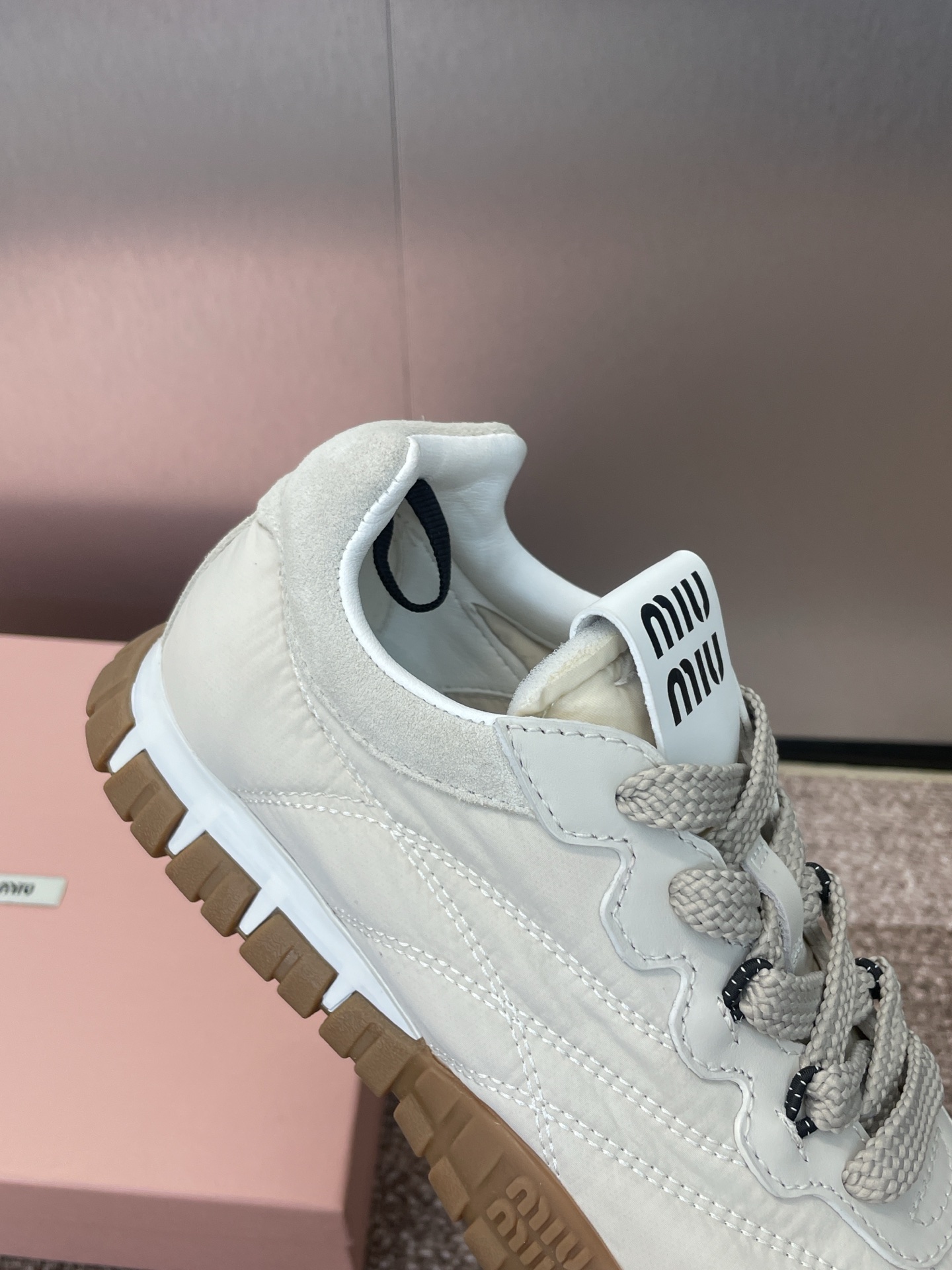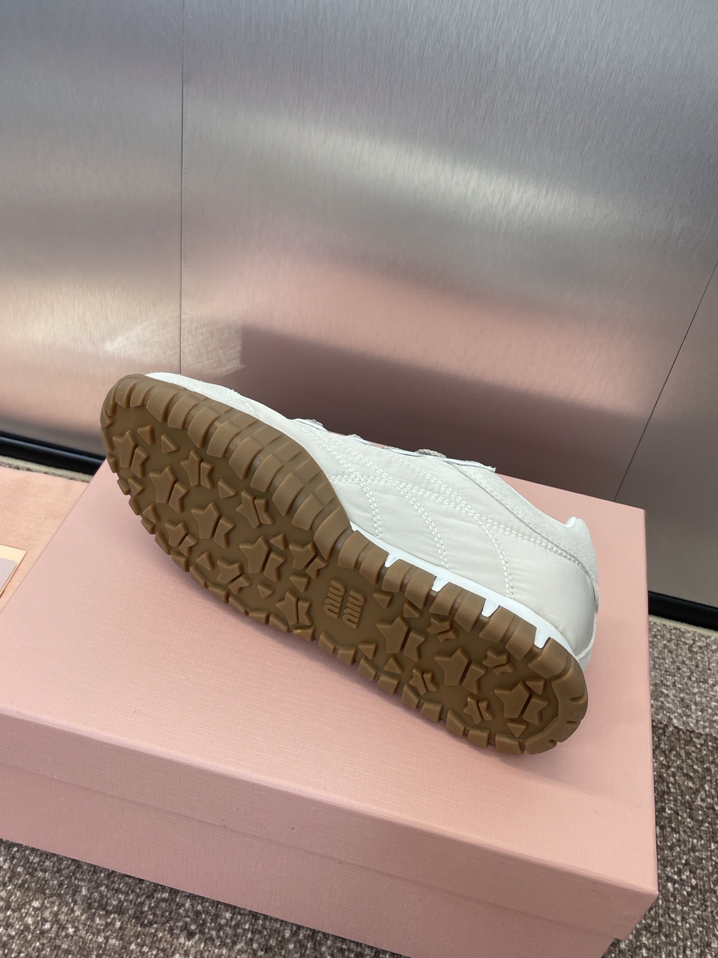这款鞋子是AAAAA 1:1 质量 (非常棒). 使用了和原版一模一样的材料. 商标部分也保持了和缪缪/Miu Miu一样. 图片拍摄是实物鞋子拍摄, 您所收到的实物保证和我们图片一模一样.