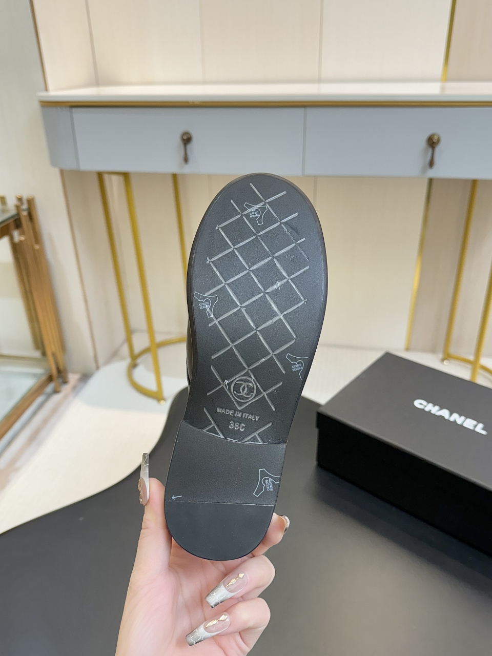 这款鞋子是AAAAA 1:1 质量 (非常棒). 使用了和原版一模一样的材料. 商标部分也保持了和香奈儿/Chanel一样. 图片拍摄是实物鞋子拍摄, 您所收到的实物保证和我们图片一模一样.