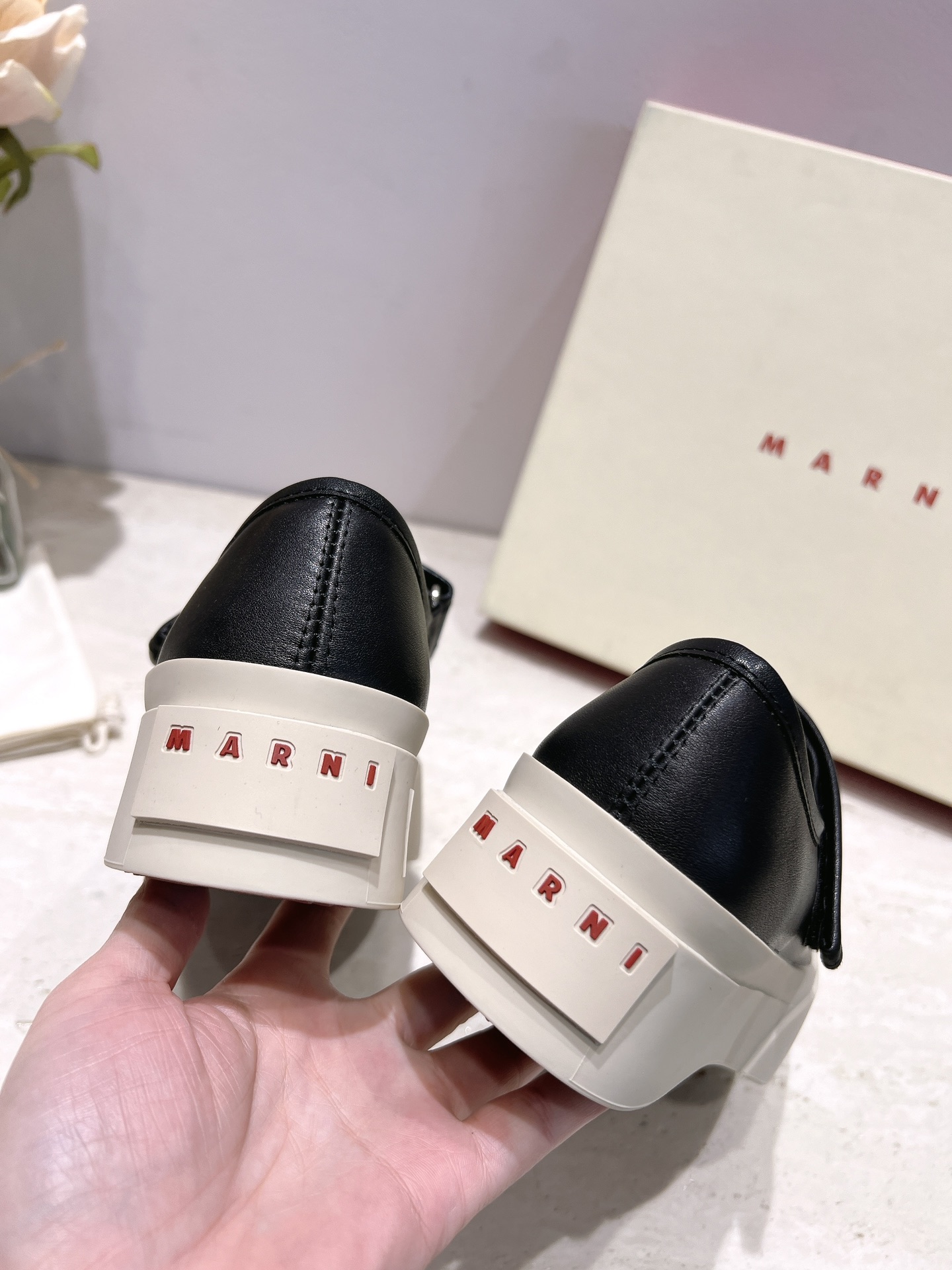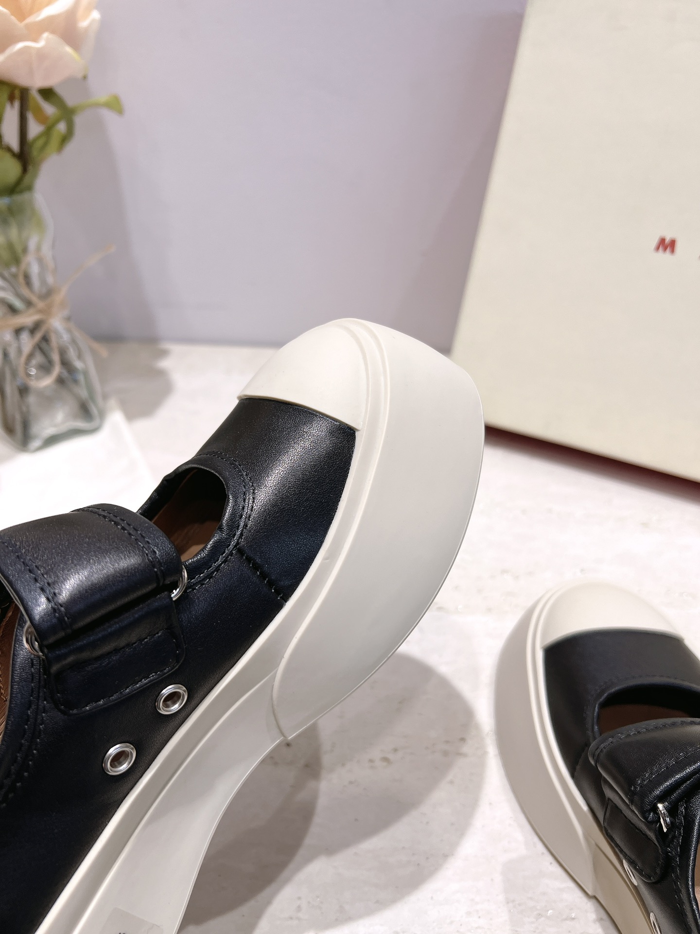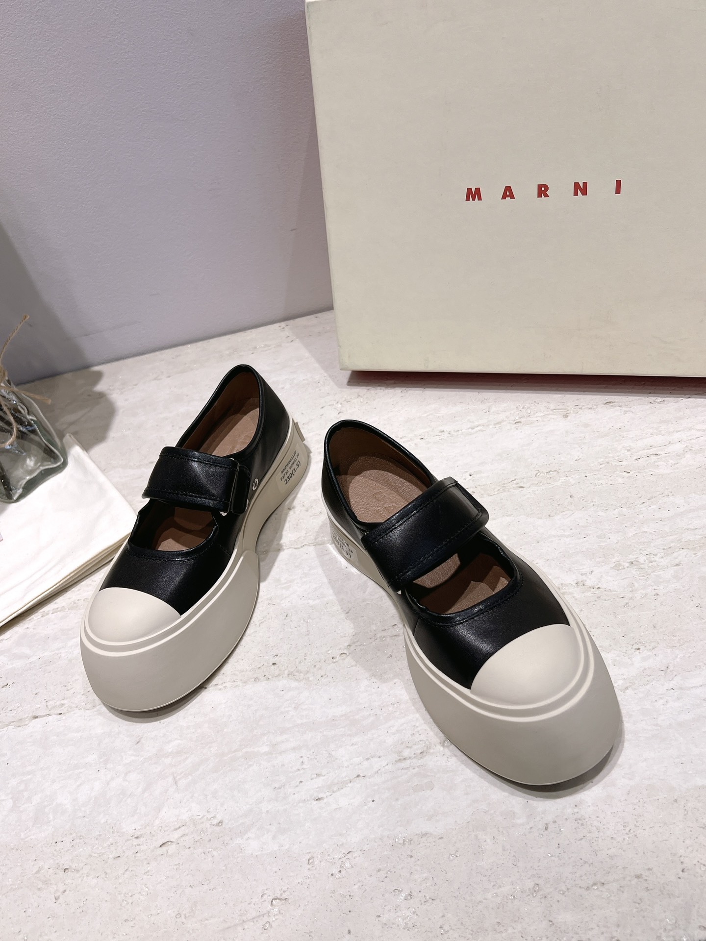 这款鞋子是AAAAA 1:1 质量 (非常棒). 使用了和原版一模一样的材料. 商标部分也保持了和马尔尼/Marni一样. 图片拍摄是实物鞋子拍摄, 您所收到的实物保证和我们图片一模一样.