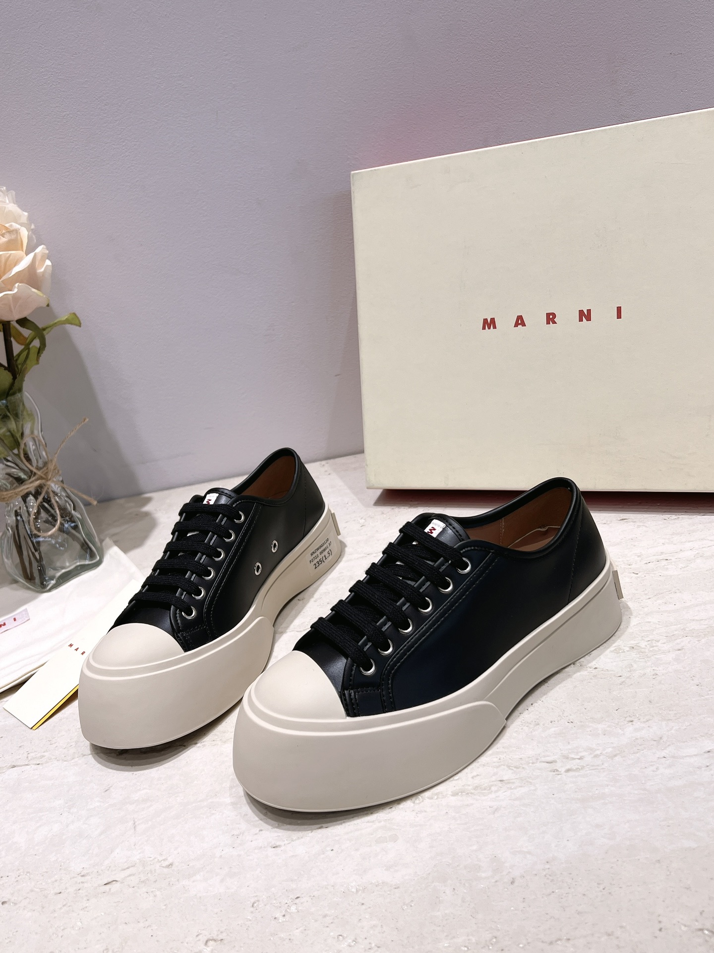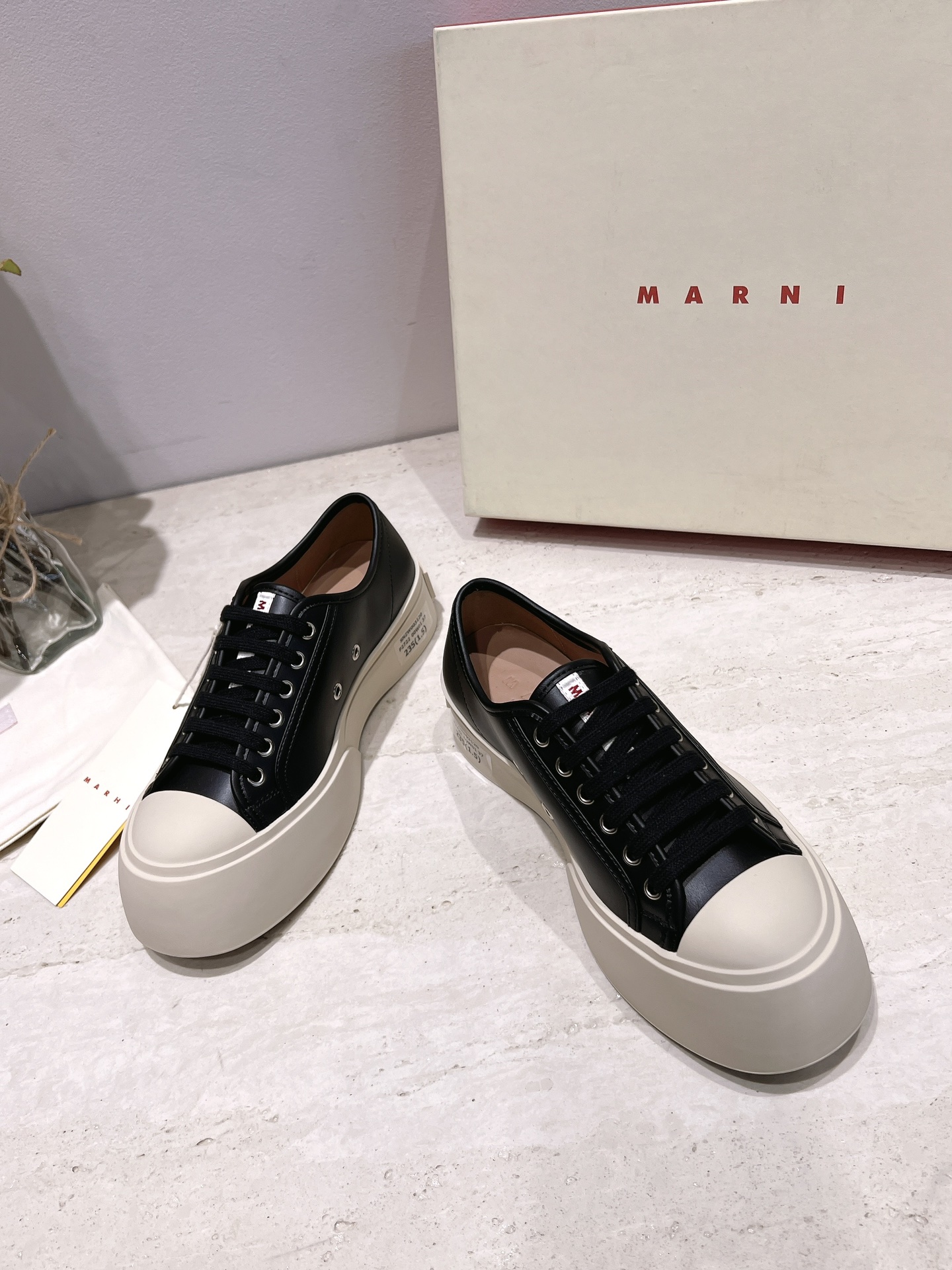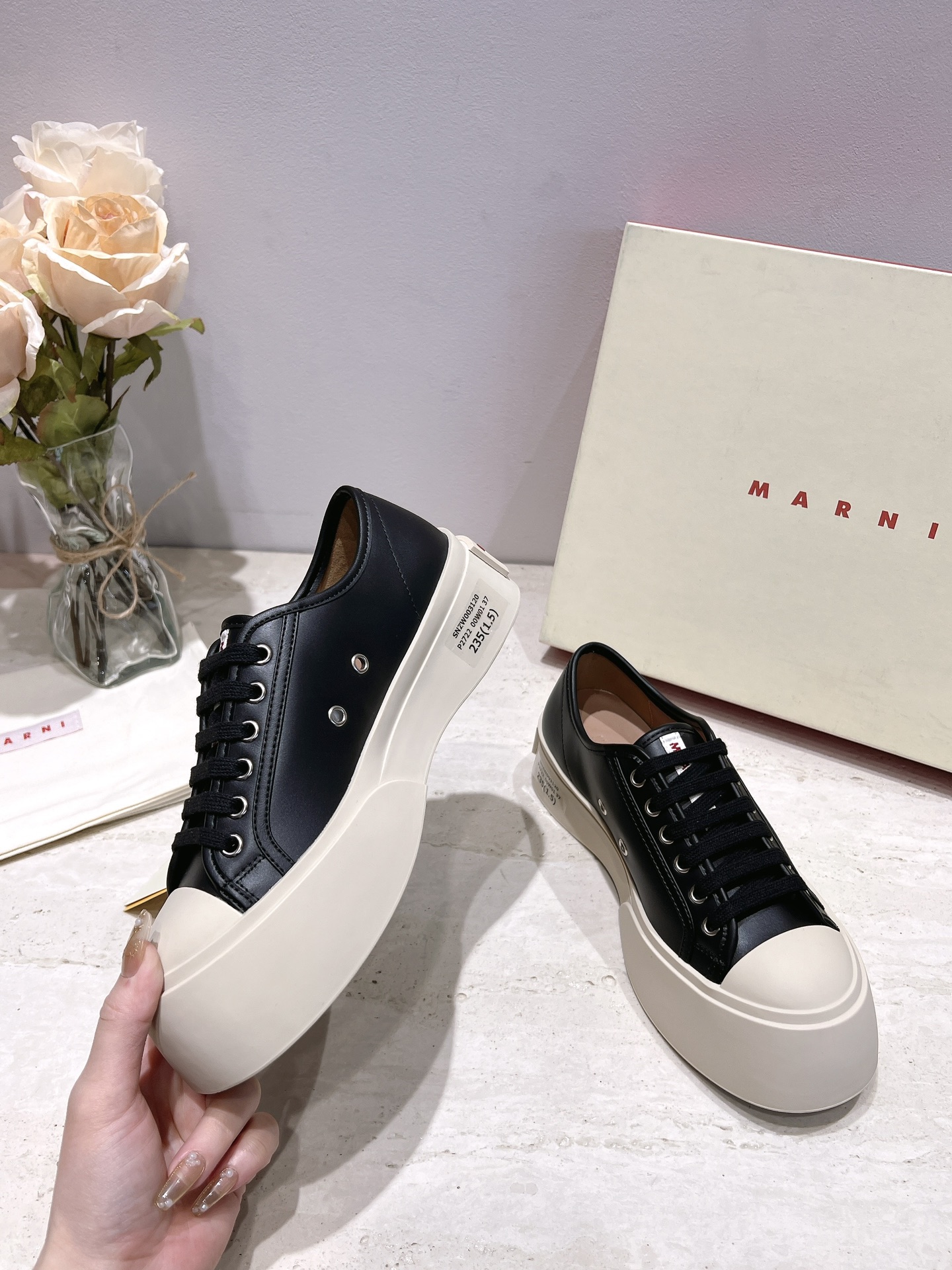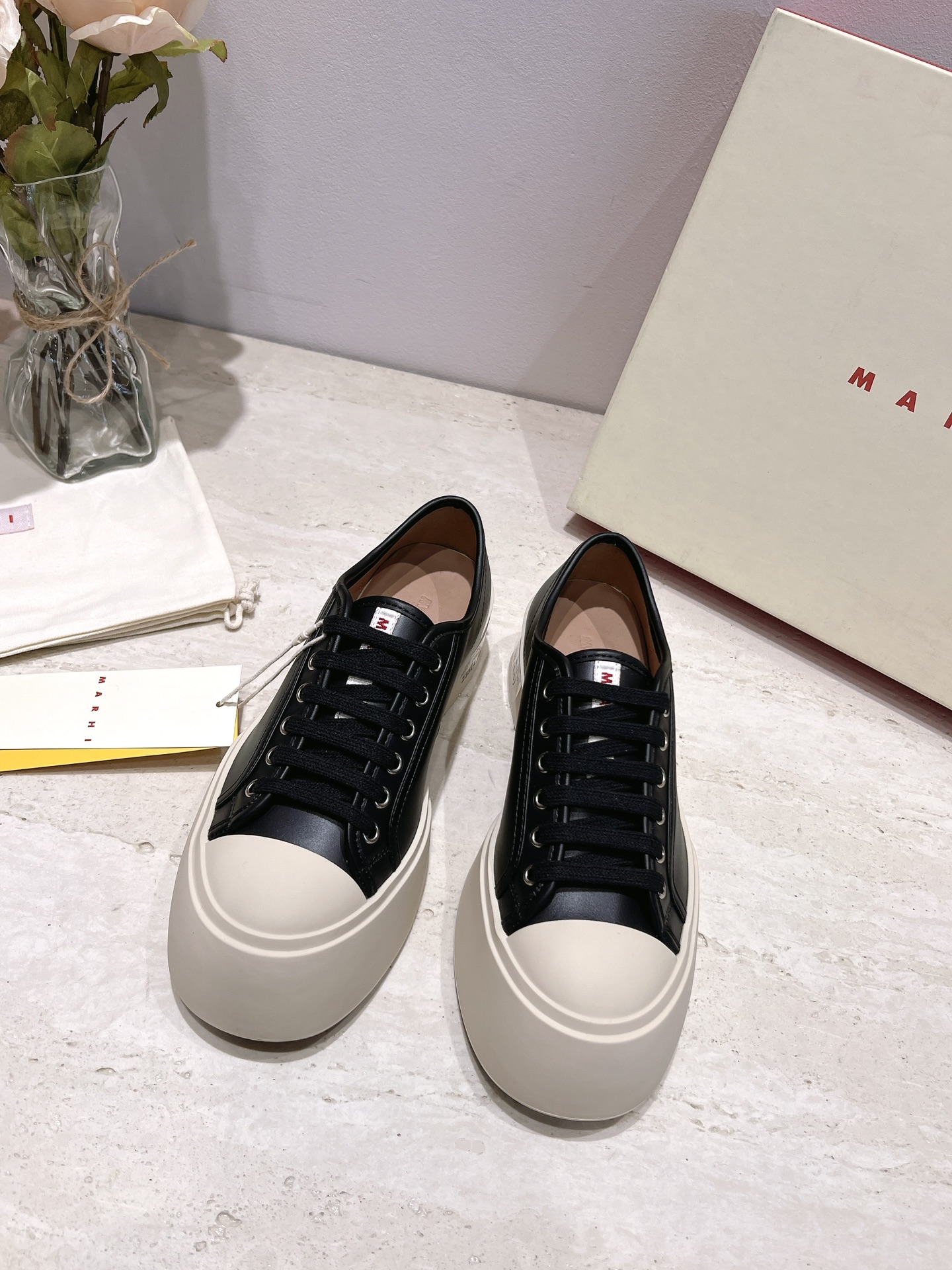 这款鞋子是AAAAA 1:1 质量 (非常棒). 使用了和原版一模一样的材料. 商标部分也保持了和马尔尼/Marni一样. 图片拍摄是实物鞋子拍摄, 您所收到的实物保证和我们图片一模一样.