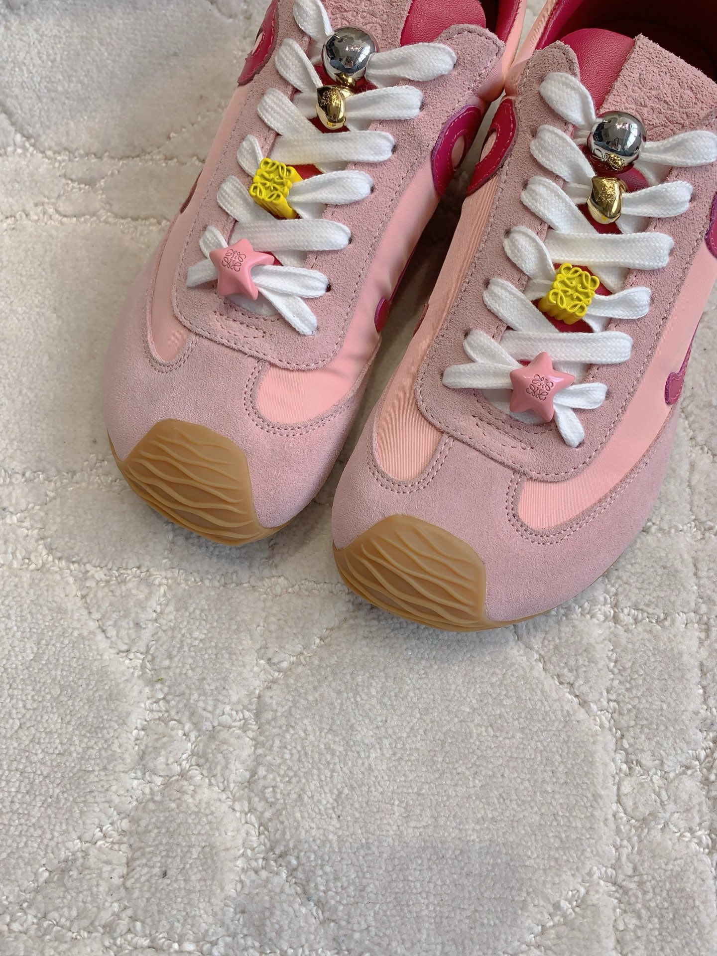 这款鞋子是AAAAA 1:1 质量 (非常棒). 使用了和原版一模一样的材料. 商标部分也保持了和罗意威/Loewe一样. 图片拍摄是实物鞋子拍摄, 您所收到的实物保证和我们图片一模一样.