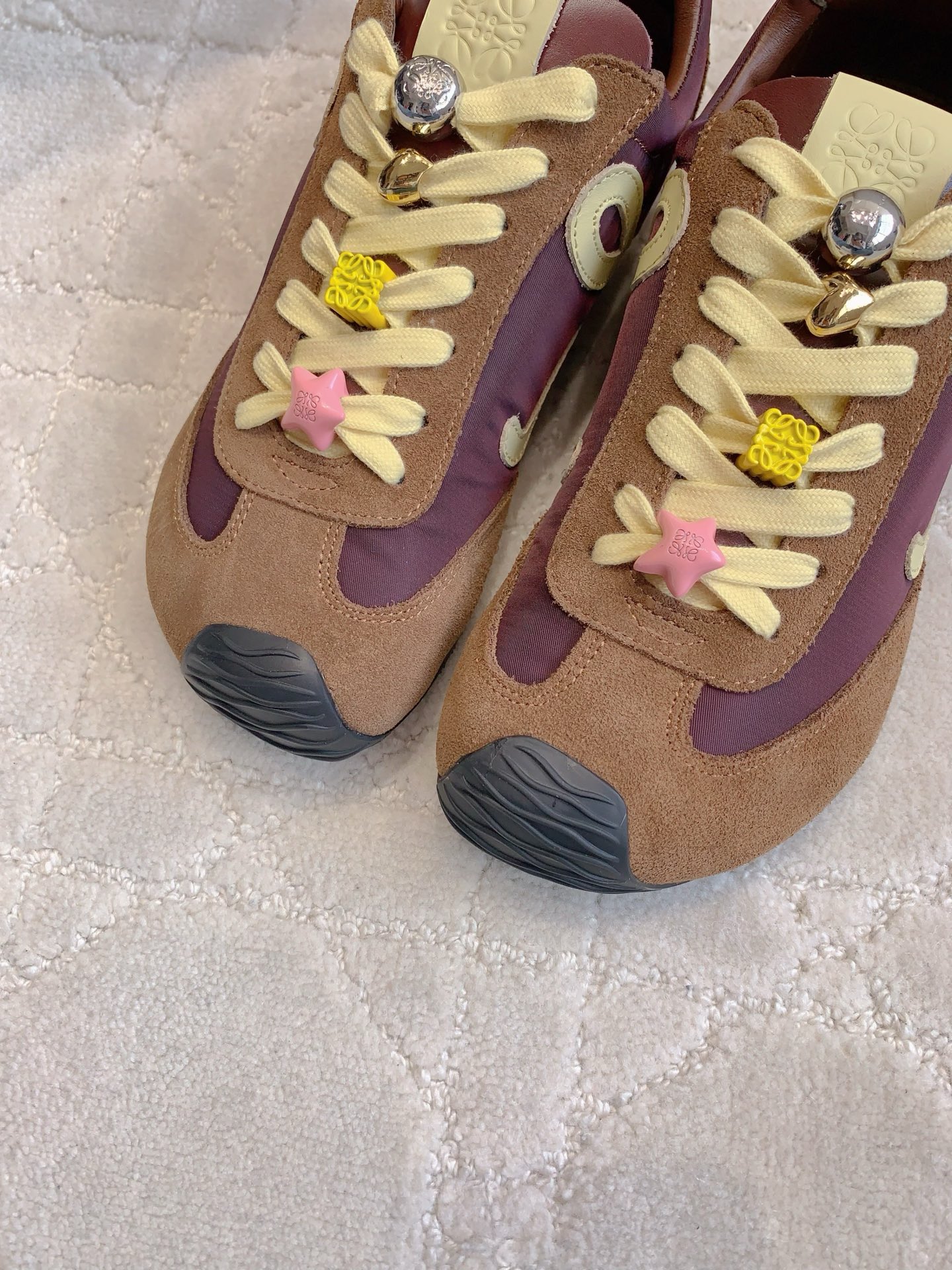 这款鞋子是AAAAA 1:1 质量 (非常棒). 使用了和原版一模一样的材料. 商标部分也保持了和罗意威/Loewe一样. 图片拍摄是实物鞋子拍摄, 您所收到的实物保证和我们图片一模一样.