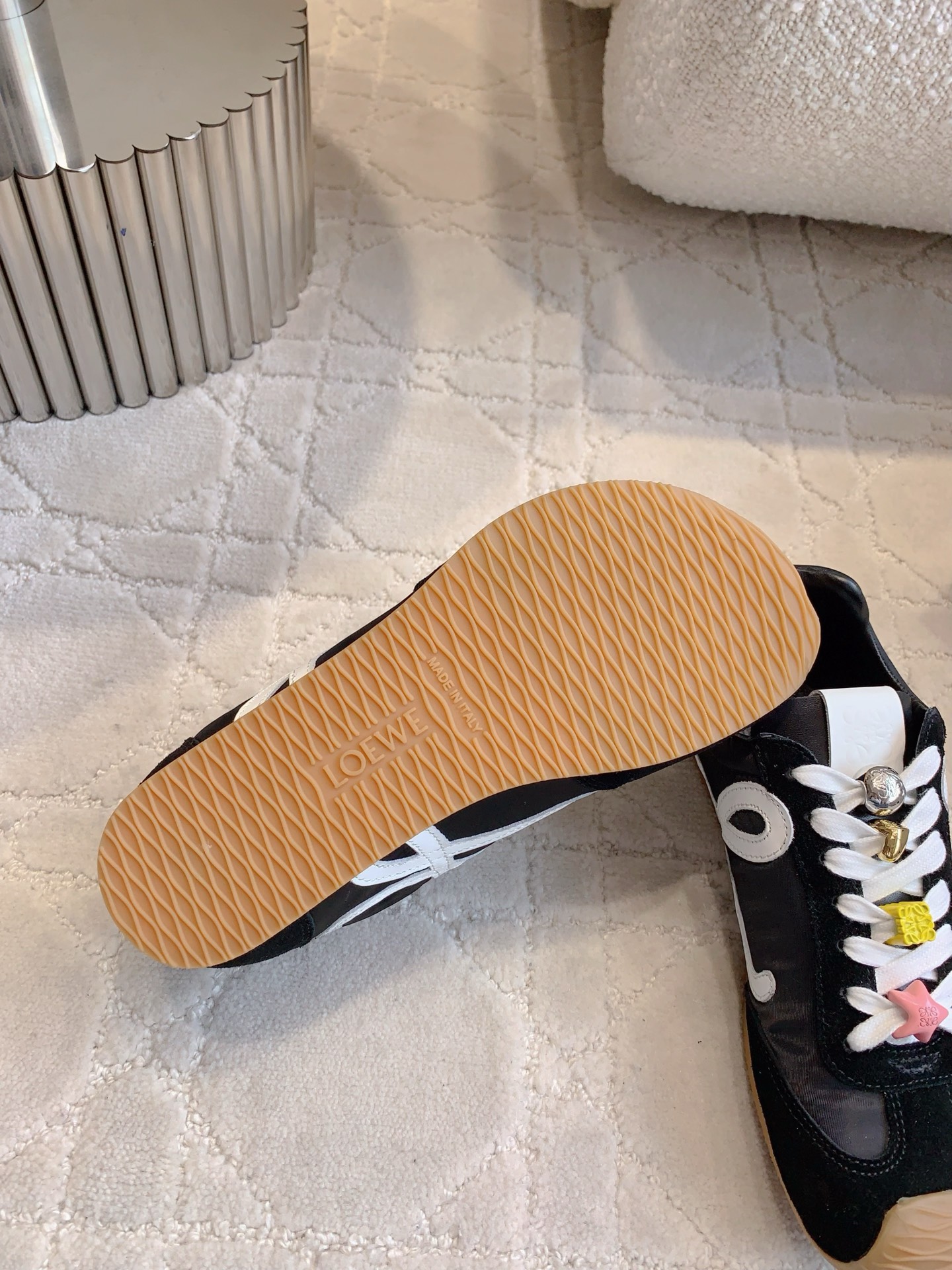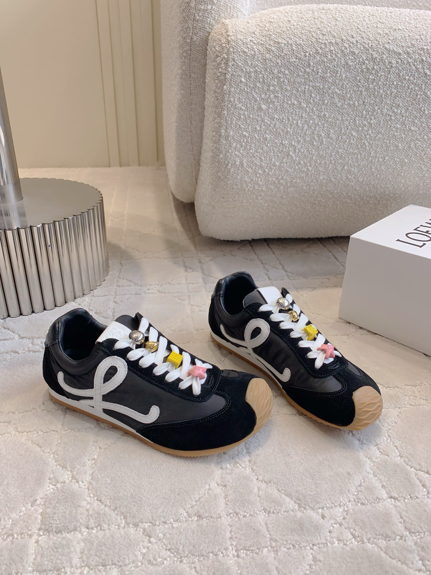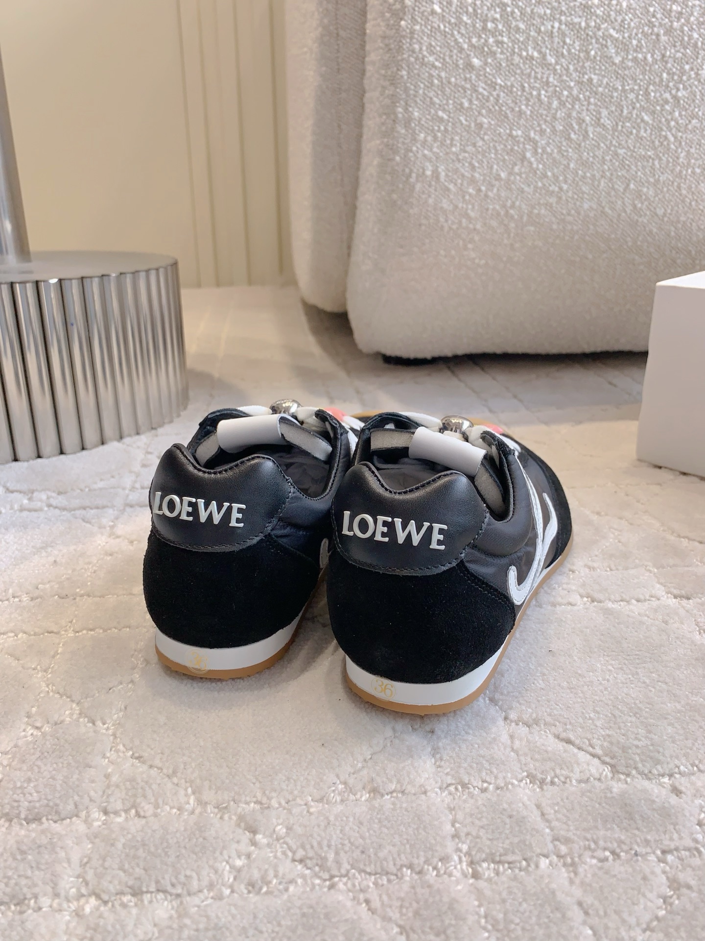 这款鞋子是AAAAA 1:1 质量 (非常棒). 使用了和原版一模一样的材料. 商标部分也保持了和罗意威/Loewe一样. 图片拍摄是实物鞋子拍摄, 您所收到的实物保证和我们图片一模一样.