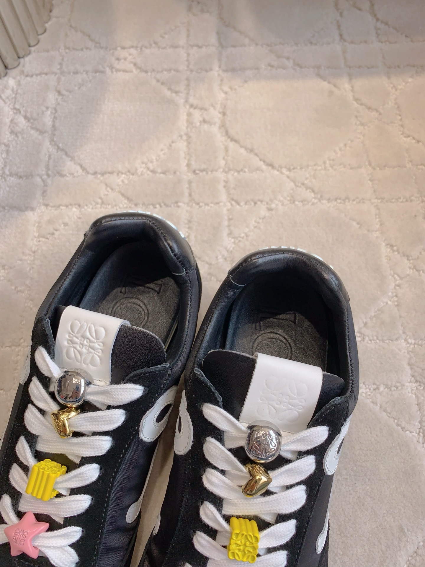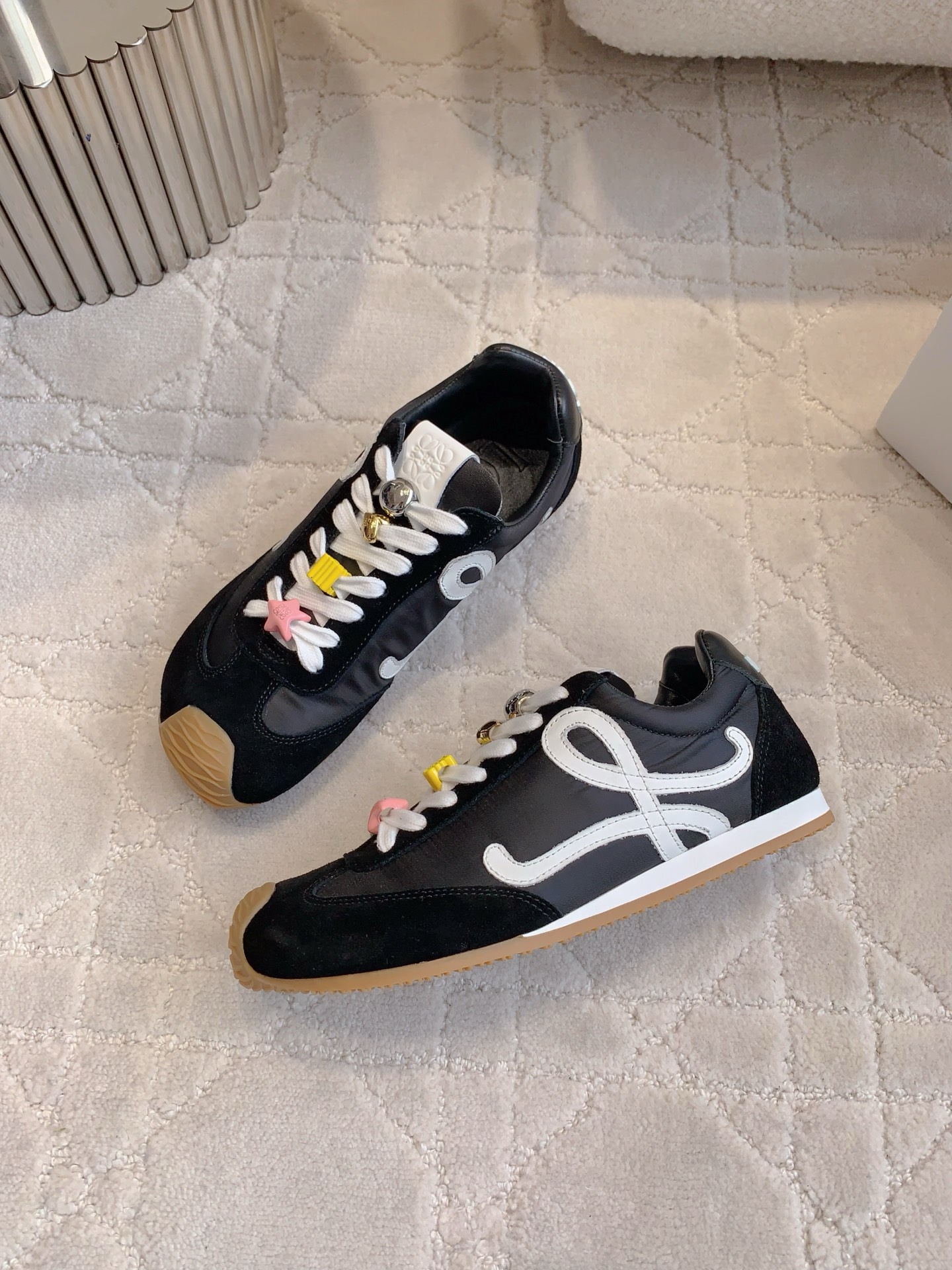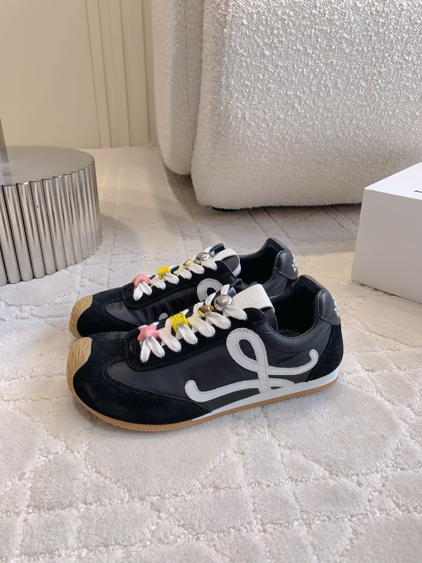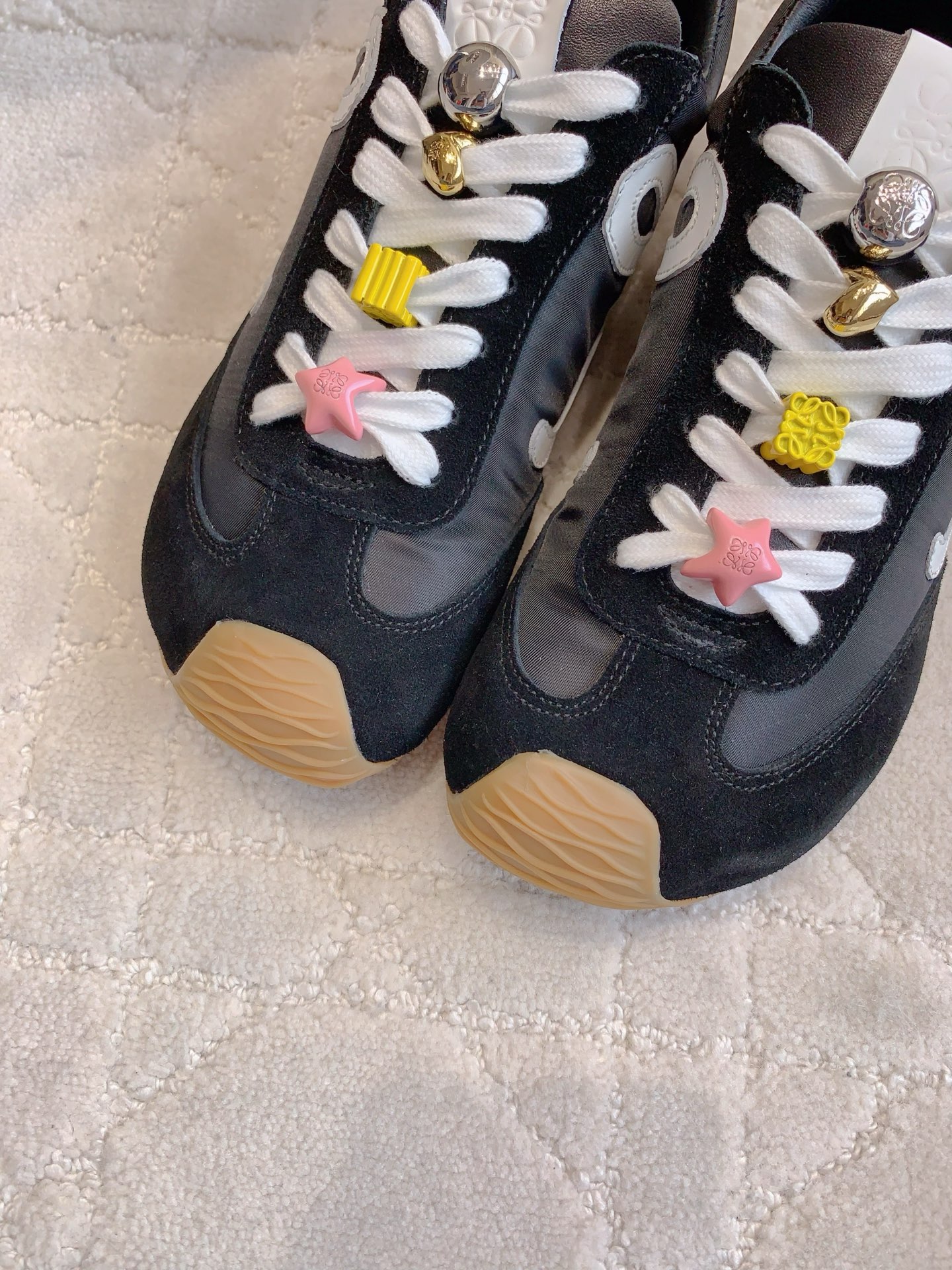这款鞋子是AAAAA 1:1 质量 (非常棒). 使用了和原版一模一样的材料. 商标部分也保持了和罗意威/Loewe一样. 图片拍摄是实物鞋子拍摄, 您所收到的实物保证和我们图片一模一样.