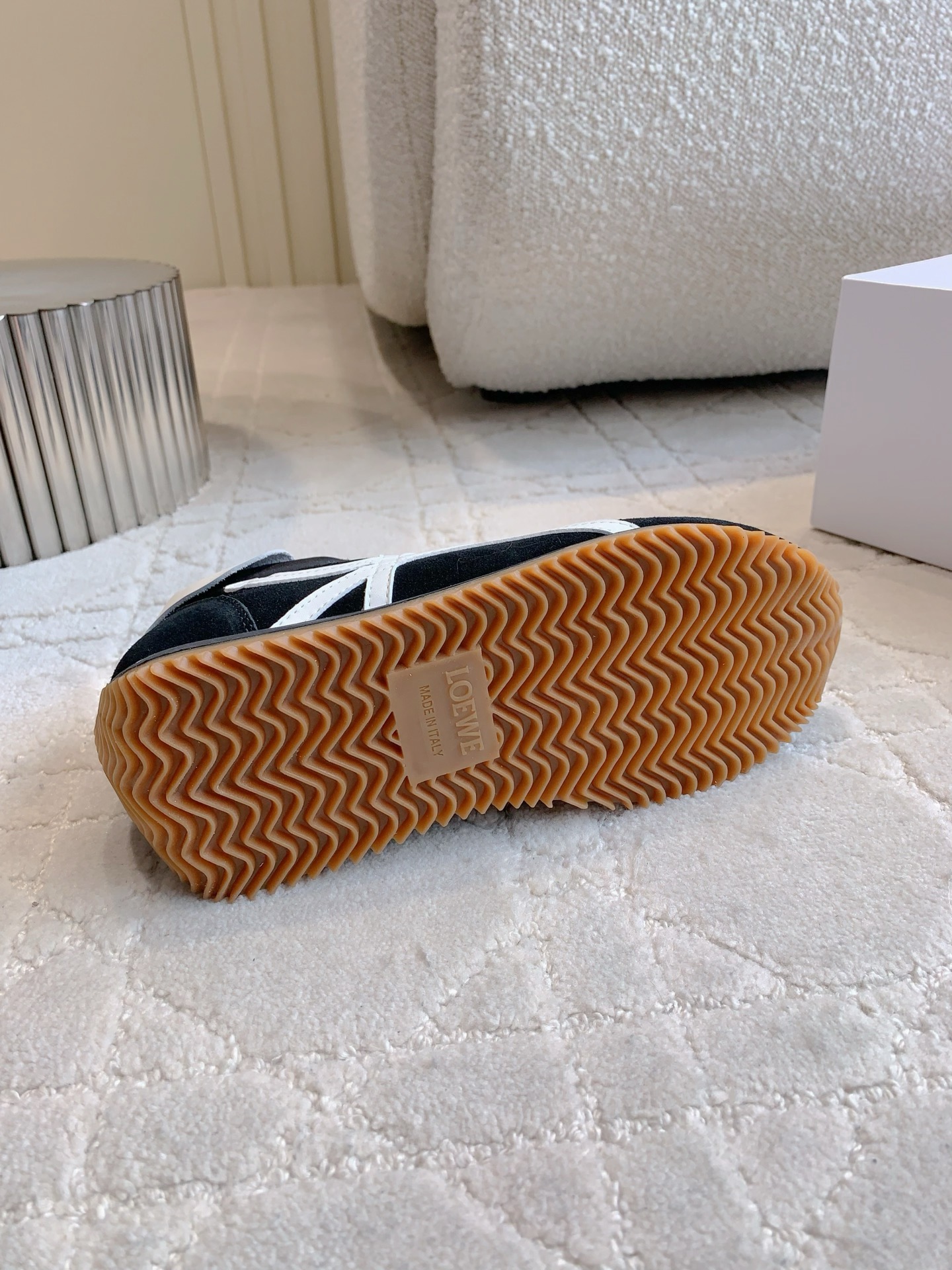 这款鞋子是AAAAA 1:1 质量 (非常棒). 使用了和原版一模一样的材料. 商标部分也保持了和罗意威/Loewe一样. 图片拍摄是实物鞋子拍摄, 您所收到的实物保证和我们图片一模一样.