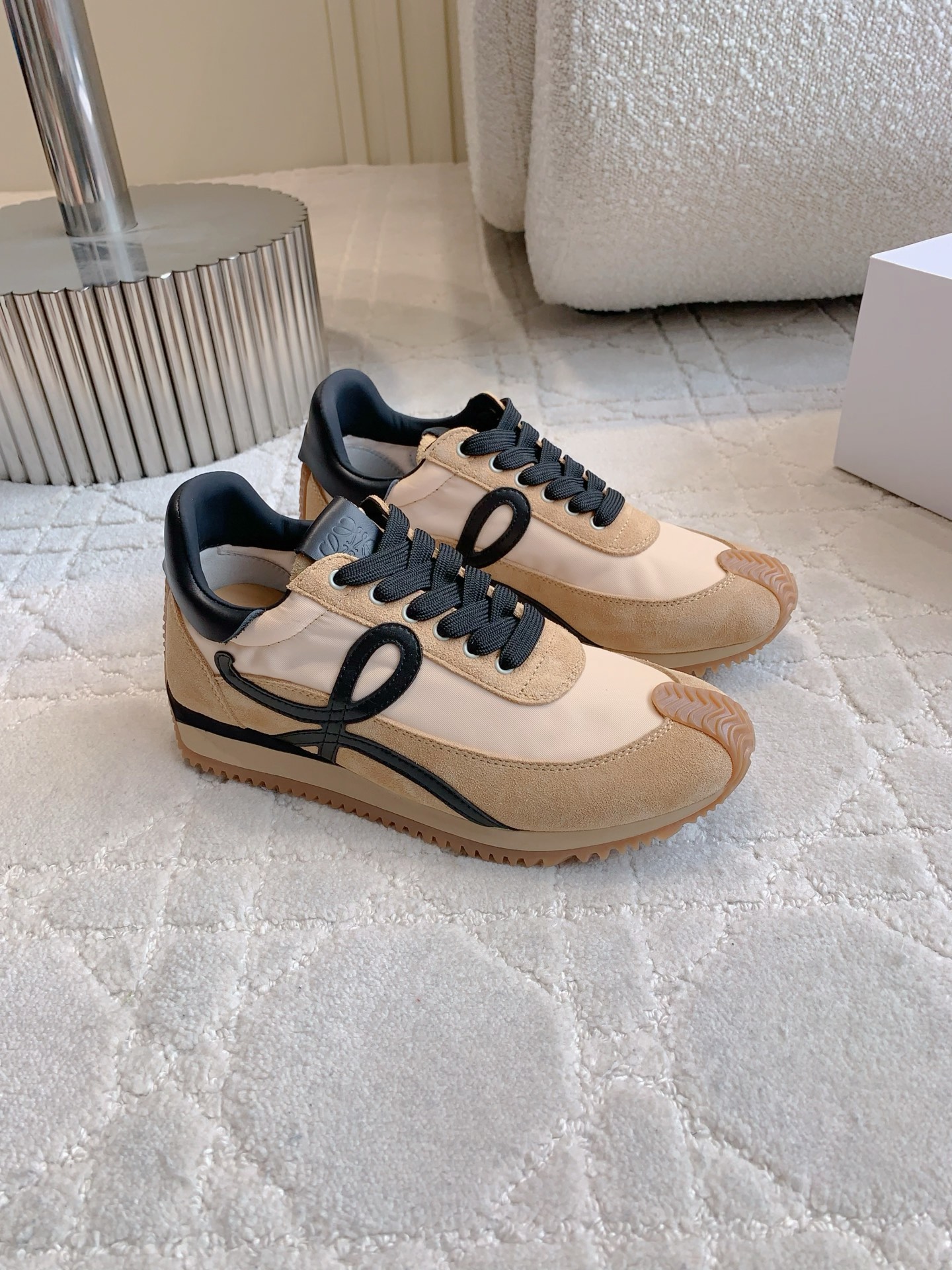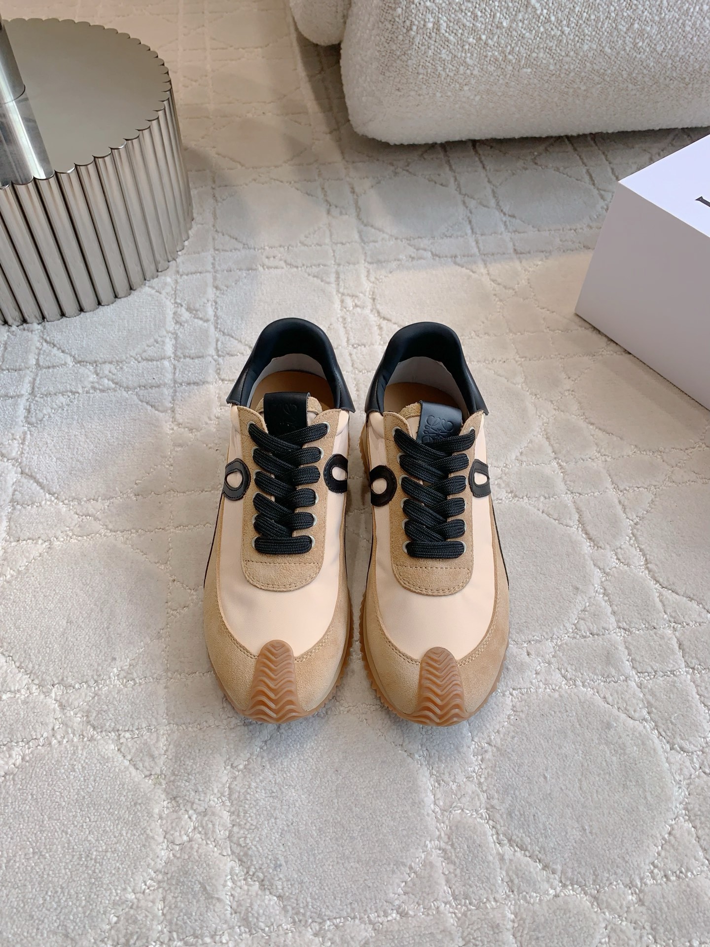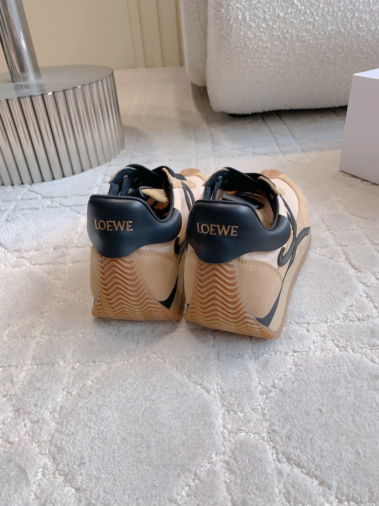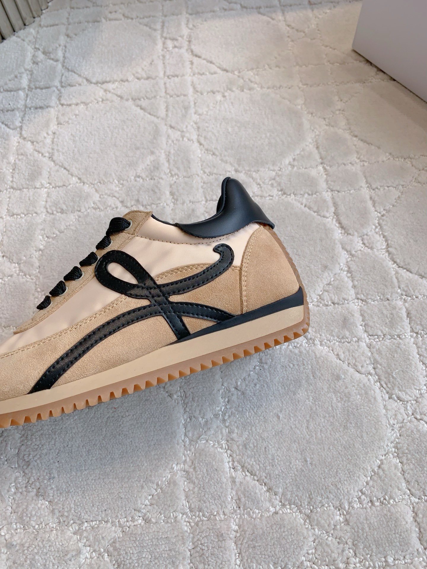 这款鞋子是AAAAA 1:1 质量 (非常棒). 使用了和原版一模一样的材料. 商标部分也保持了和罗意威/Loewe一样. 图片拍摄是实物鞋子拍摄, 您所收到的实物保证和我们图片一模一样.