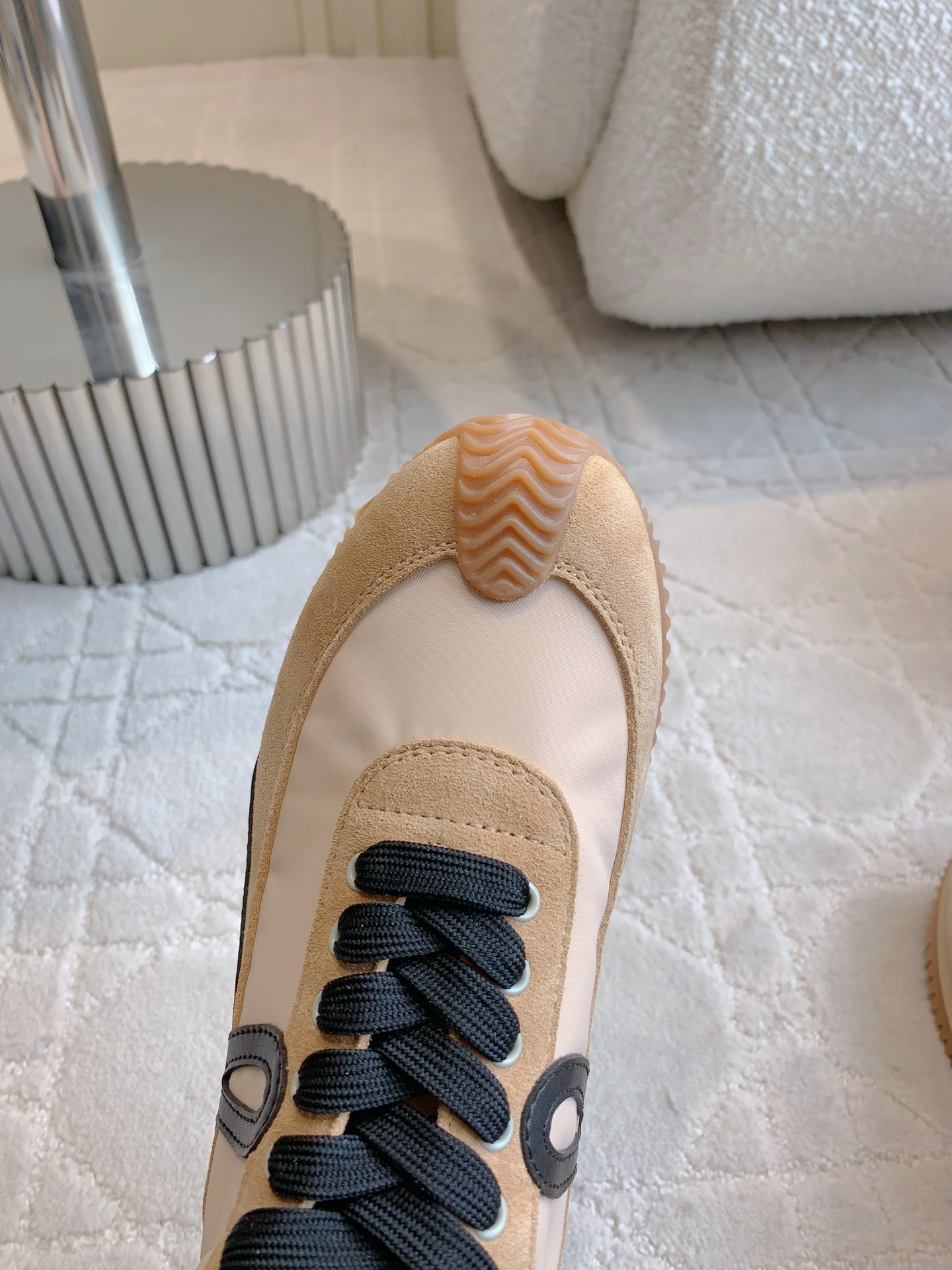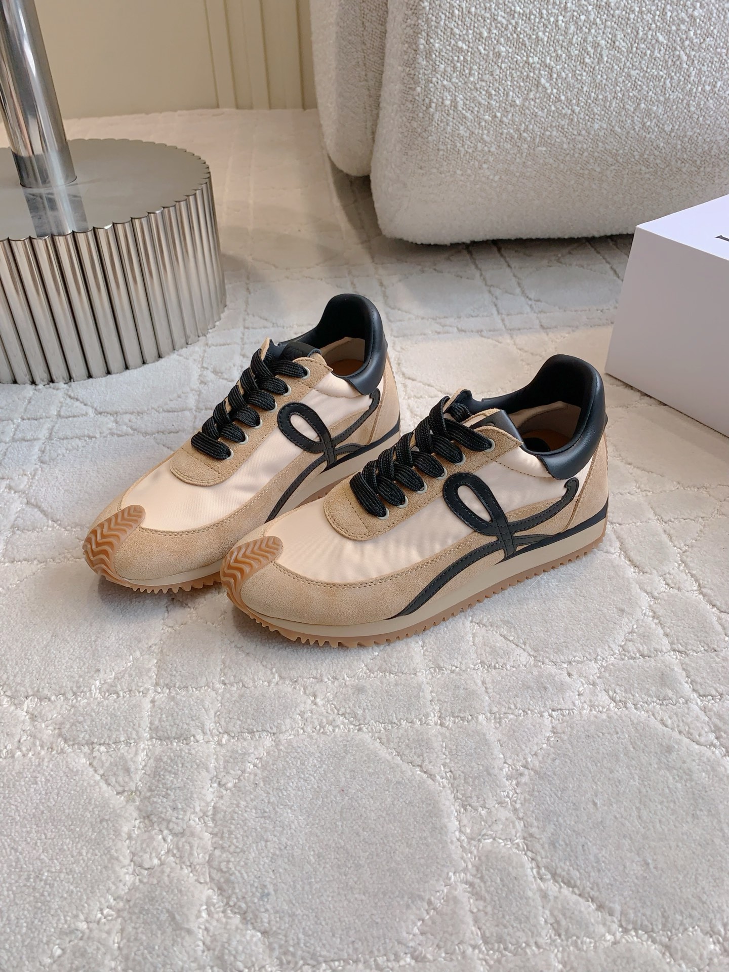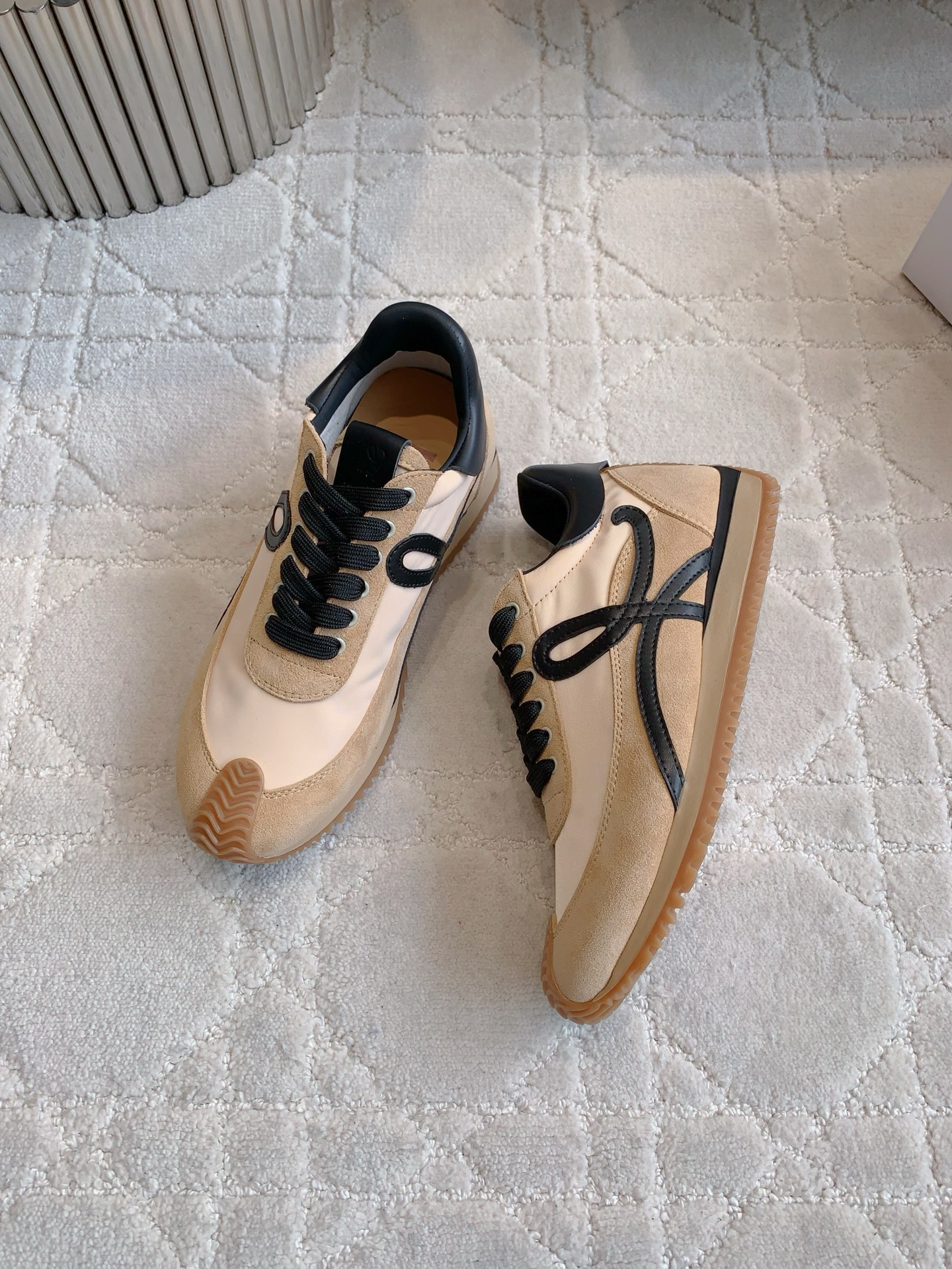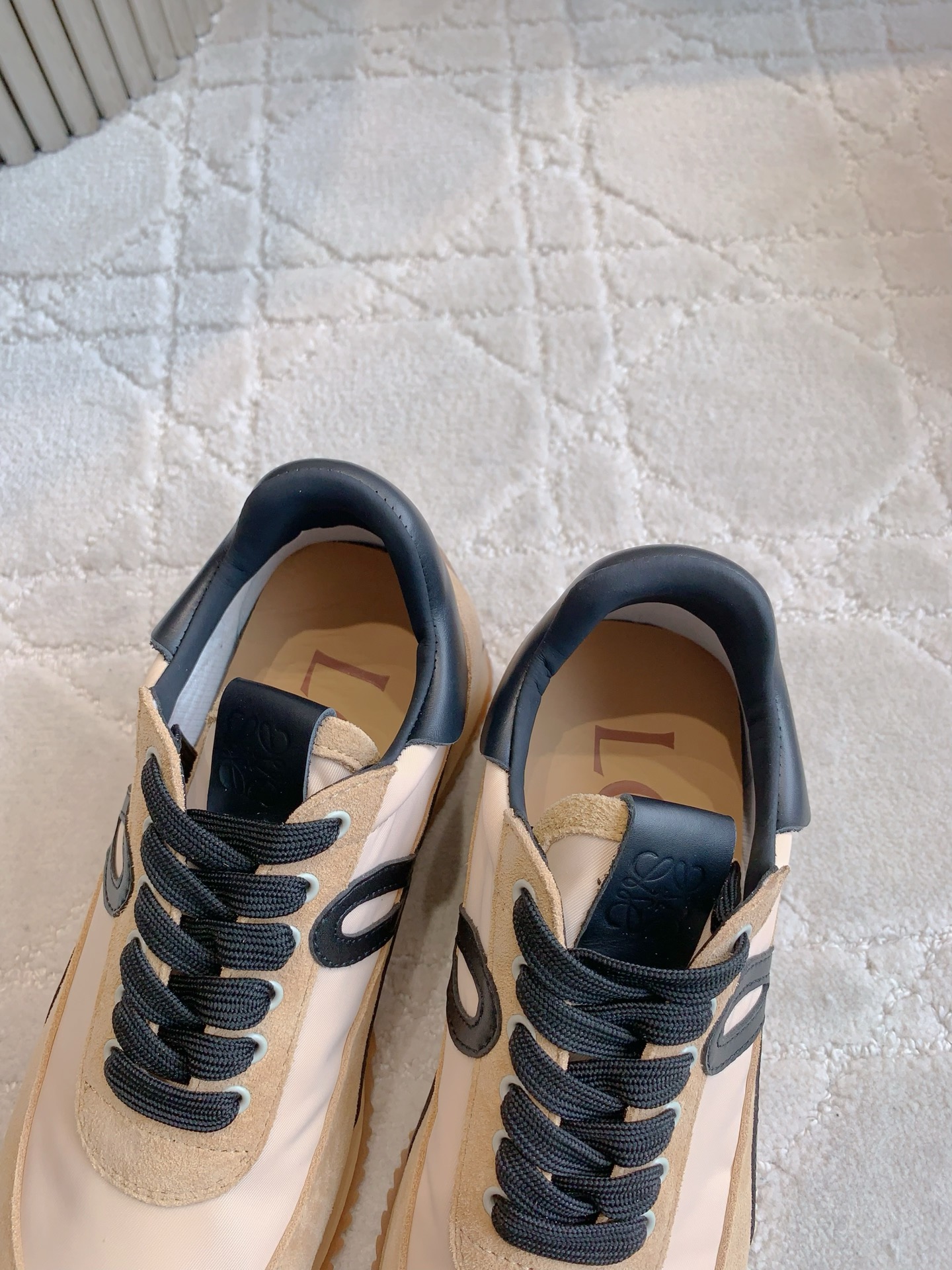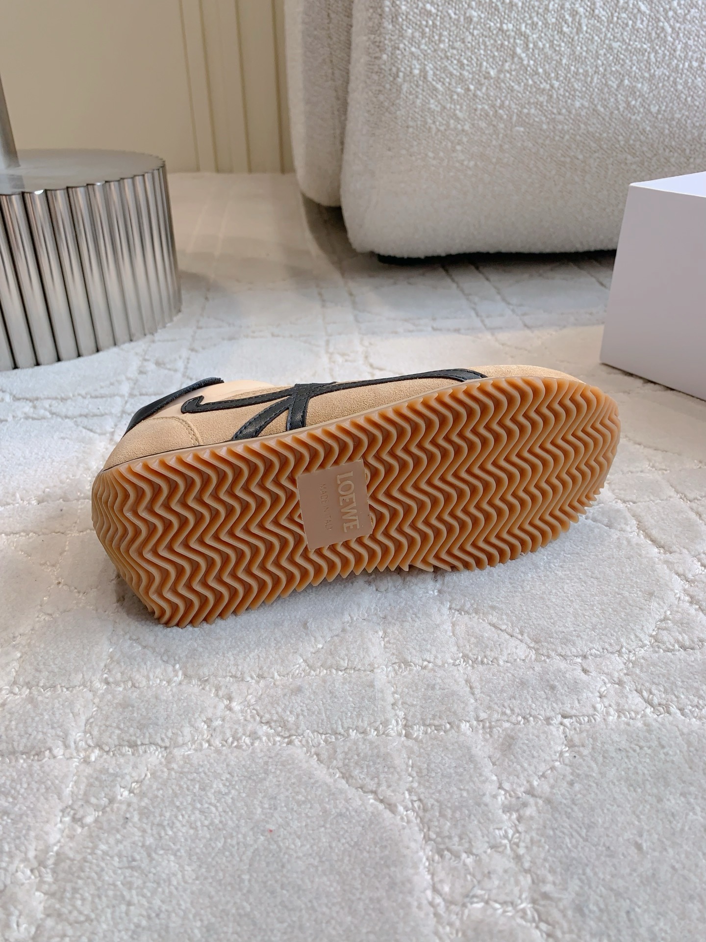 这款鞋子是AAAAA 1:1 质量 (非常棒). 使用了和原版一模一样的材料. 商标部分也保持了和罗意威/Loewe一样. 图片拍摄是实物鞋子拍摄, 您所收到的实物保证和我们图片一模一样.
