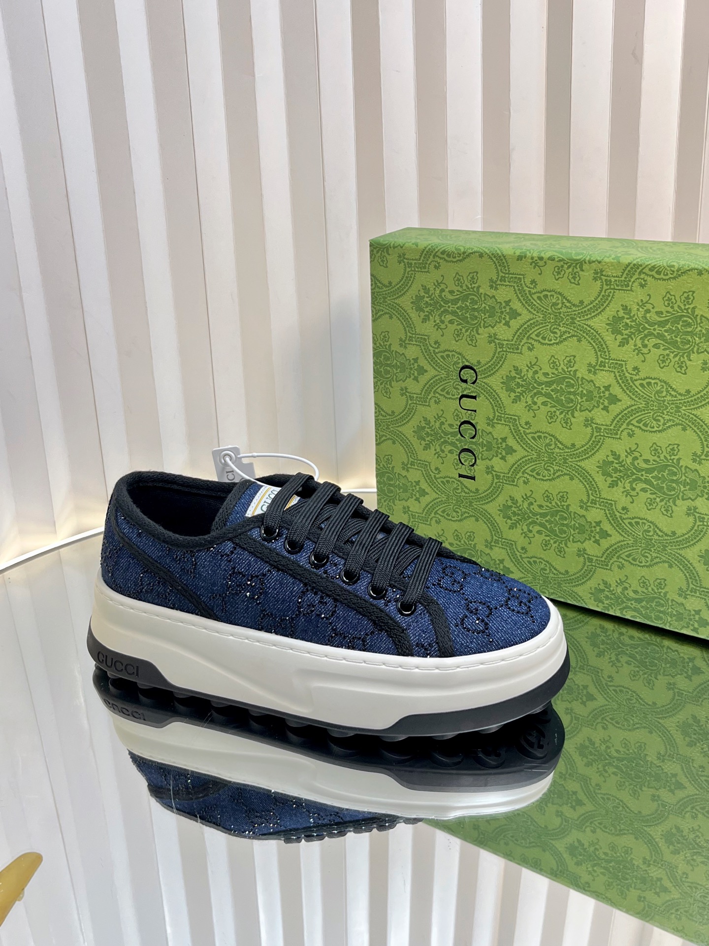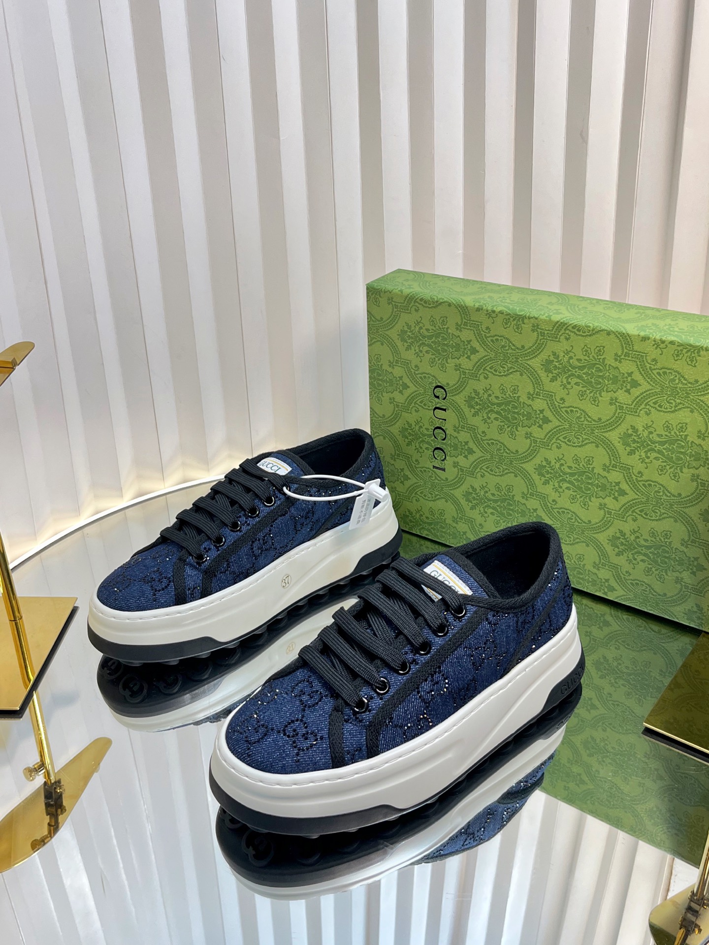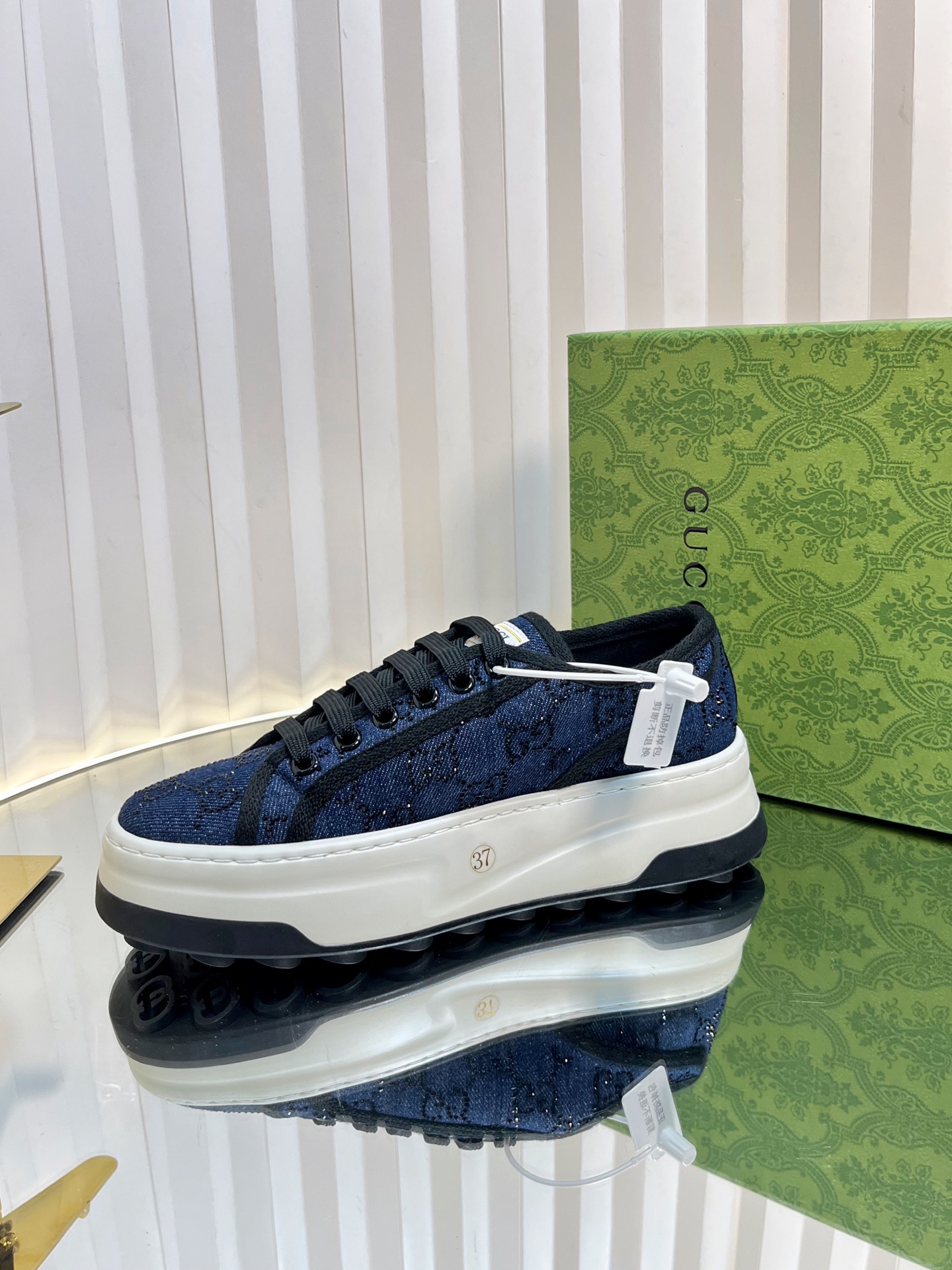 这款鞋子是AAAAA 1:1 质量 (非常棒). 使用了和原版一模一样的材料. 商标部分也保持了和古奇/Gucci一样. 图片拍摄是实物鞋子拍摄, 您所收到的实物保证和我们图片一模一样.