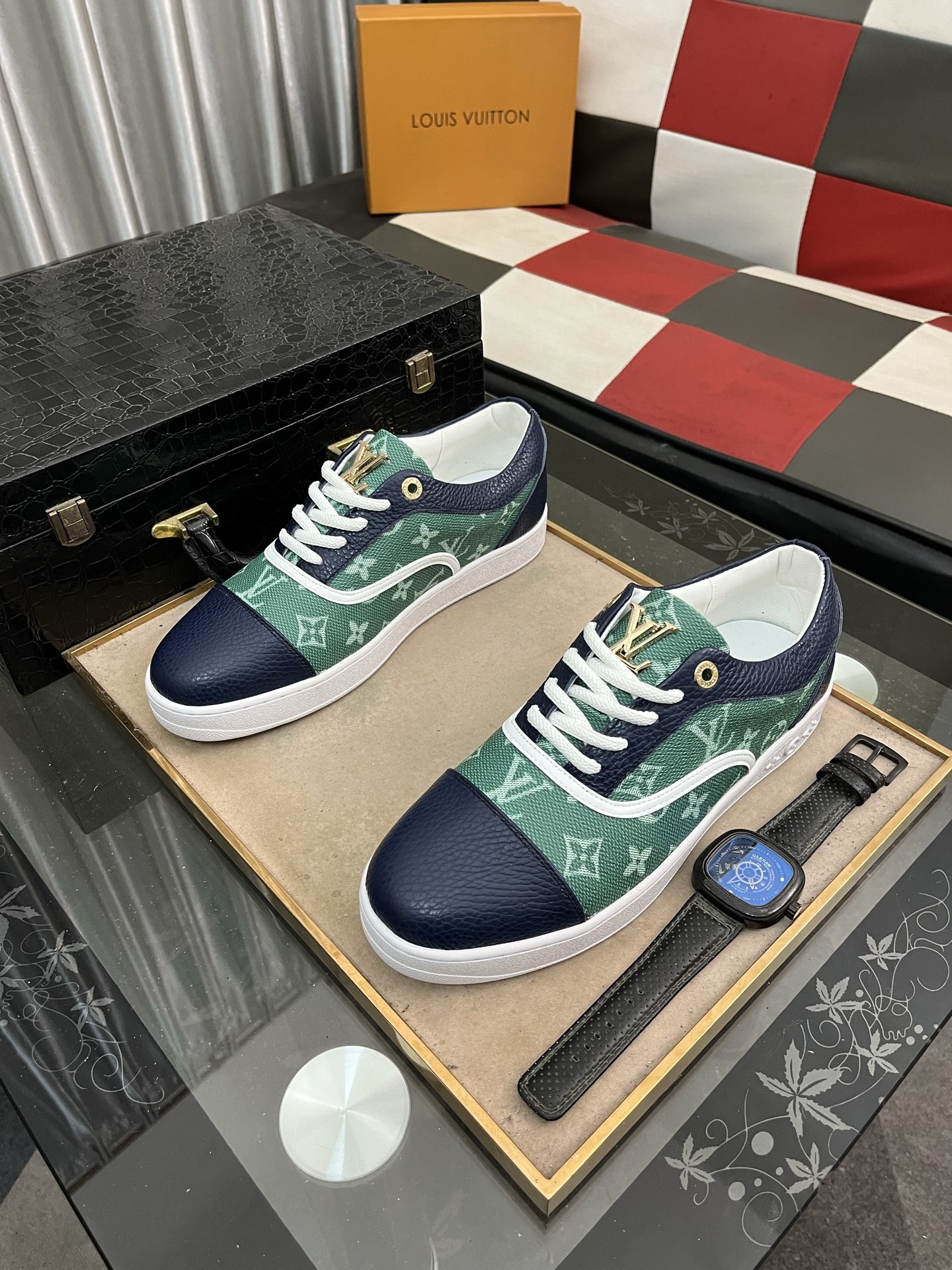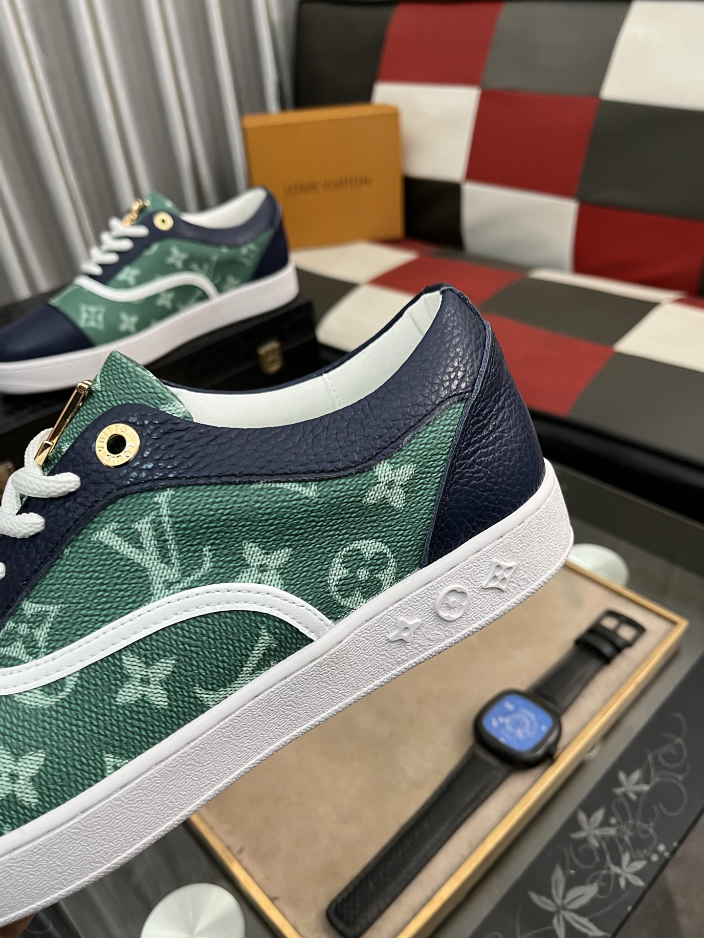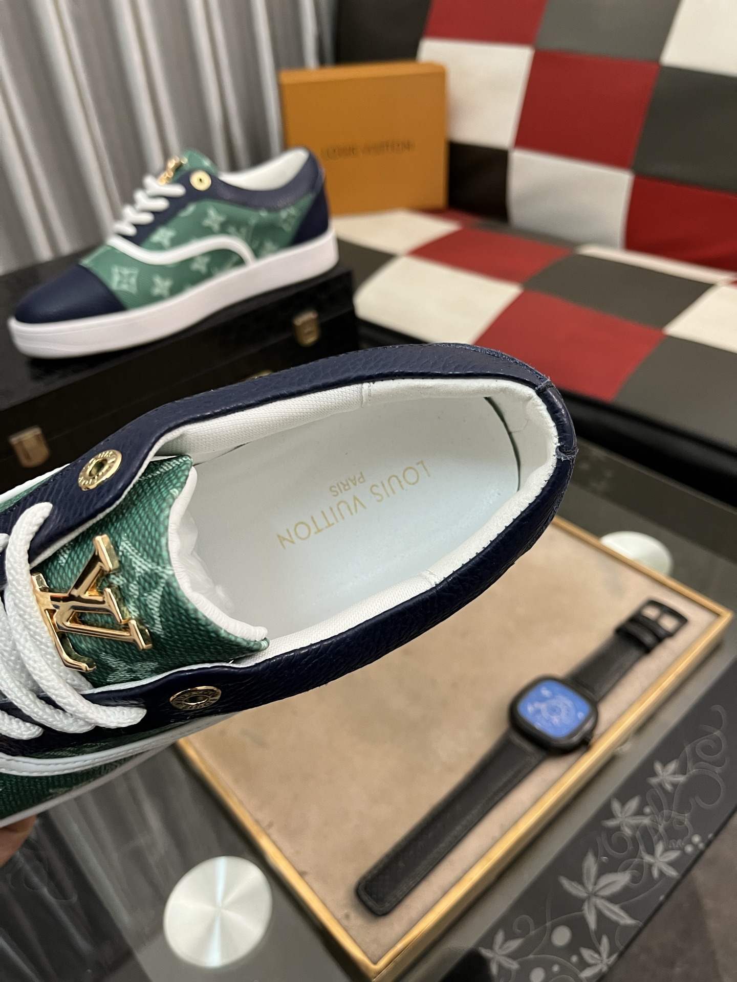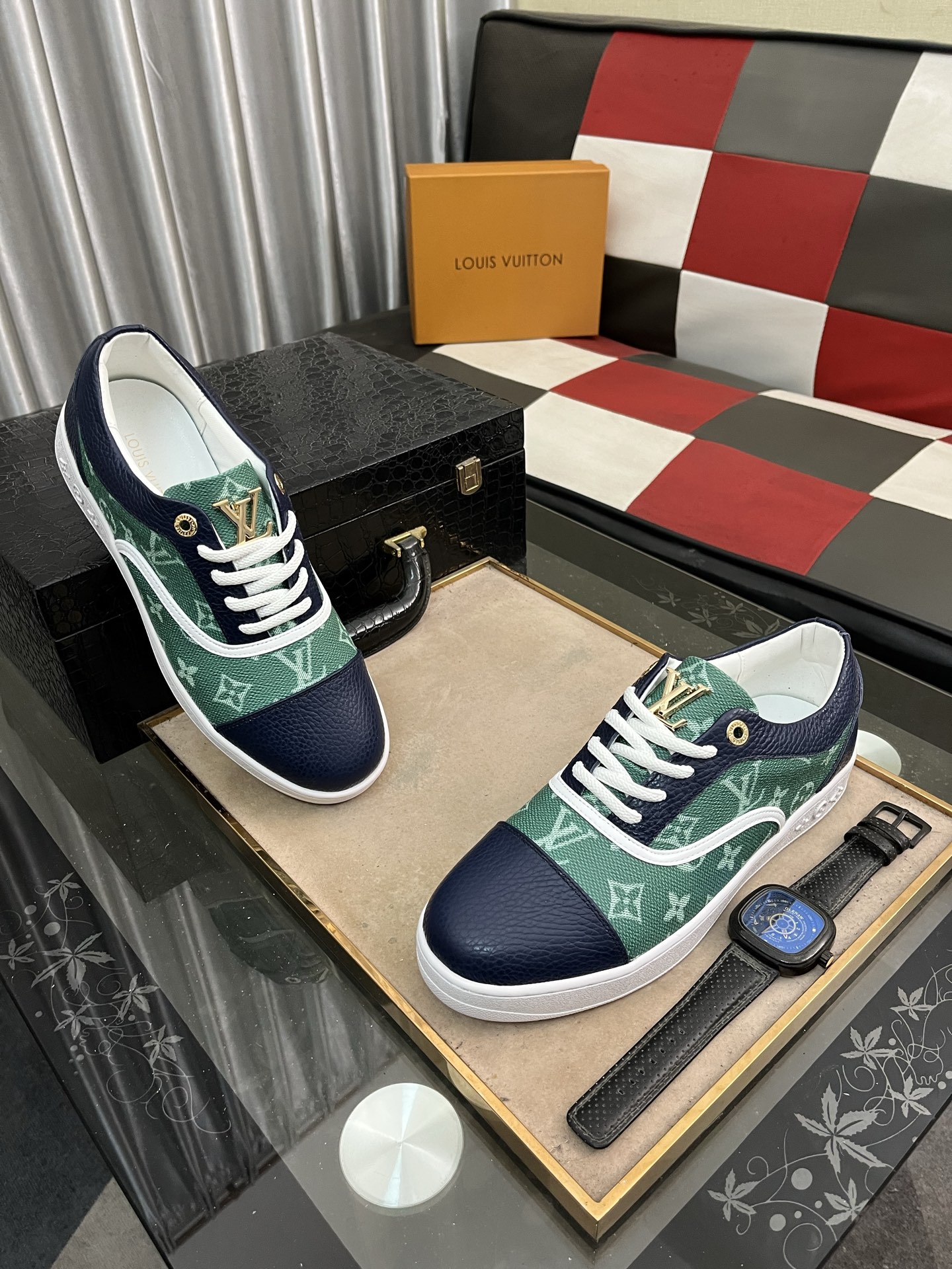 这款鞋子是AAAAA 1:1 质量 (非常棒). 使用了和原版一模一样的材料. 商标部分也保持了和路易威登/Louis Vuitton一样. 图片拍摄是实物鞋子拍摄, 您所收到的实物保证和我们图片一模一样.