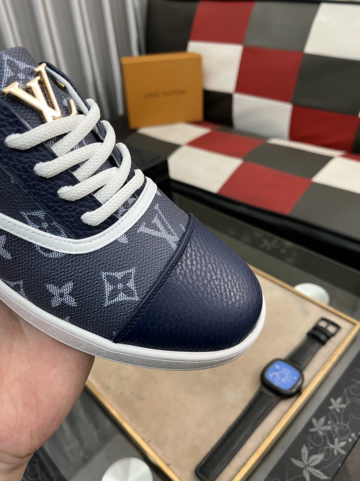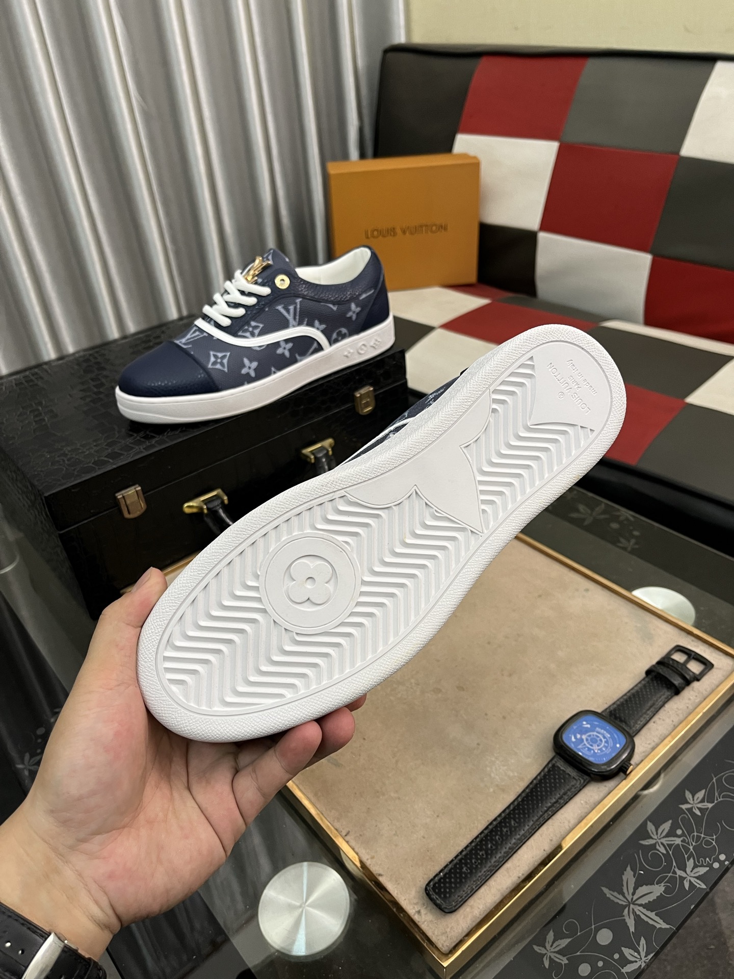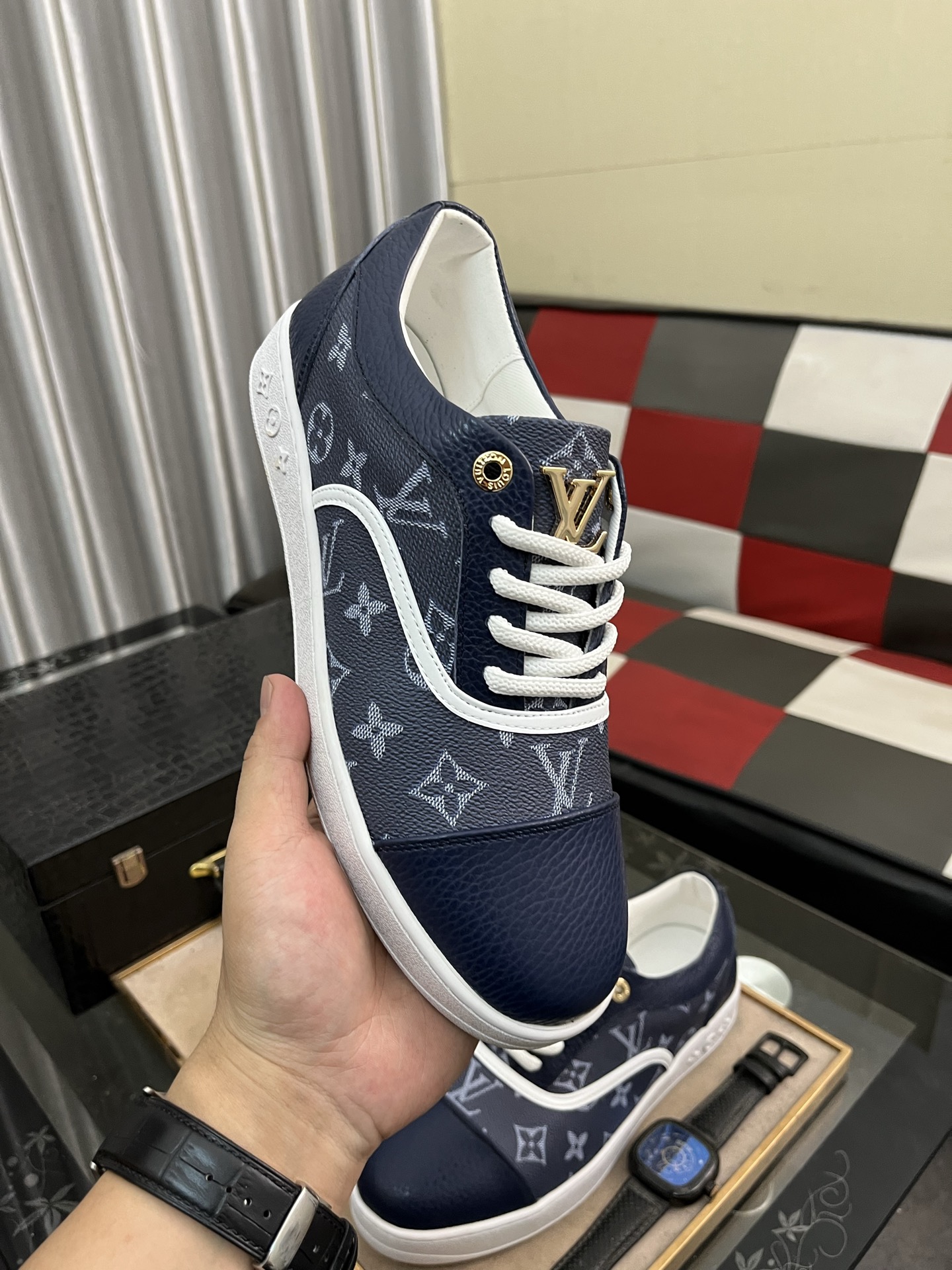这款鞋子是AAAAA 1:1 质量 (非常棒). 使用了和原版一模一样的材料. 商标部分也保持了和路易威登/Louis Vuitton一样. 图片拍摄是实物鞋子拍摄, 您所收到的实物保证和我们图片一模一样.