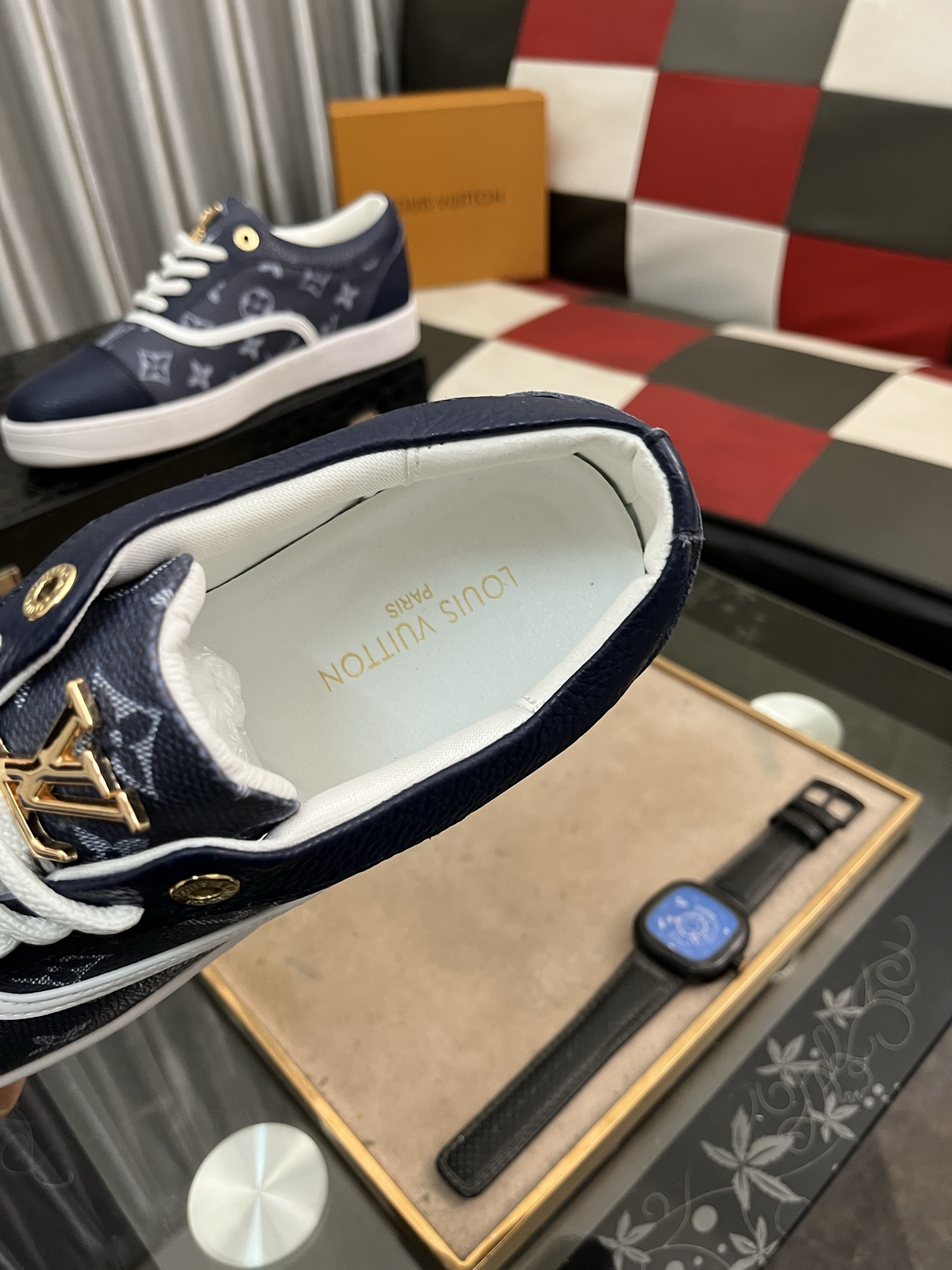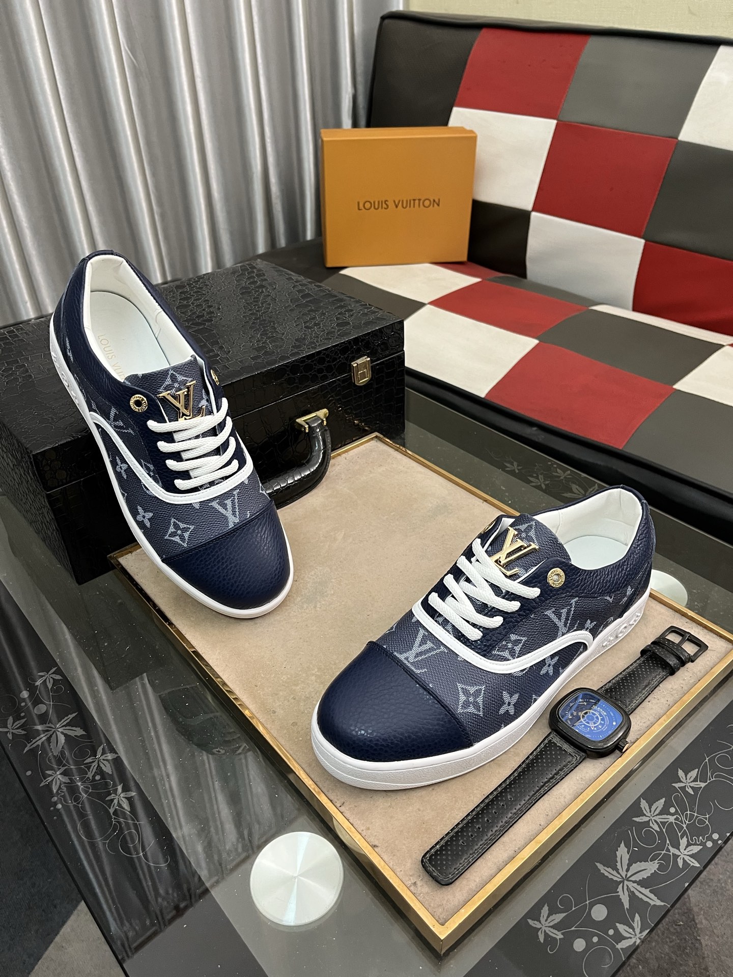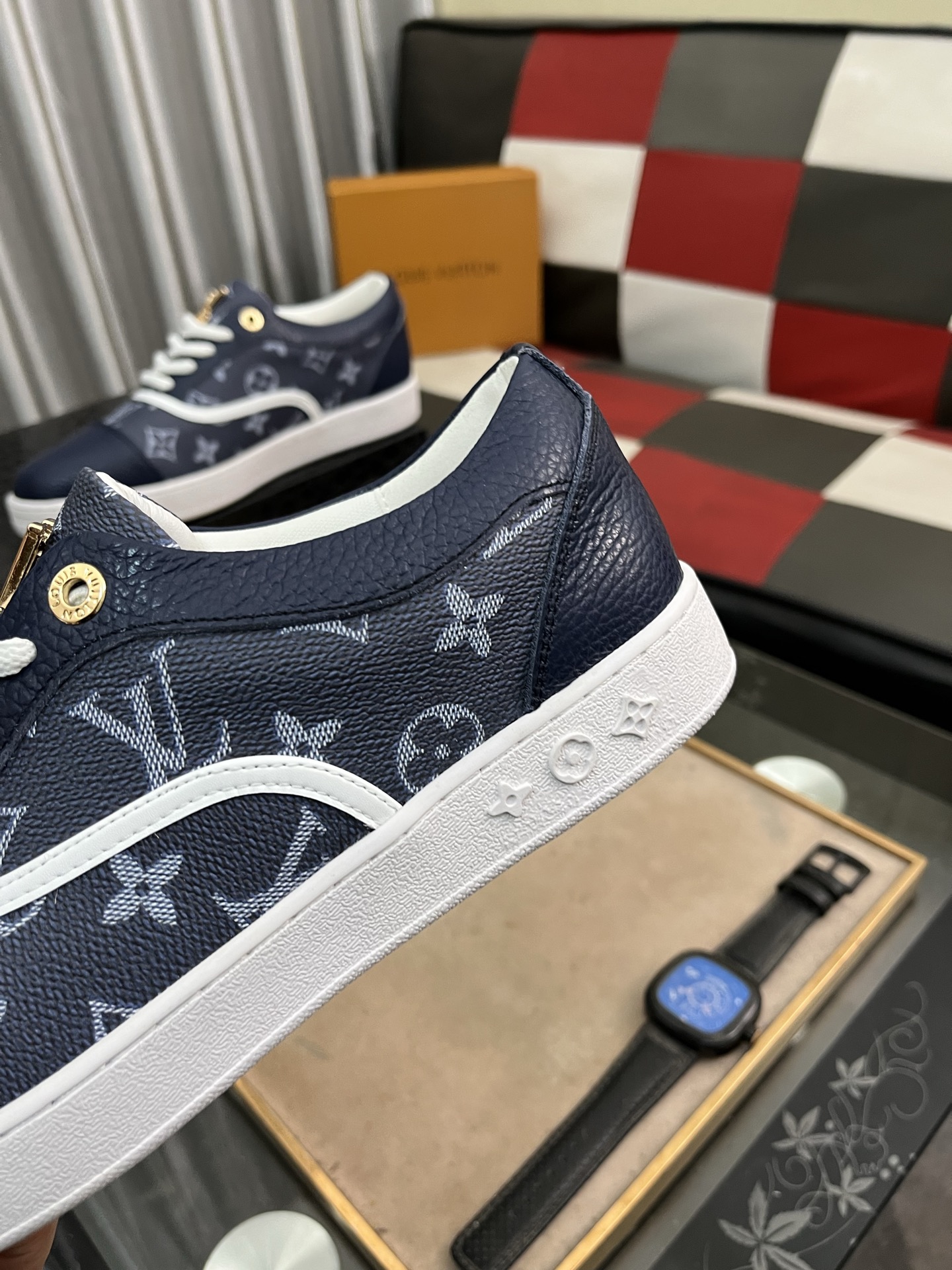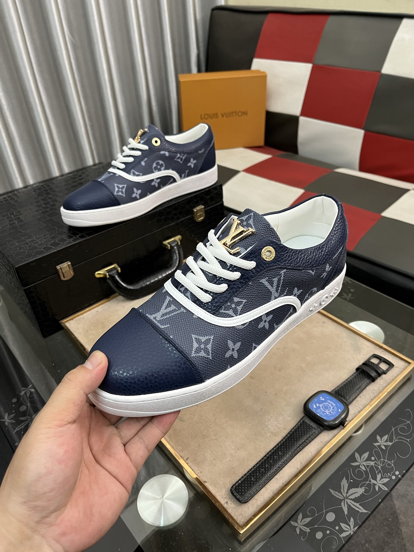 这款鞋子是AAAAA 1:1 质量 (非常棒). 使用了和原版一模一样的材料. 商标部分也保持了和路易威登/Louis Vuitton一样. 图片拍摄是实物鞋子拍摄, 您所收到的实物保证和我们图片一模一样.