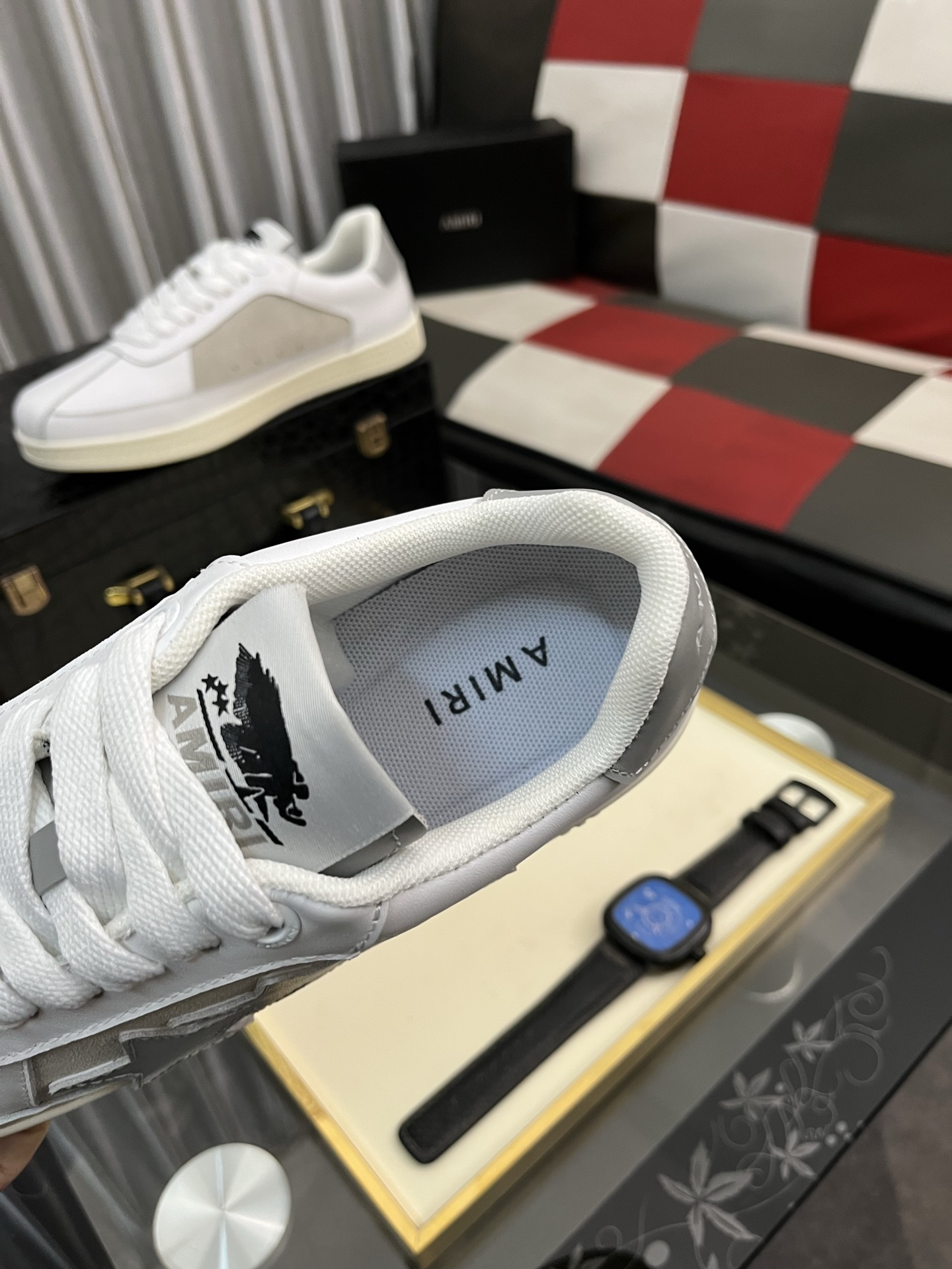 这款鞋子是AAAAA 1:1 质量 (非常棒). 使用了和原版一模一样的材料. 商标部分也保持了和AMIRI一样. 图片拍摄是实物鞋子拍摄, 您所收到的实物保证和我们图片一模一样.