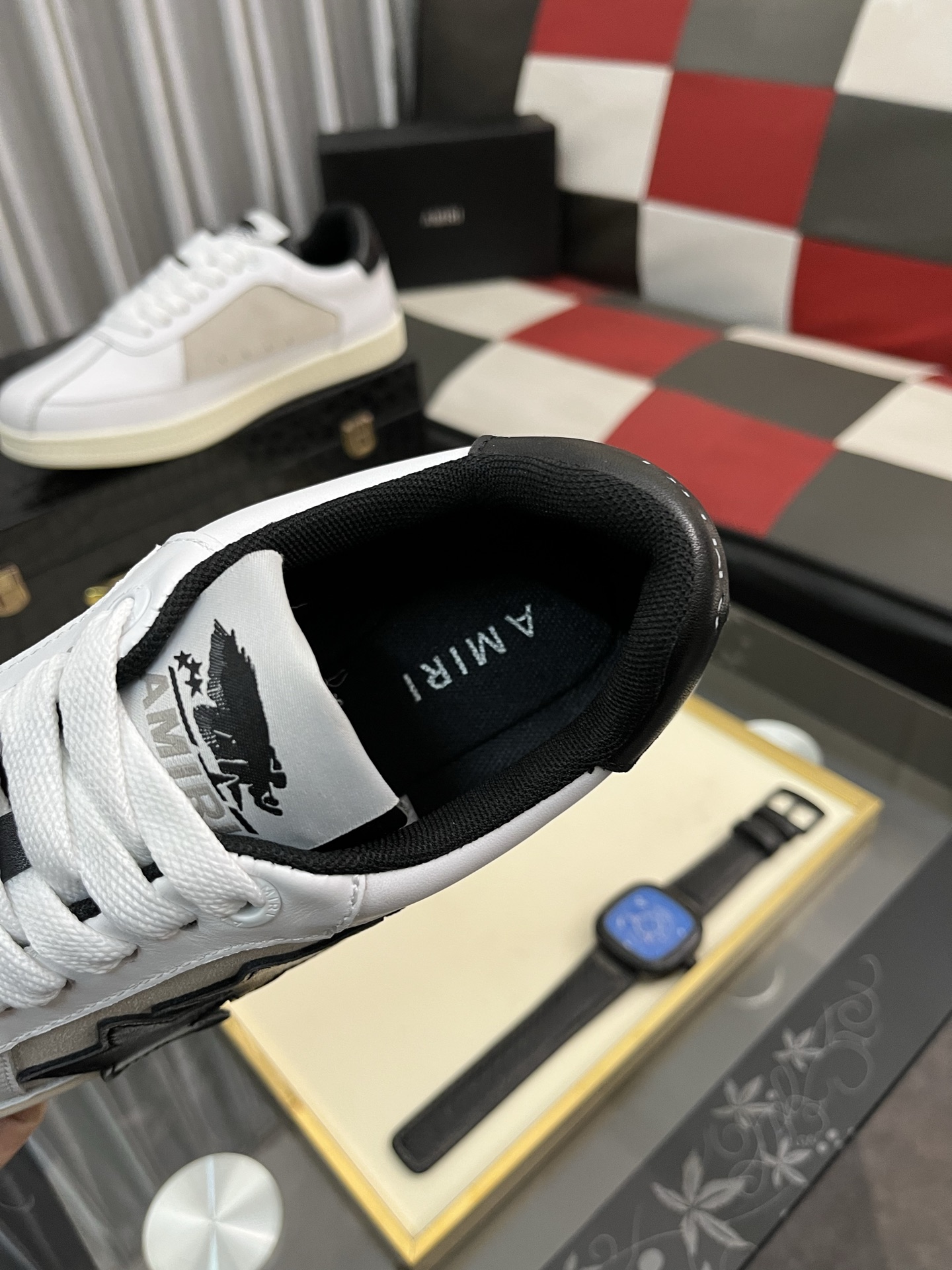 这款鞋子是AAAAA 1:1 质量 (非常棒). 使用了和原版一模一样的材料. 商标部分也保持了和AMIRI一样. 图片拍摄是实物鞋子拍摄, 您所收到的实物保证和我们图片一模一样.