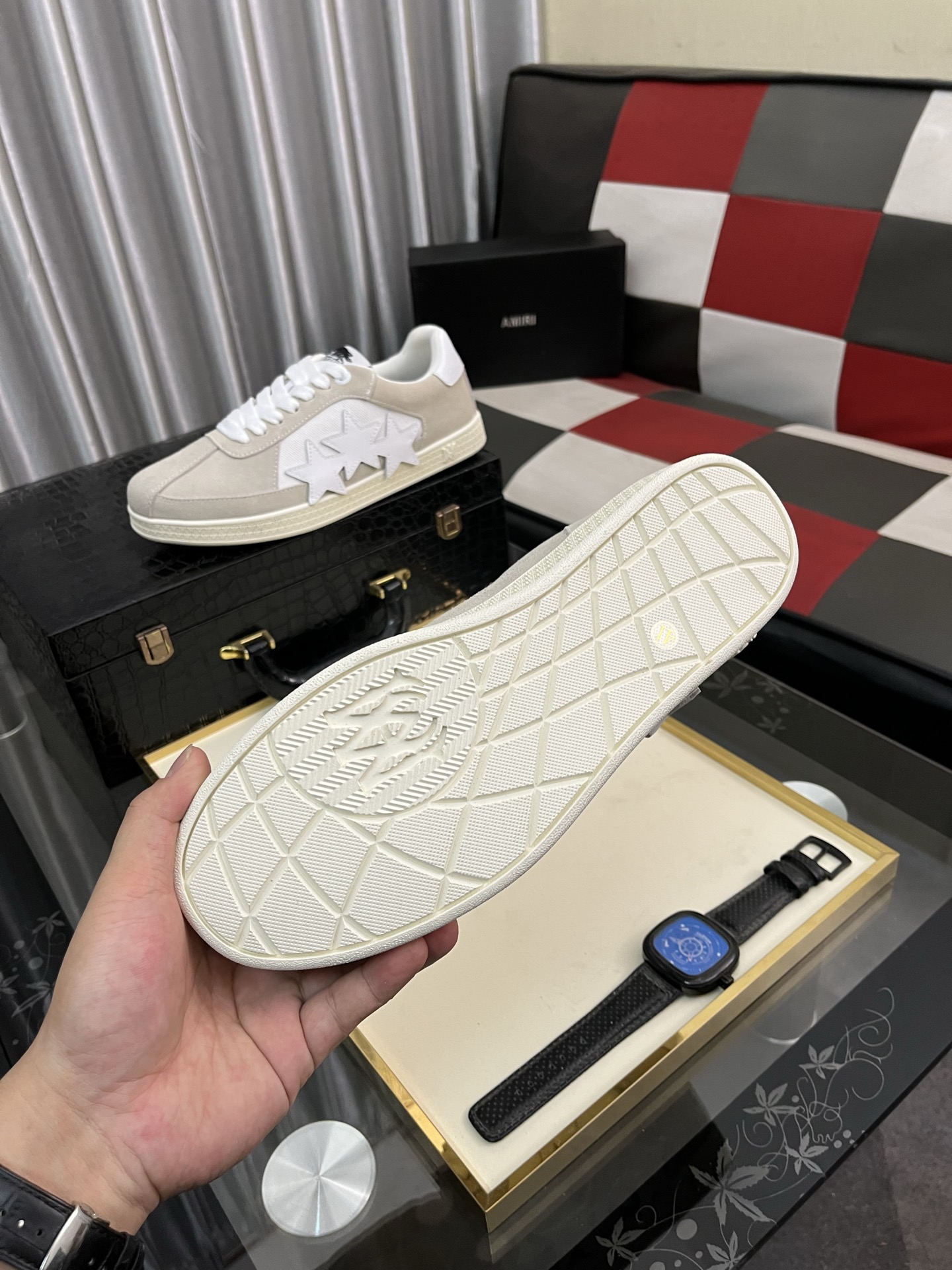 这款鞋子是AAAAA 1:1 质量 (非常棒). 使用了和原版一模一样的材料. 商标部分也保持了和AMIRI一样. 图片拍摄是实物鞋子拍摄, 您所收到的实物保证和我们图片一模一样.