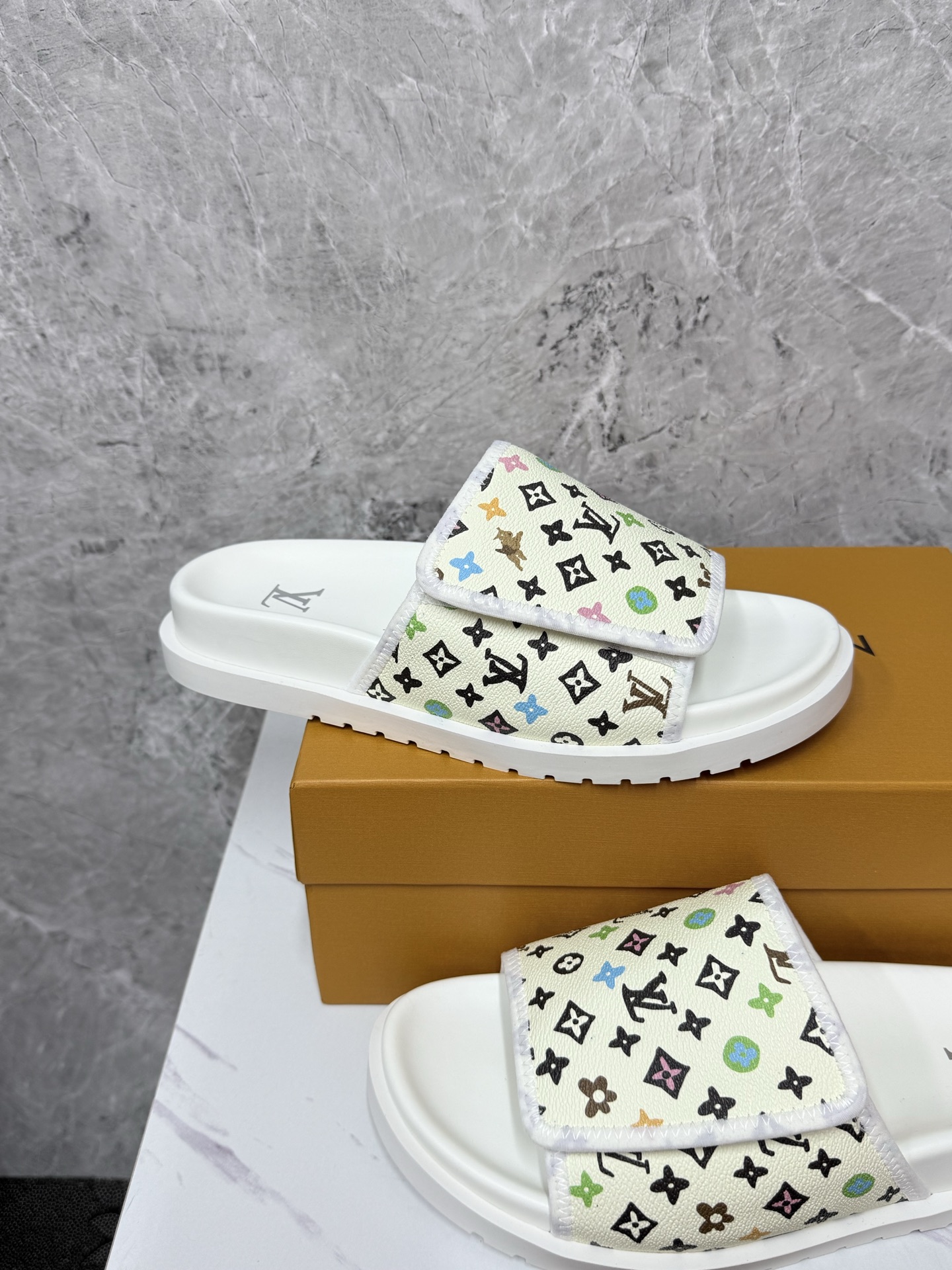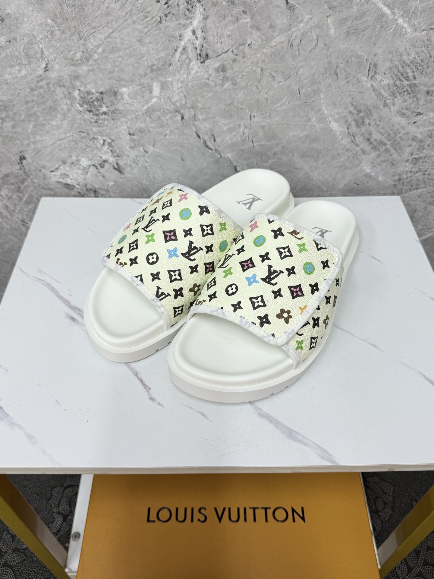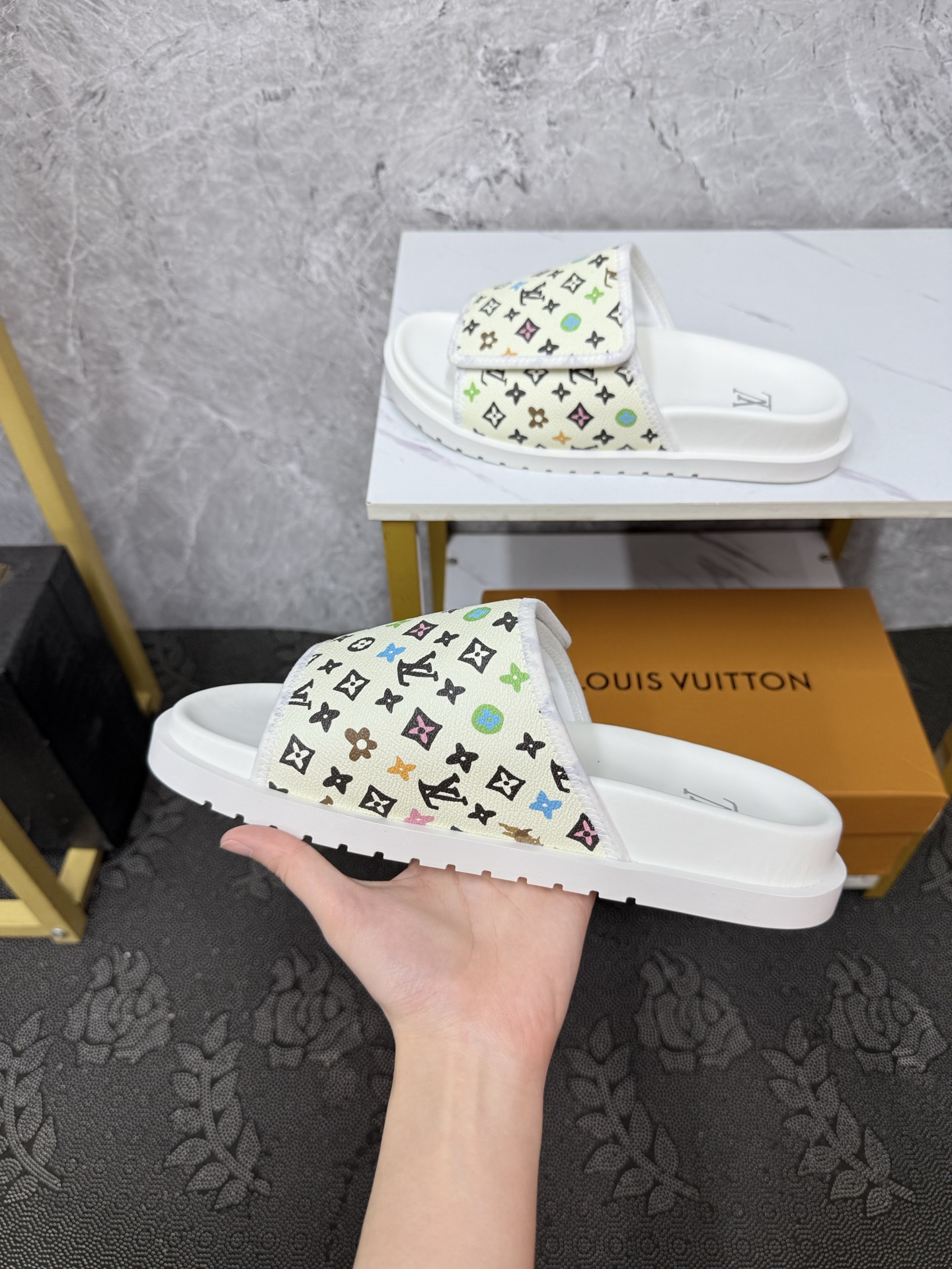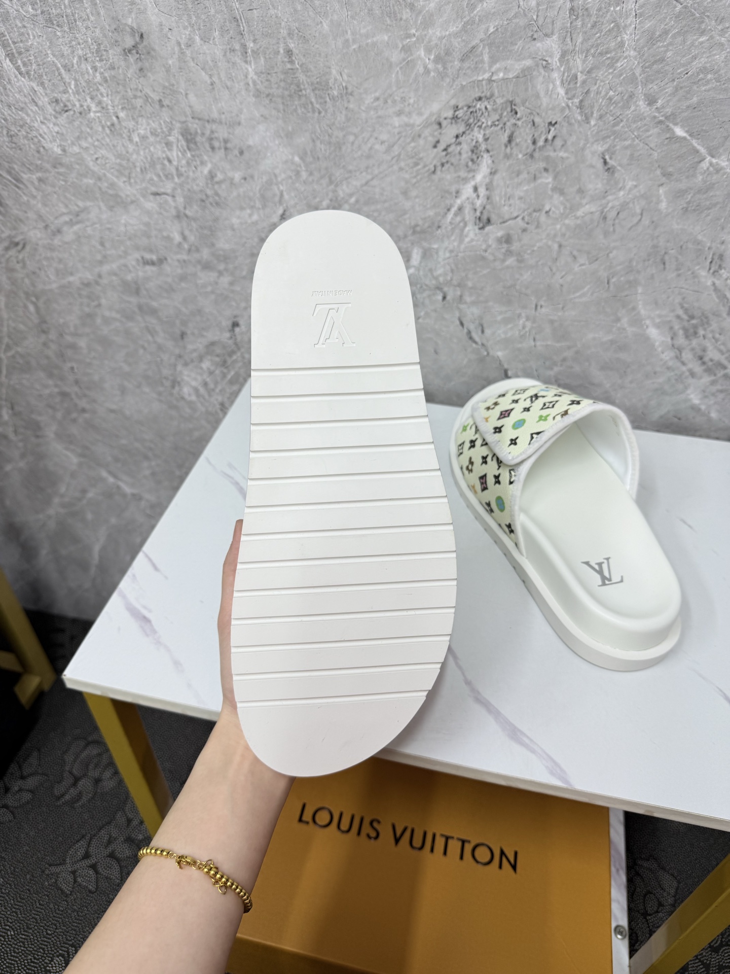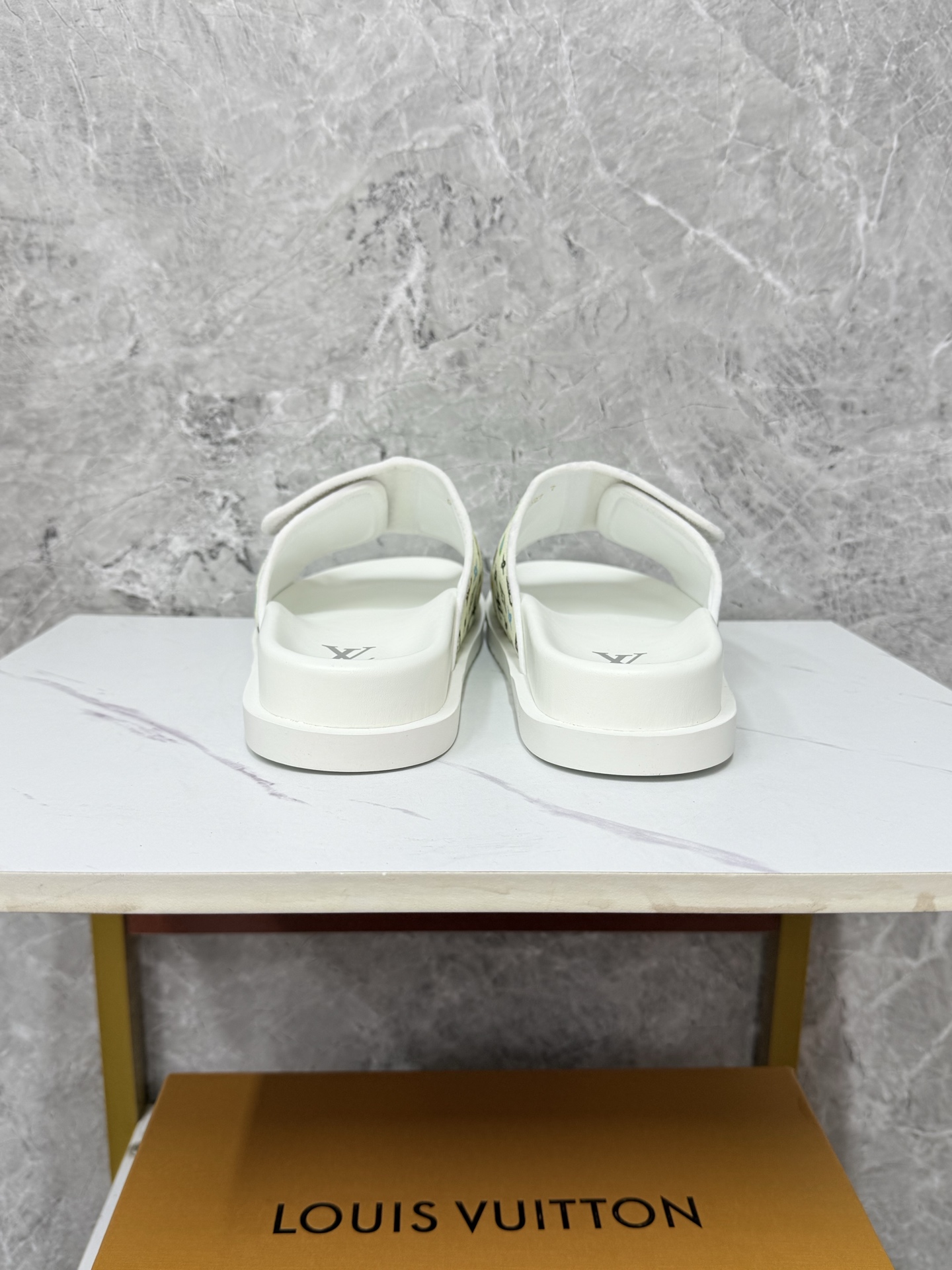 这款鞋子是AAAAA 1:1 质量 (非常棒). 使用了和原版一模一样的材料. 商标部分也保持了和路易威登/Louis Vuitton一样. 图片拍摄是实物鞋子拍摄, 您所收到的实物保证和我们图片一模一样.