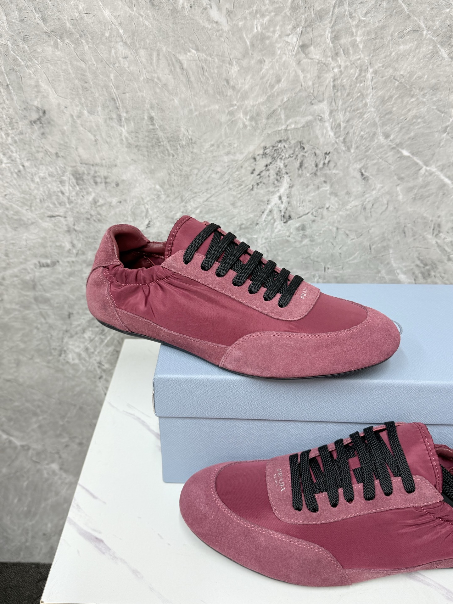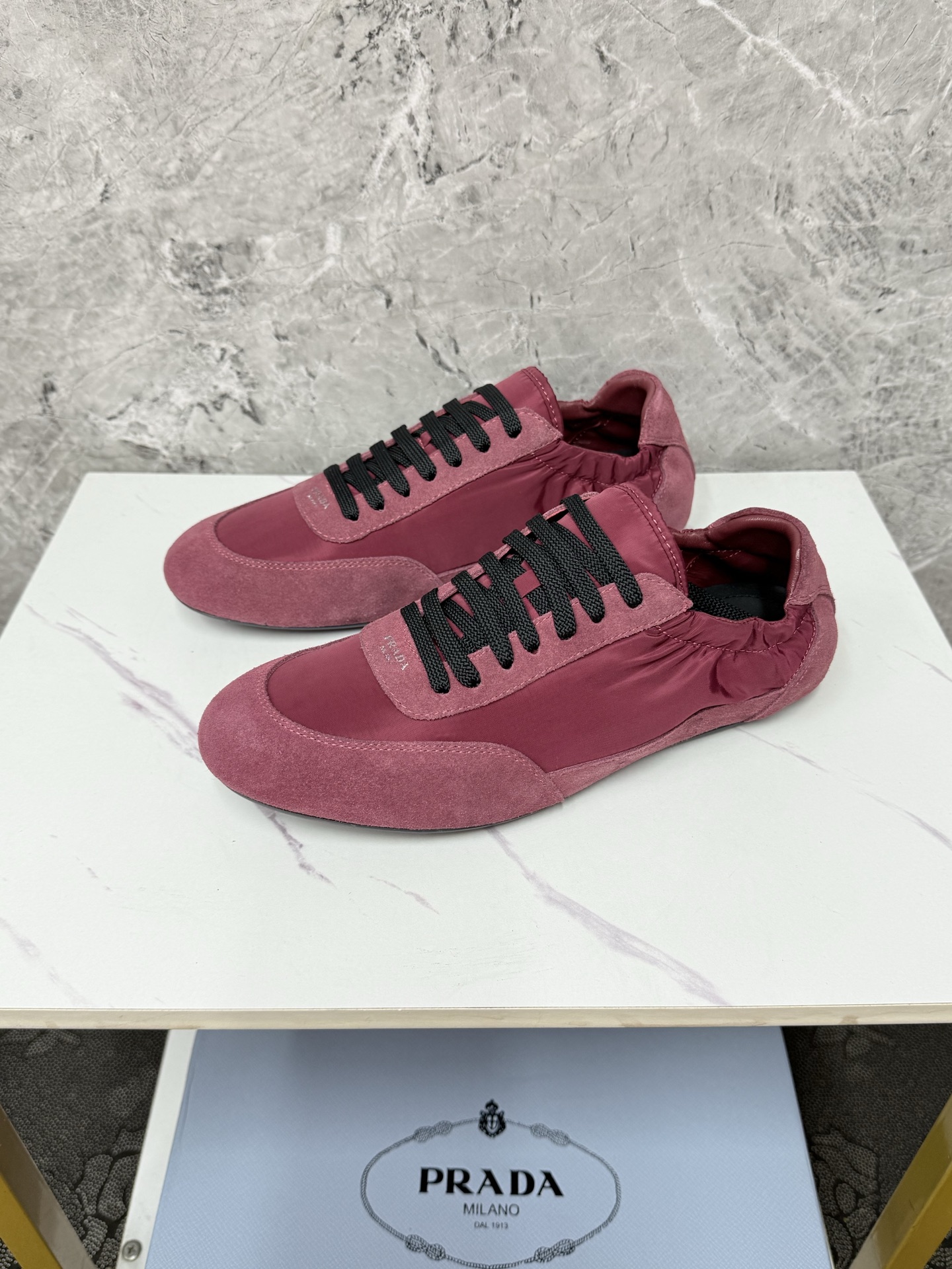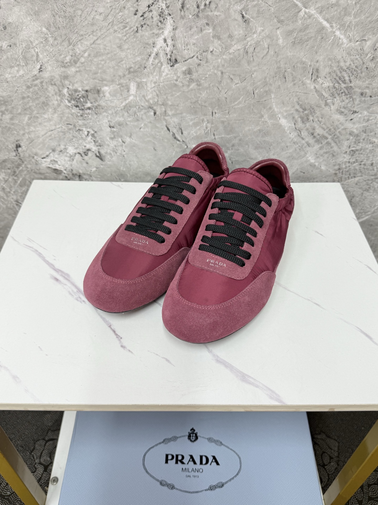 这款鞋子是AAAAA 1:1 质量 (非常棒). 使用了和原版一模一样的材料. 商标部分也保持了和普拉达/Prada一样. 图片拍摄是实物鞋子拍摄, 您所收到的实物保证和我们图片一模一样.