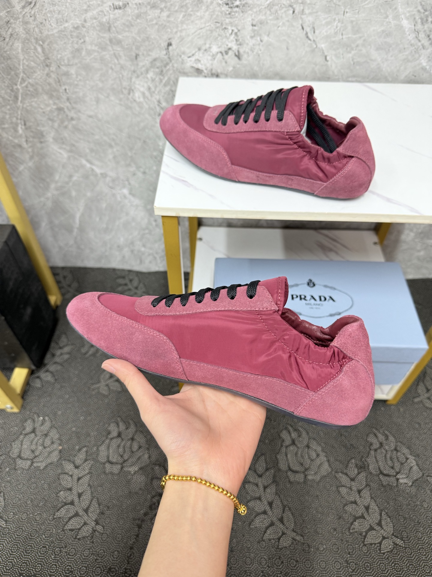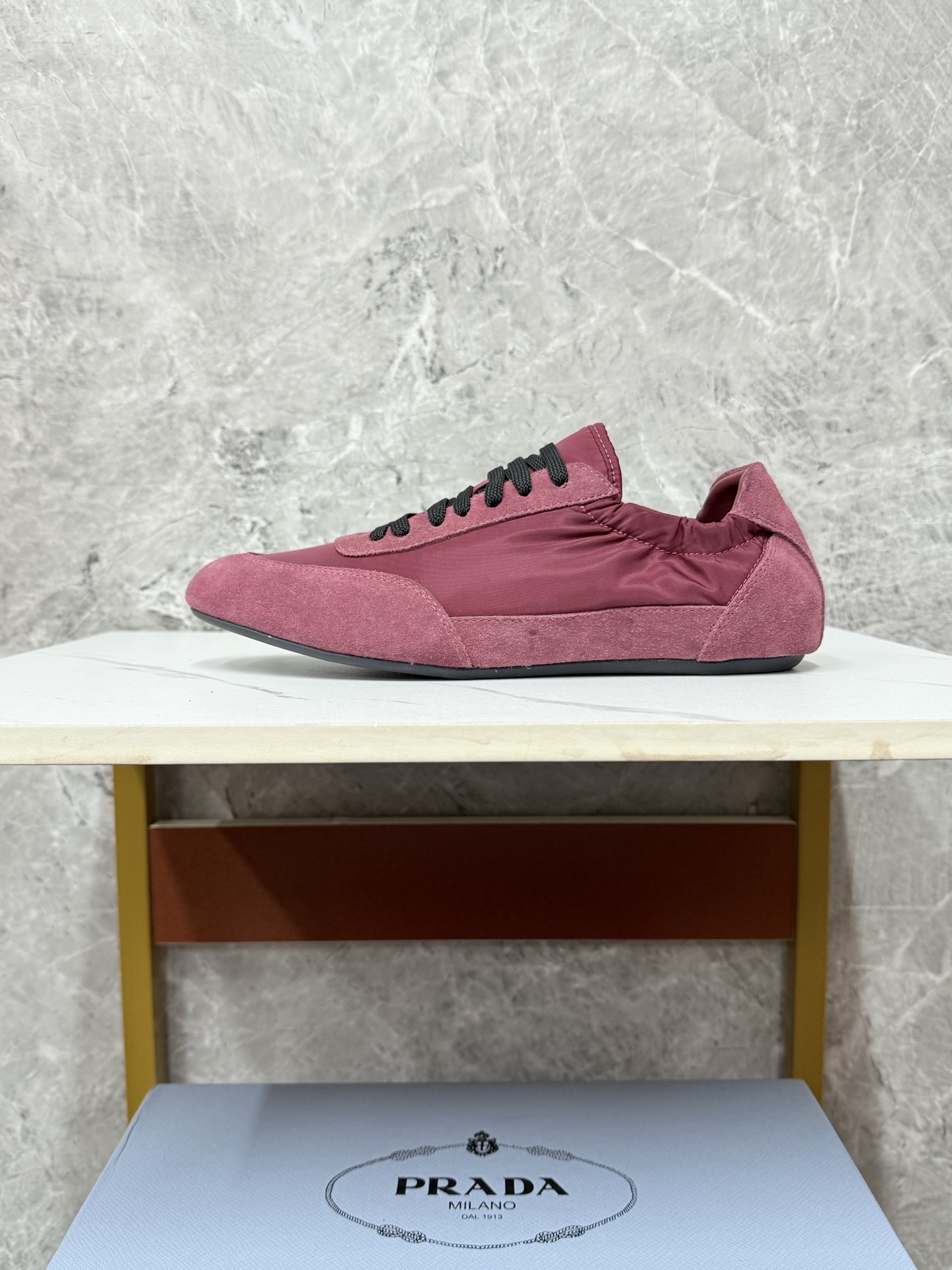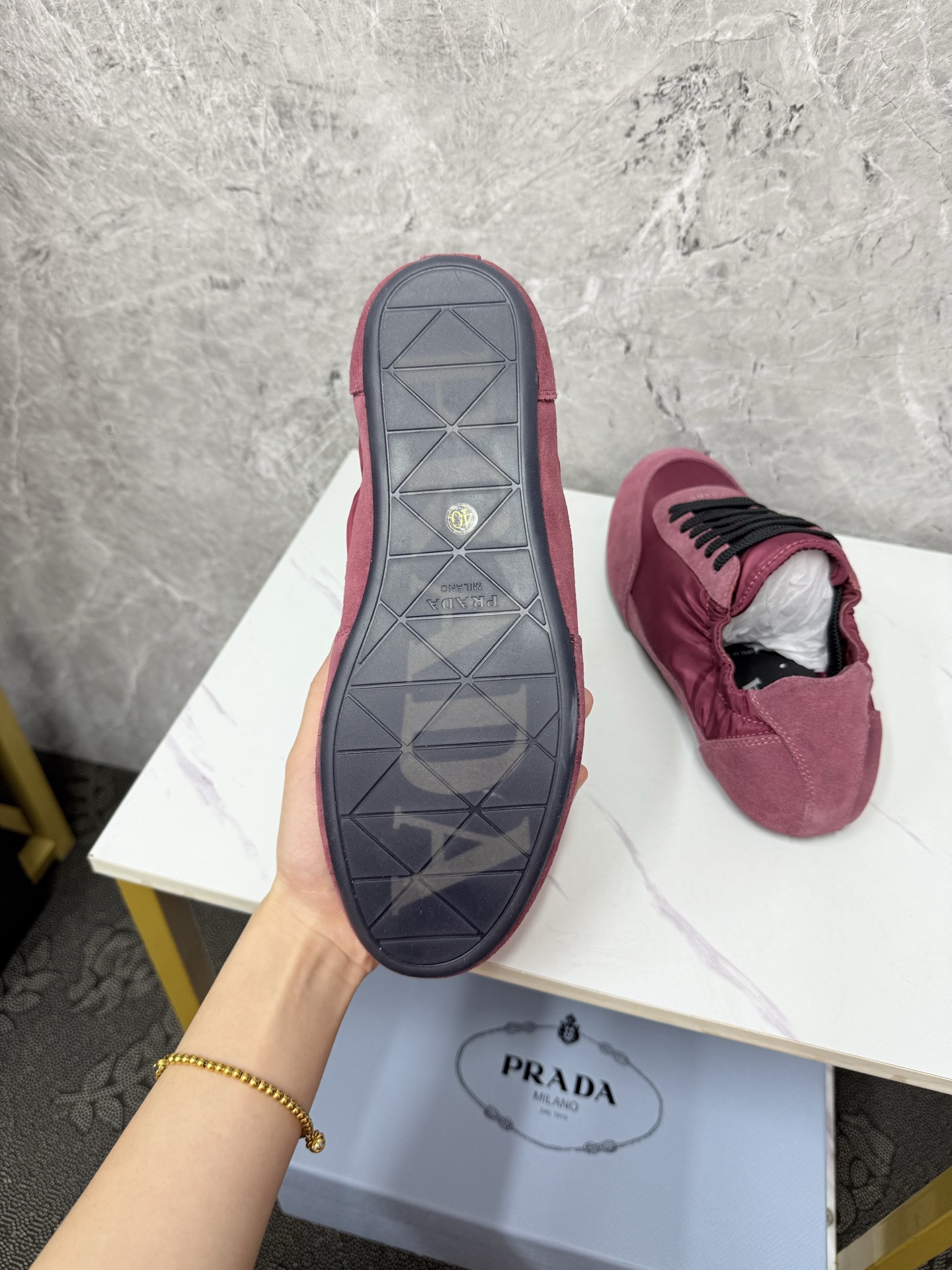 这款鞋子是AAAAA 1:1 质量 (非常棒). 使用了和原版一模一样的材料. 商标部分也保持了和普拉达/Prada一样. 图片拍摄是实物鞋子拍摄, 您所收到的实物保证和我们图片一模一样.