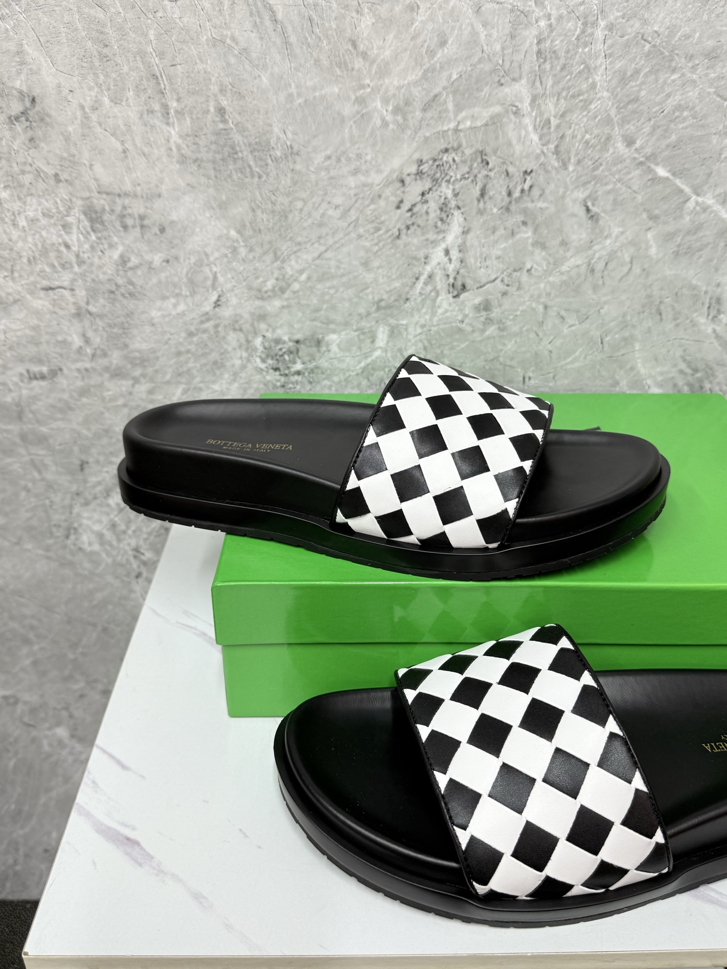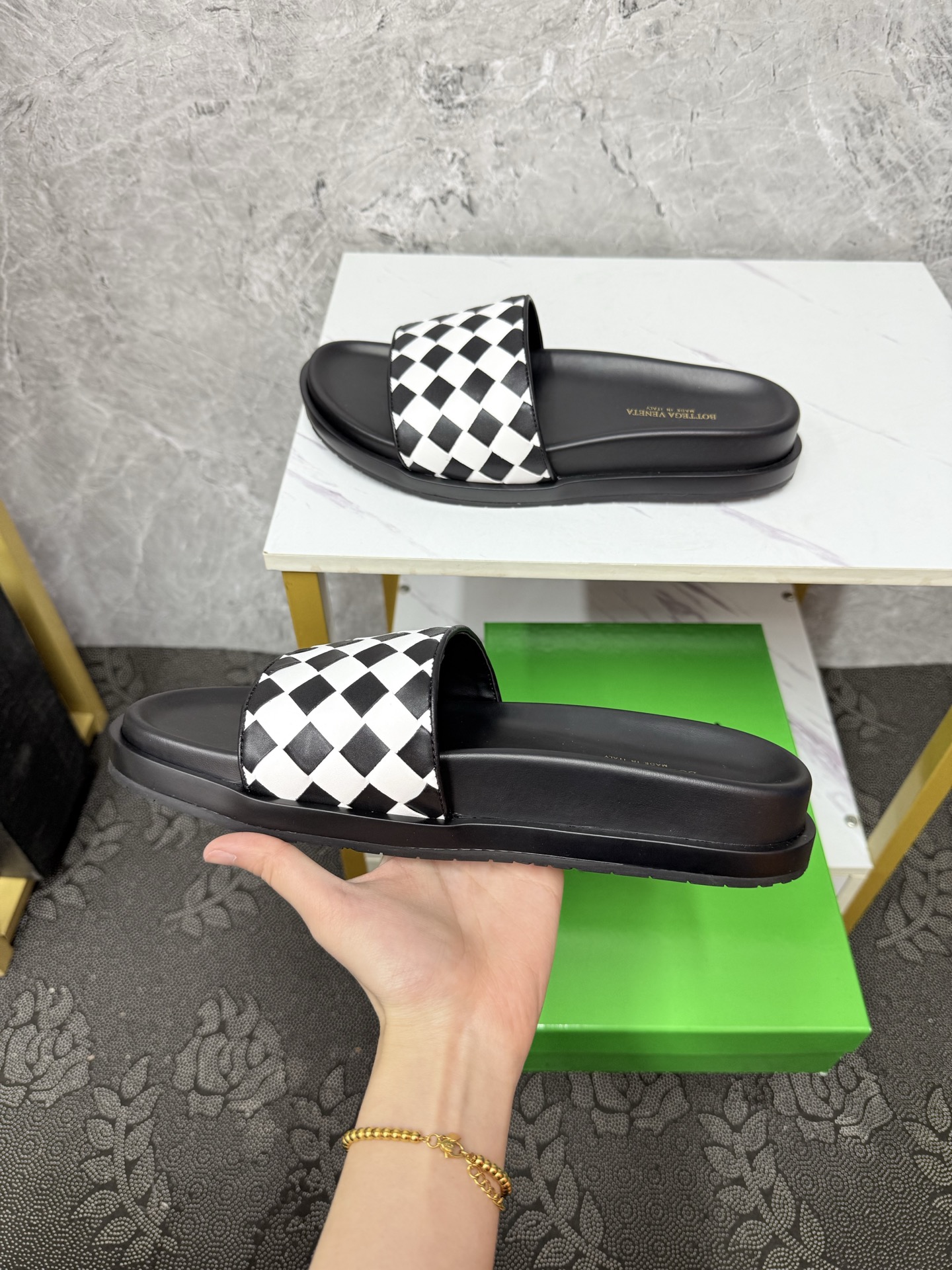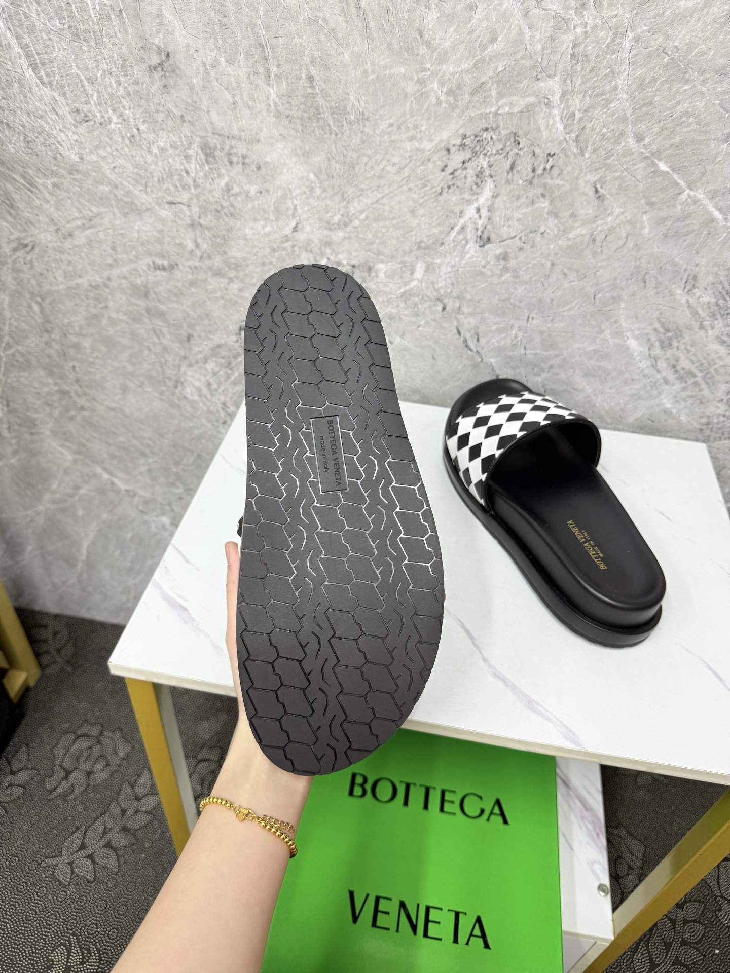 这款鞋子是AAAAA 1:1 质量 (非常棒). 使用了和原版一模一样的材料. 商标部分也保持了和葆蝶家/Bottega Veneta一样. 图片拍摄是实物鞋子拍摄, 您所收到的实物保证和我们图片一模一样.