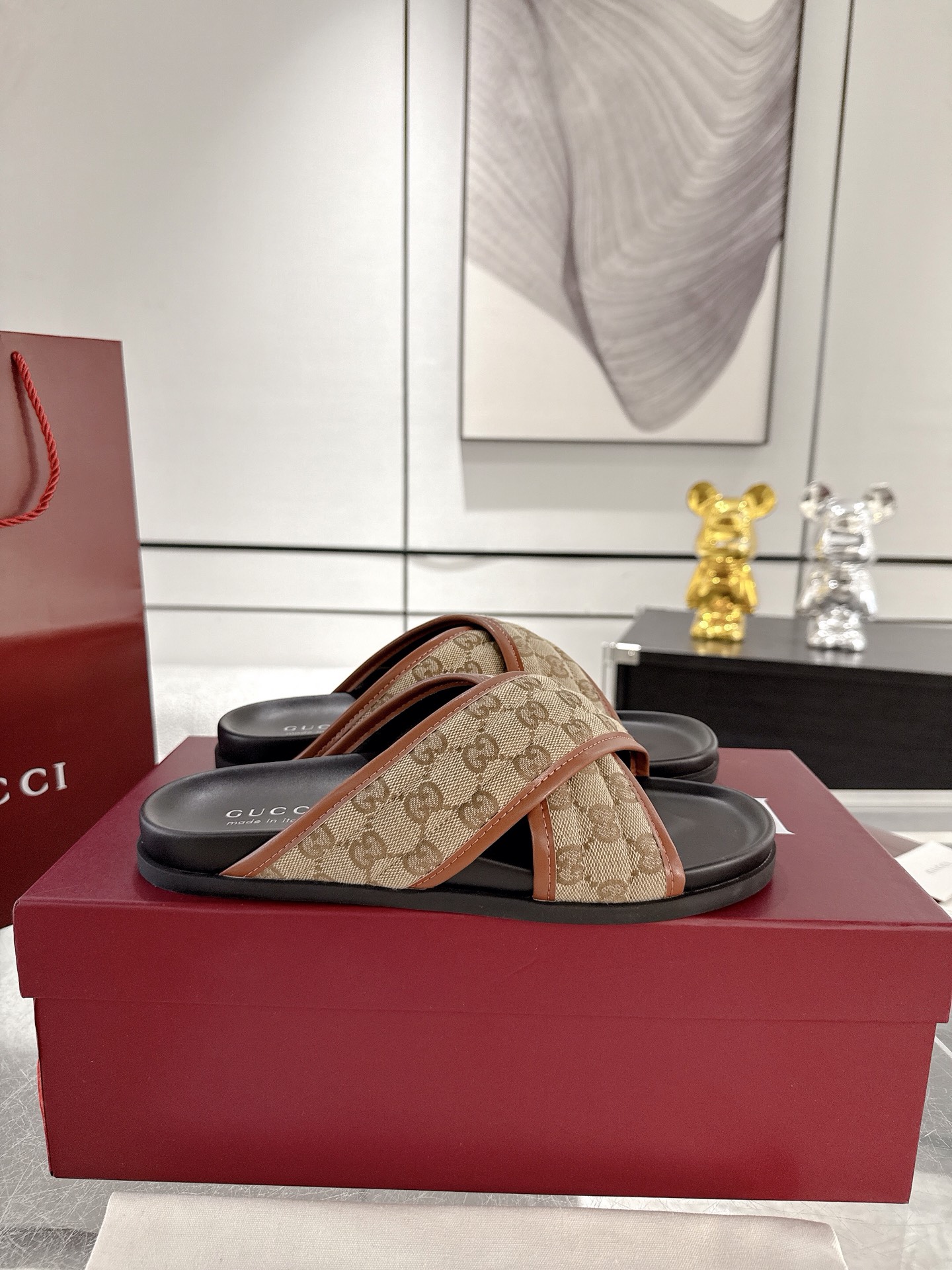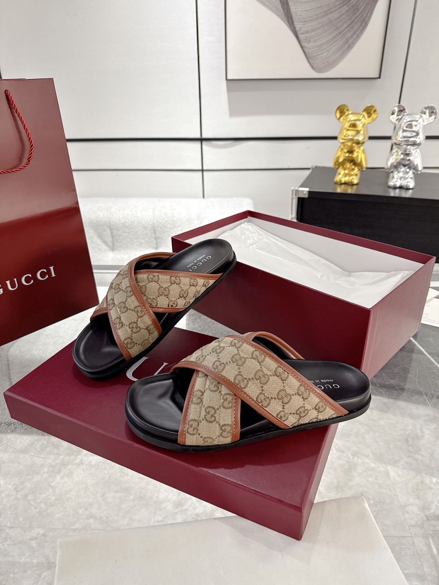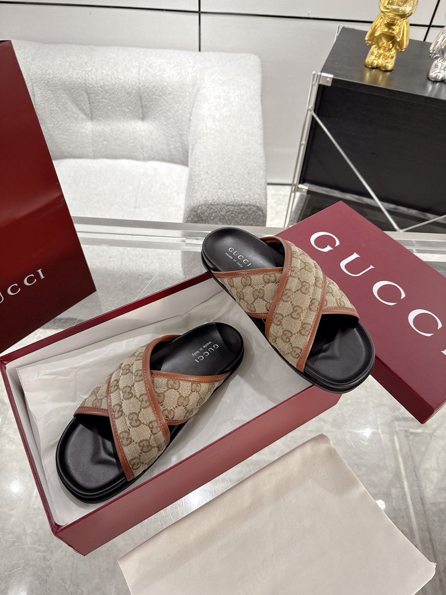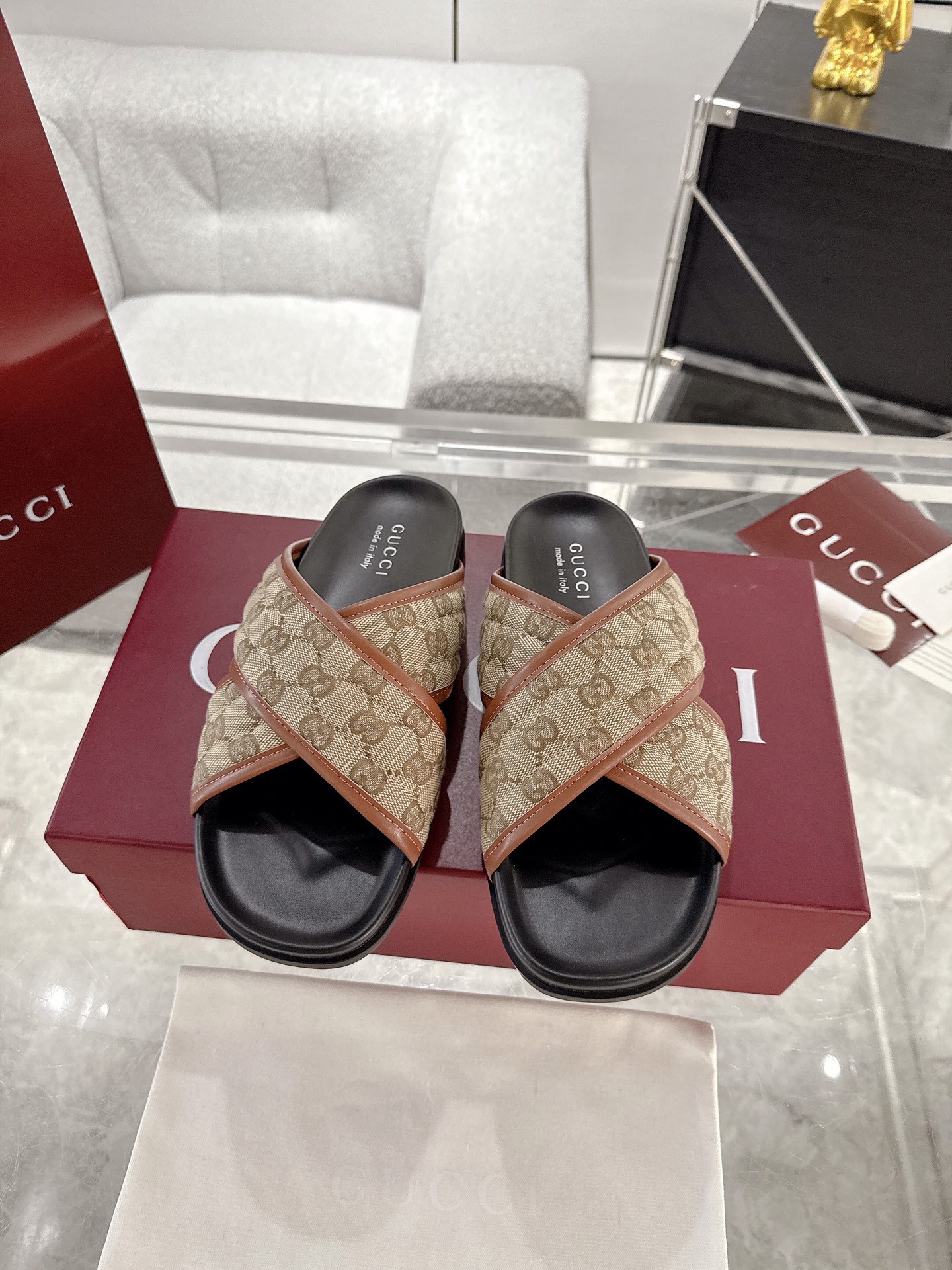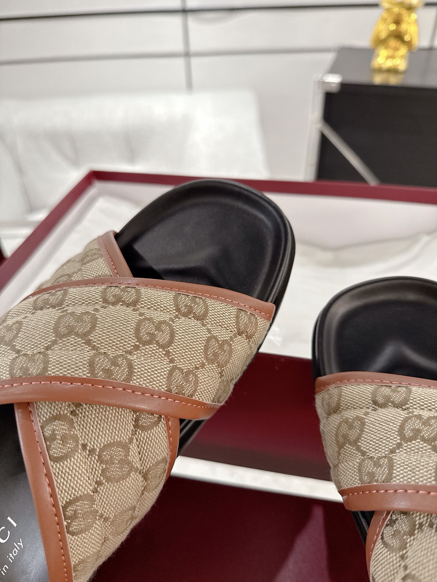 这款鞋子是AAAAA 1:1 质量 (非常棒). 使用了和原版一模一样的材料. 商标部分也保持了和古奇/Gucci一样. 图片拍摄是实物鞋子拍摄, 您所收到的实物保证和我们图片一模一样.