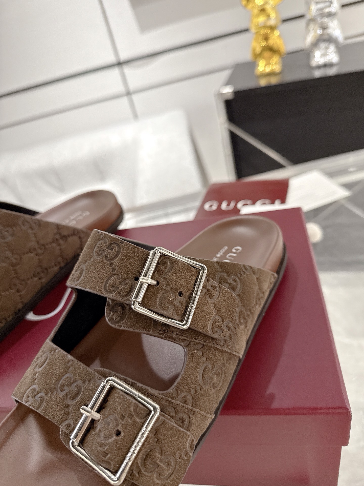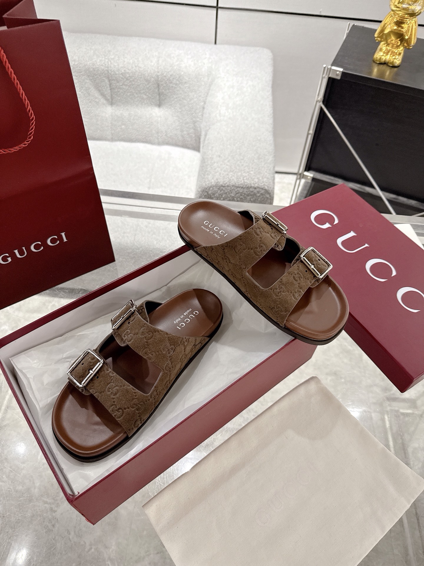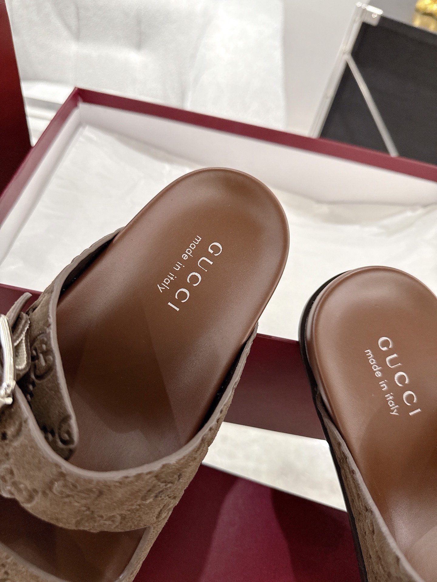 这款鞋子是AAAAA 1:1 质量 (非常棒). 使用了和原版一模一样的材料. 商标部分也保持了和古奇/Gucci一样. 图片拍摄是实物鞋子拍摄, 您所收到的实物保证和我们图片一模一样.
