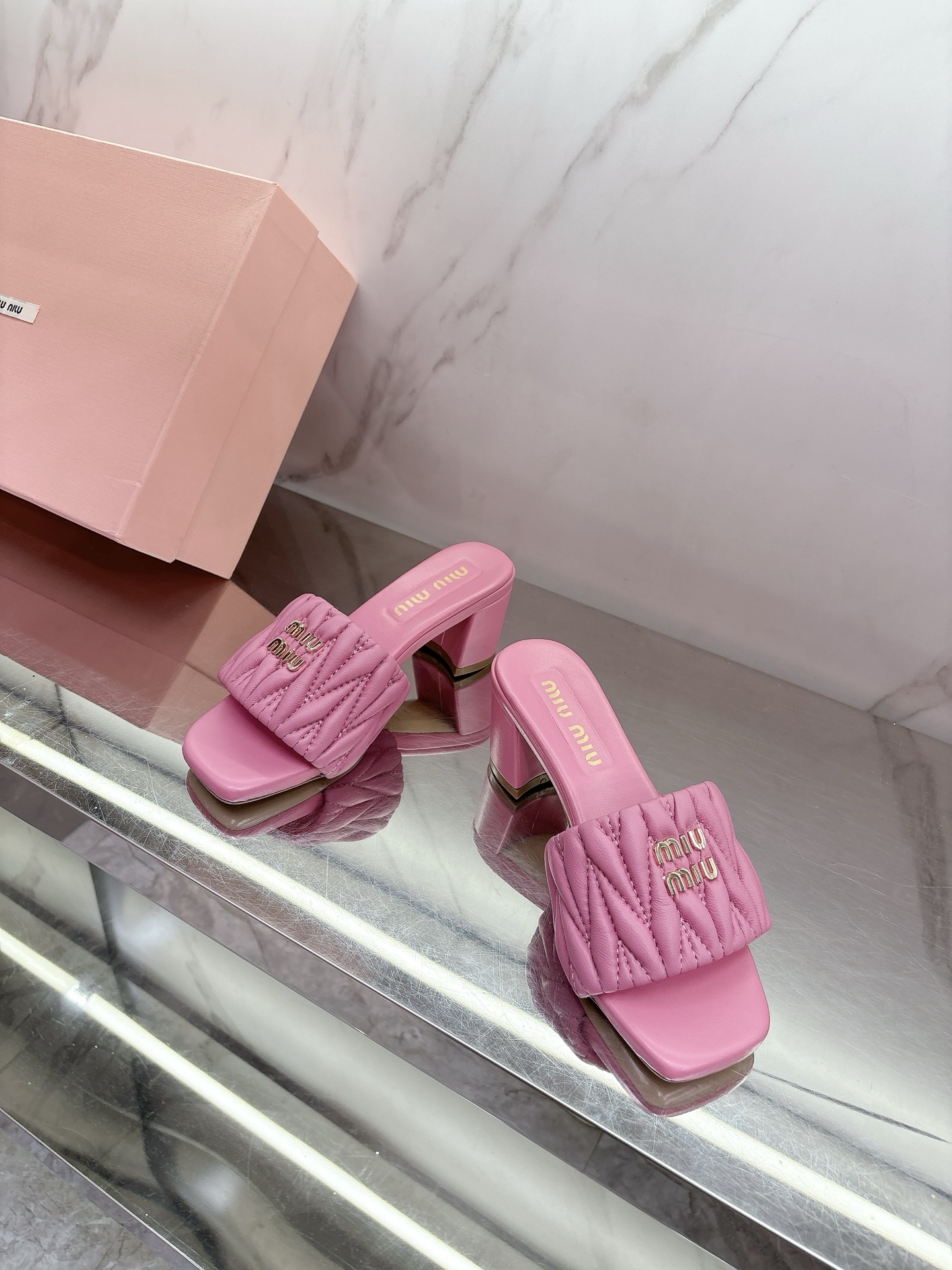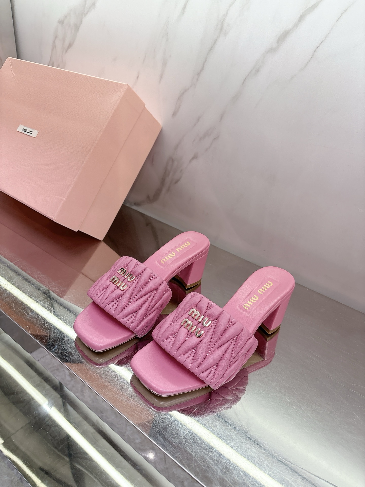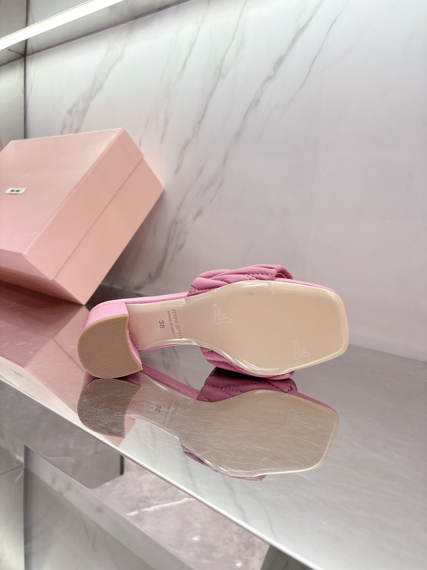 这款鞋子是AAAAA 1:1 质量 (非常棒). 使用了和原版一模一样的材料. 商标部分也保持了和缪缪/Miu Miu一样. 图片拍摄是实物鞋子拍摄, 您所收到的实物保证和我们图片一模一样.