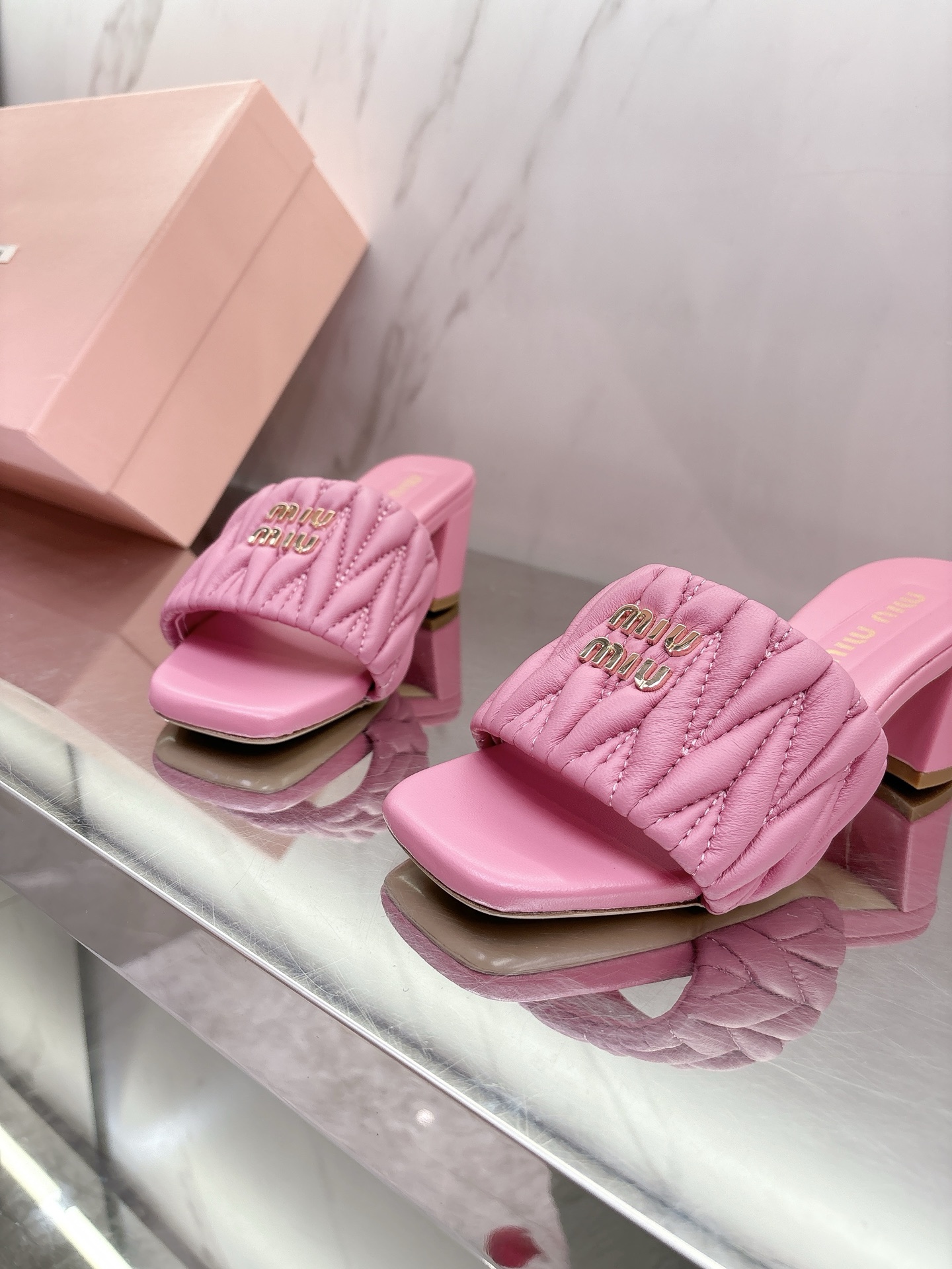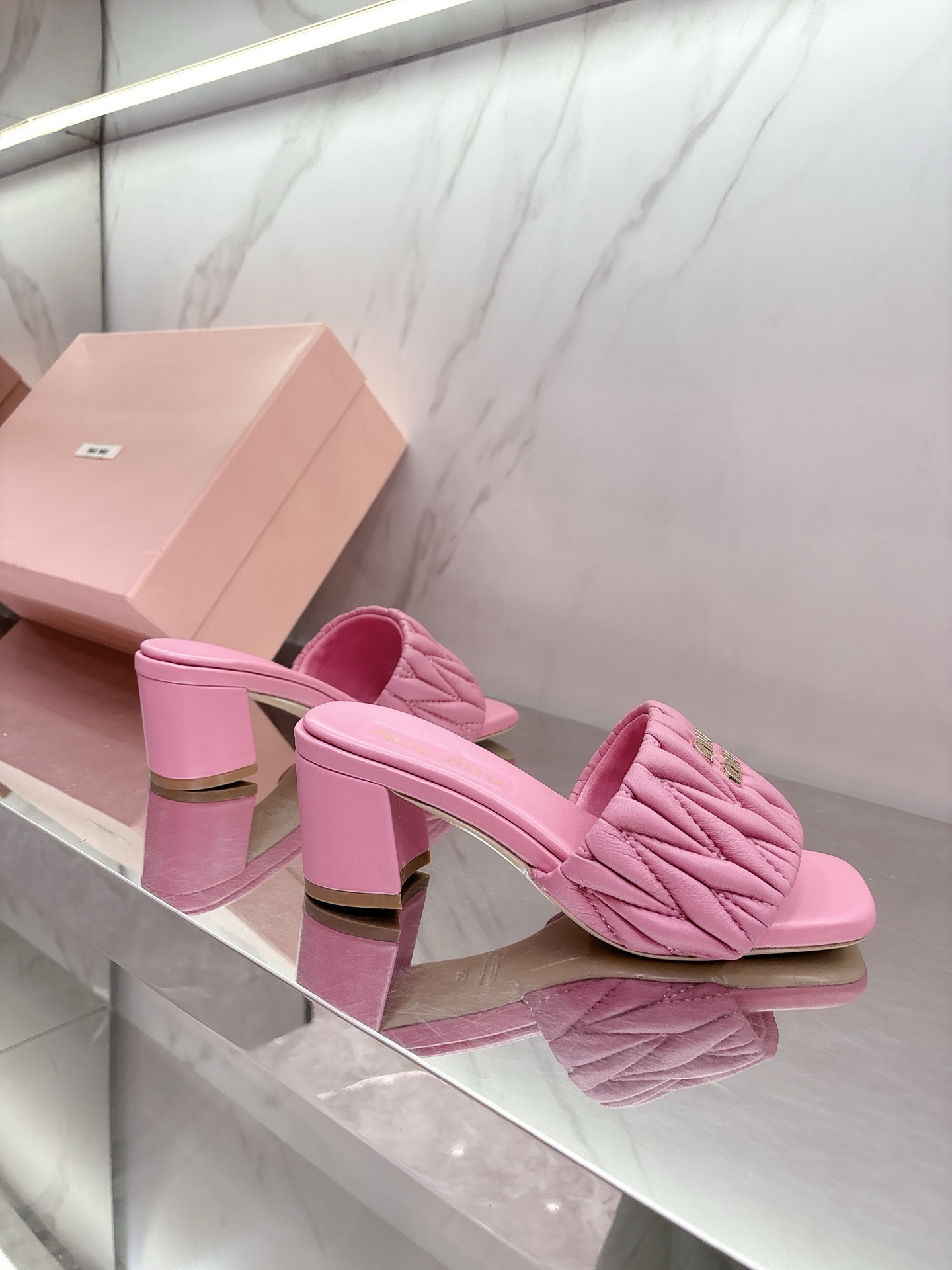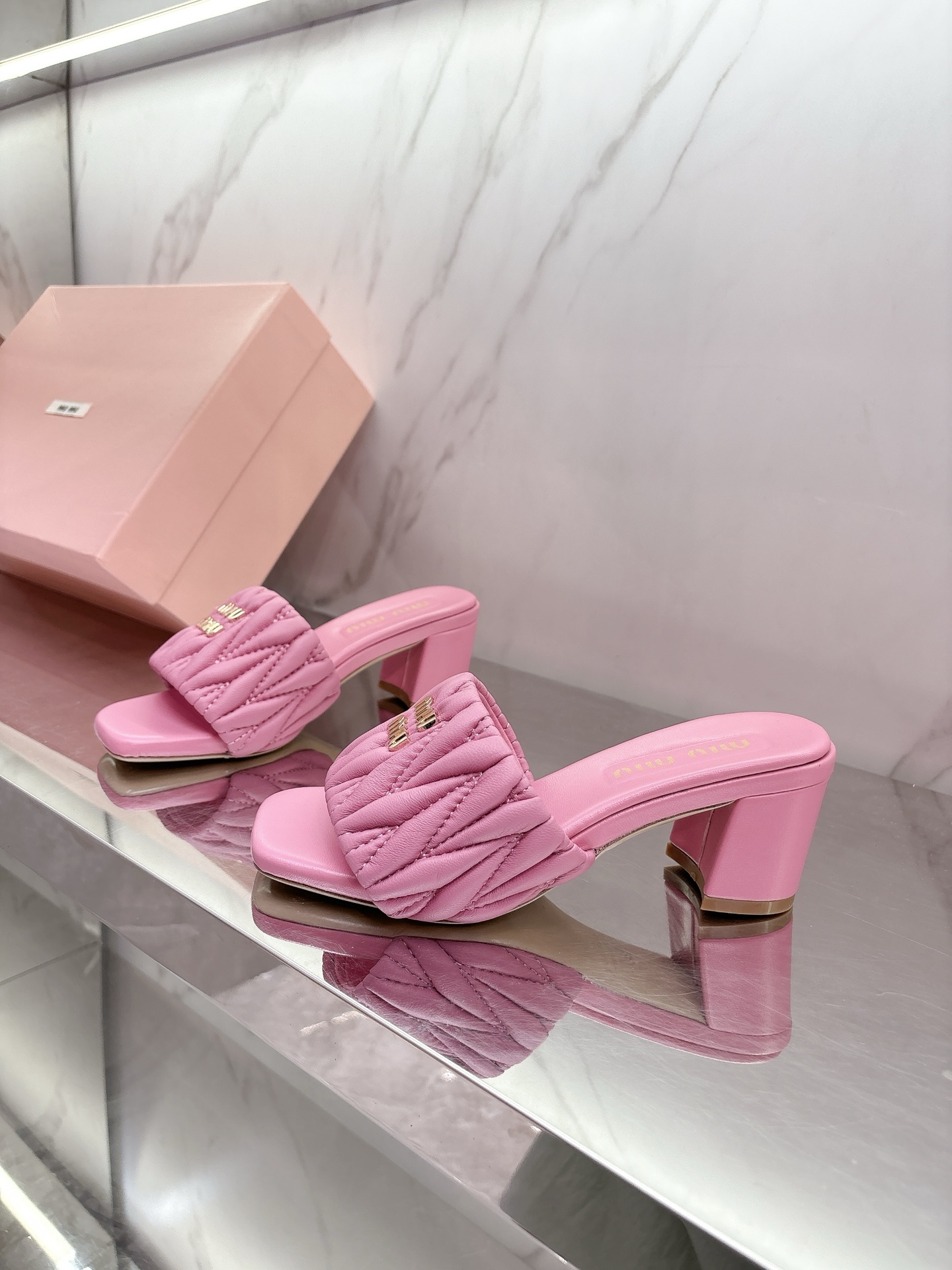 这款鞋子是AAAAA 1:1 质量 (非常棒). 使用了和原版一模一样的材料. 商标部分也保持了和缪缪/Miu Miu一样. 图片拍摄是实物鞋子拍摄, 您所收到的实物保证和我们图片一模一样.