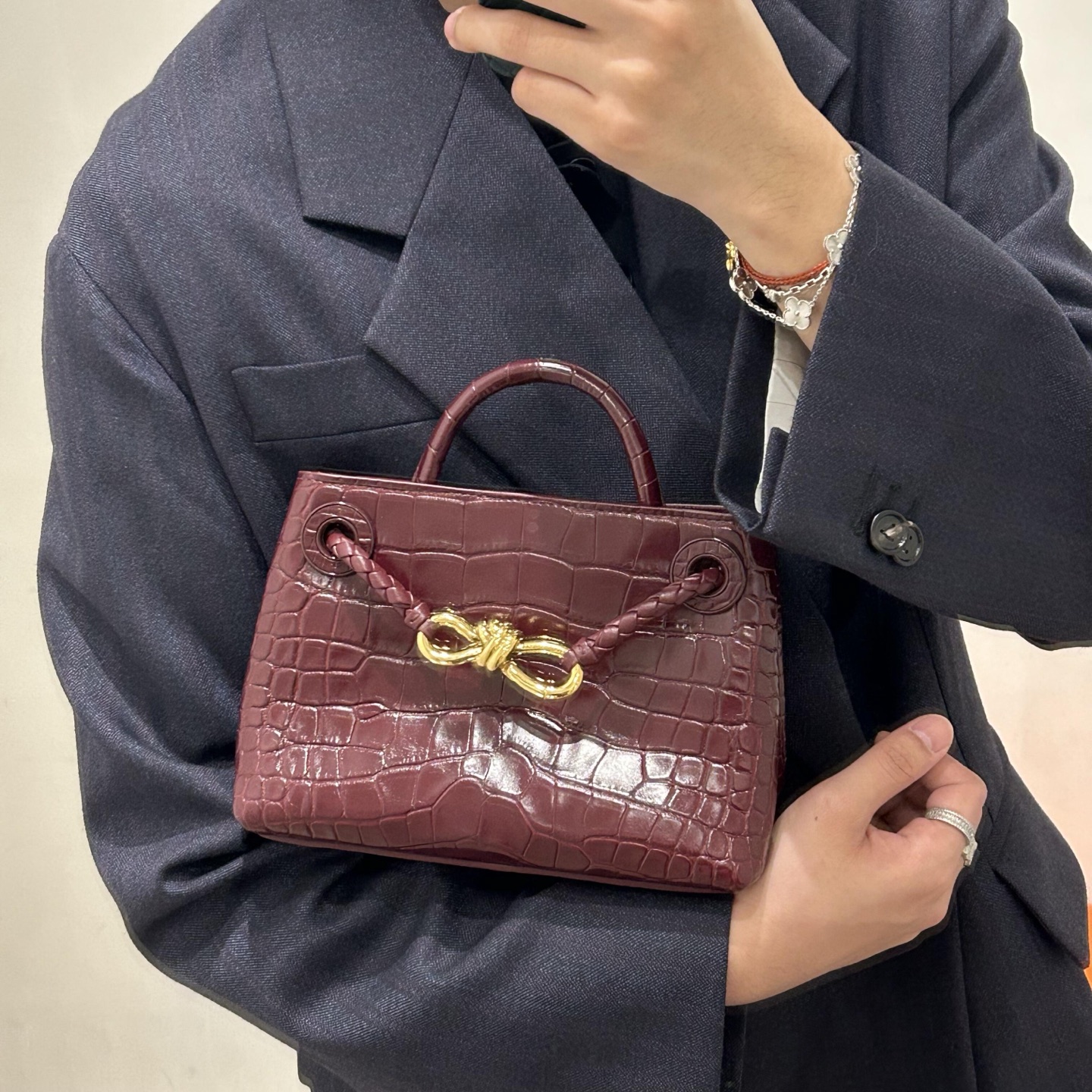 这款包包是AAAAA 1:1 质量 (非常棒). 使用了和原版一模一样的材料. 商标部分也保持了和葆蝶家/Bottega Veneta一样. 图片拍摄是实物包包拍摄, 您所收到的实物保证和我们图片一模一样.