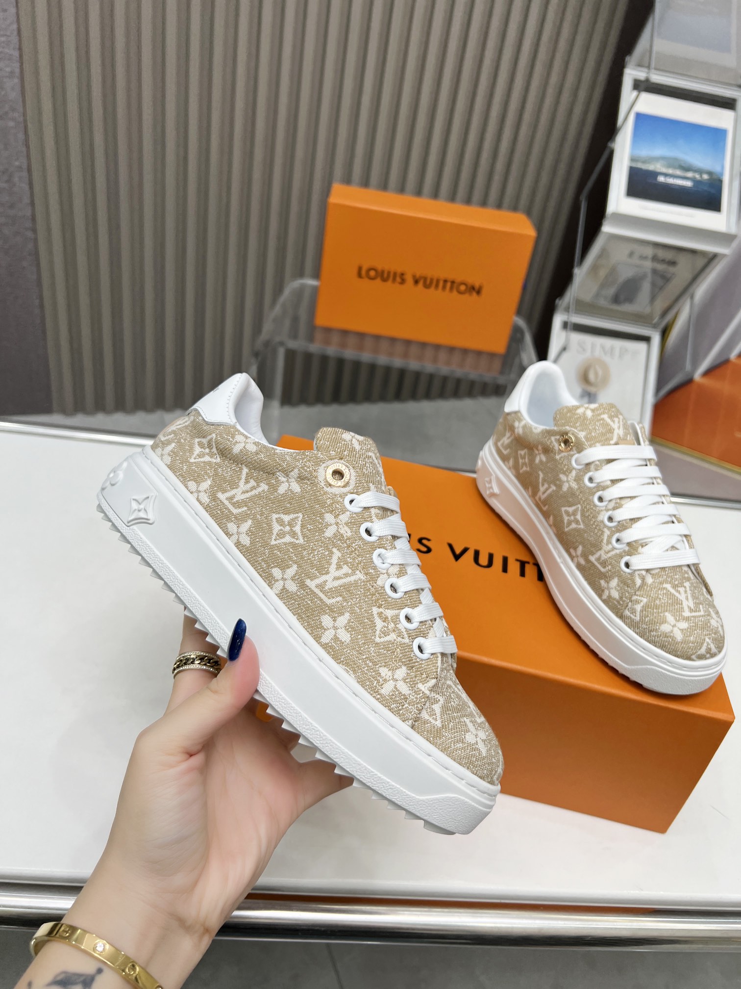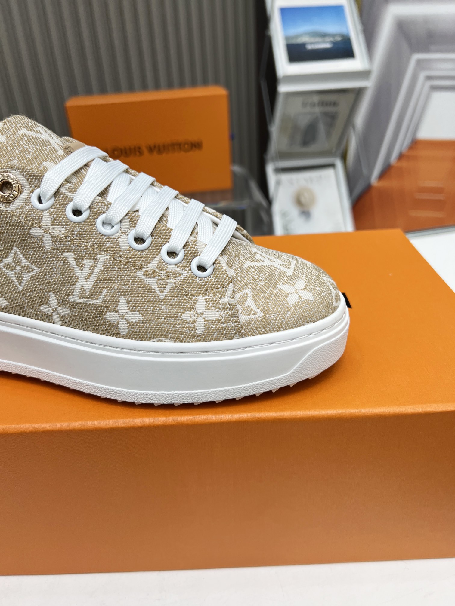 这款鞋子是AAAAA 1:1 质量 (非常棒). 使用了和原版一模一样的材料. 商标部分也保持了和路易威登/Louis Vuitton一样. 图片拍摄是实物鞋子拍摄, 您所收到的实物保证和我们图片一模一样.