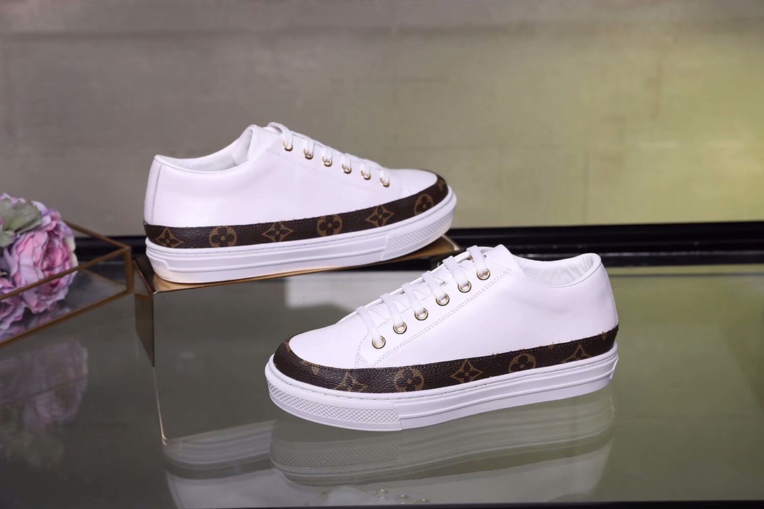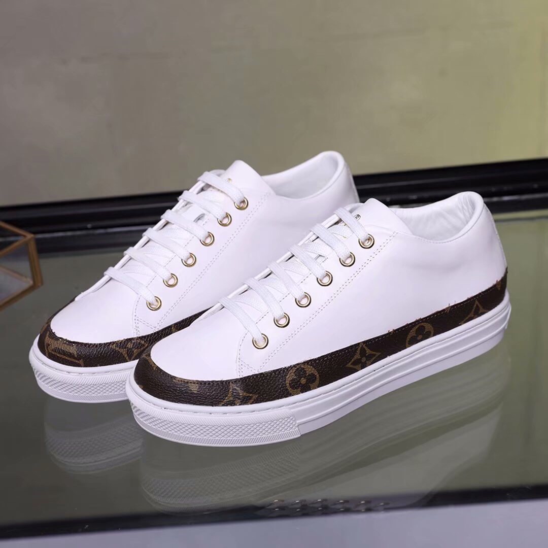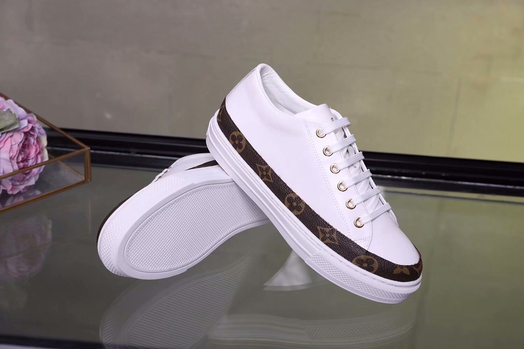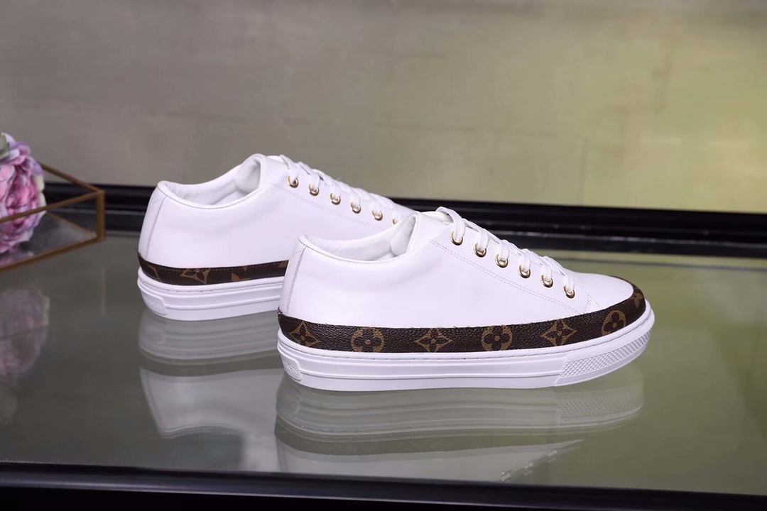 这款鞋子是AAAAA 1:1 质量 (非常棒). 使用了和原版一模一样的材料. 商标部分也保持了和路易威登/Louis Vuitton一样. 图片拍摄是实物鞋子拍摄, 您所收到的实物保证和我们图片一模一样.