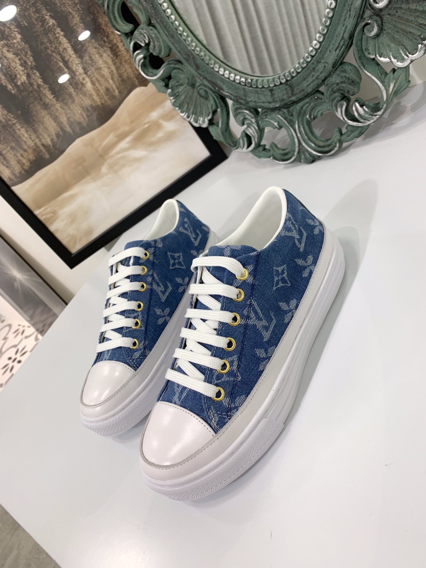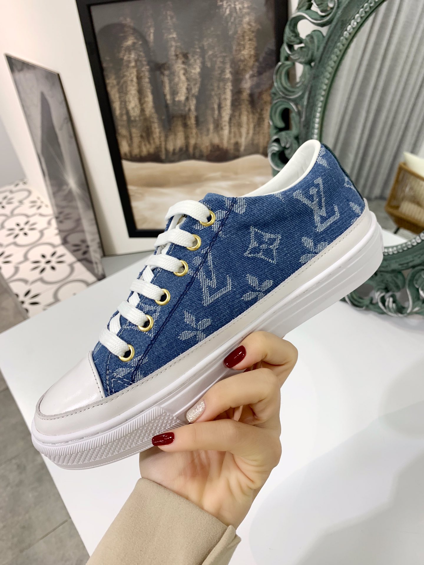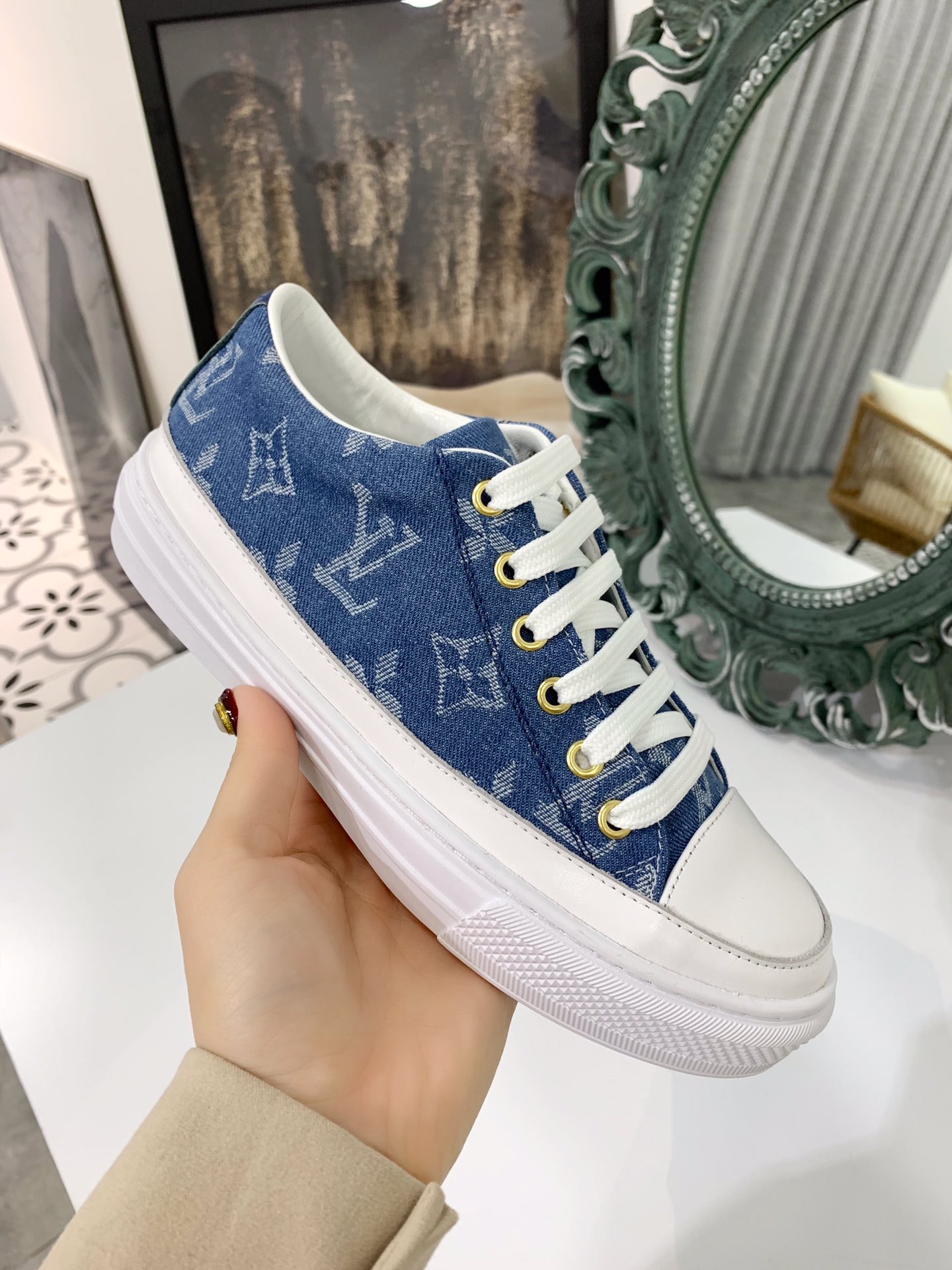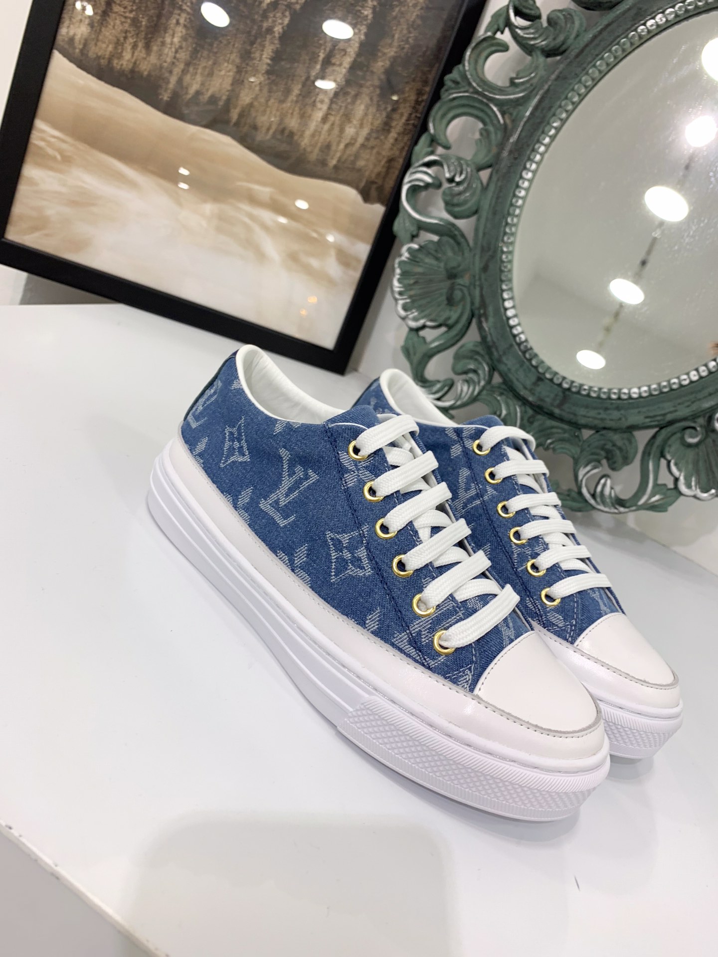 这款鞋子是AAAAA 1:1 质量 (非常棒). 使用了和原版一模一样的材料. 商标部分也保持了和路易威登/Louis Vuitton一样. 图片拍摄是实物鞋子拍摄, 您所收到的实物保证和我们图片一模一样.