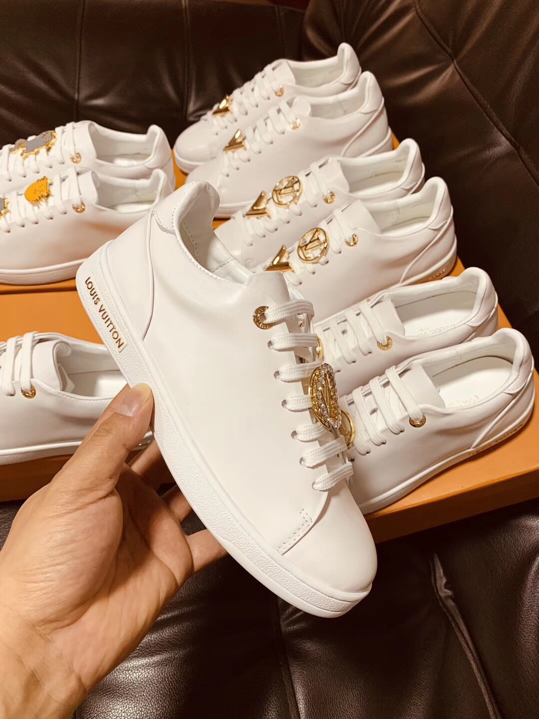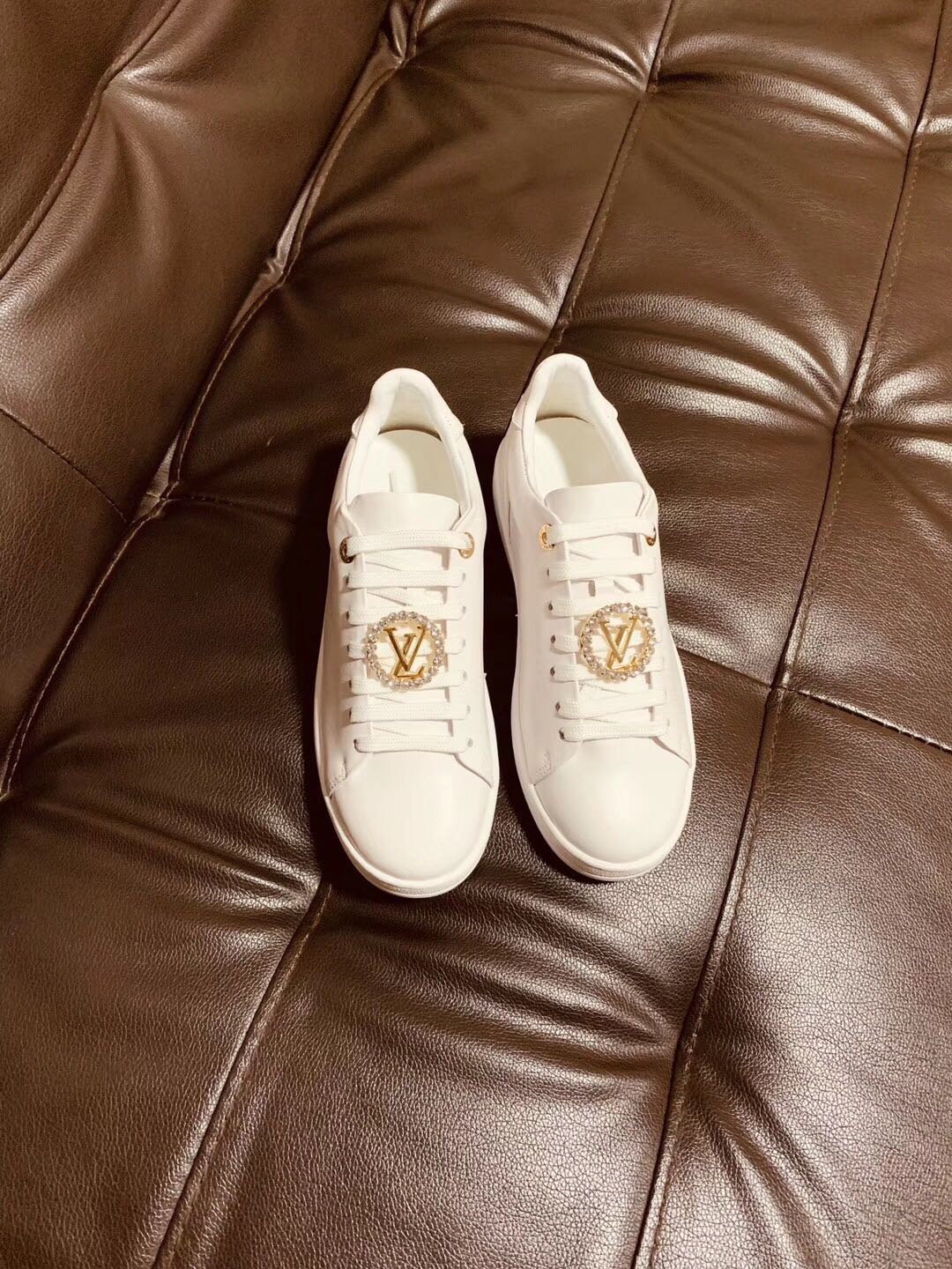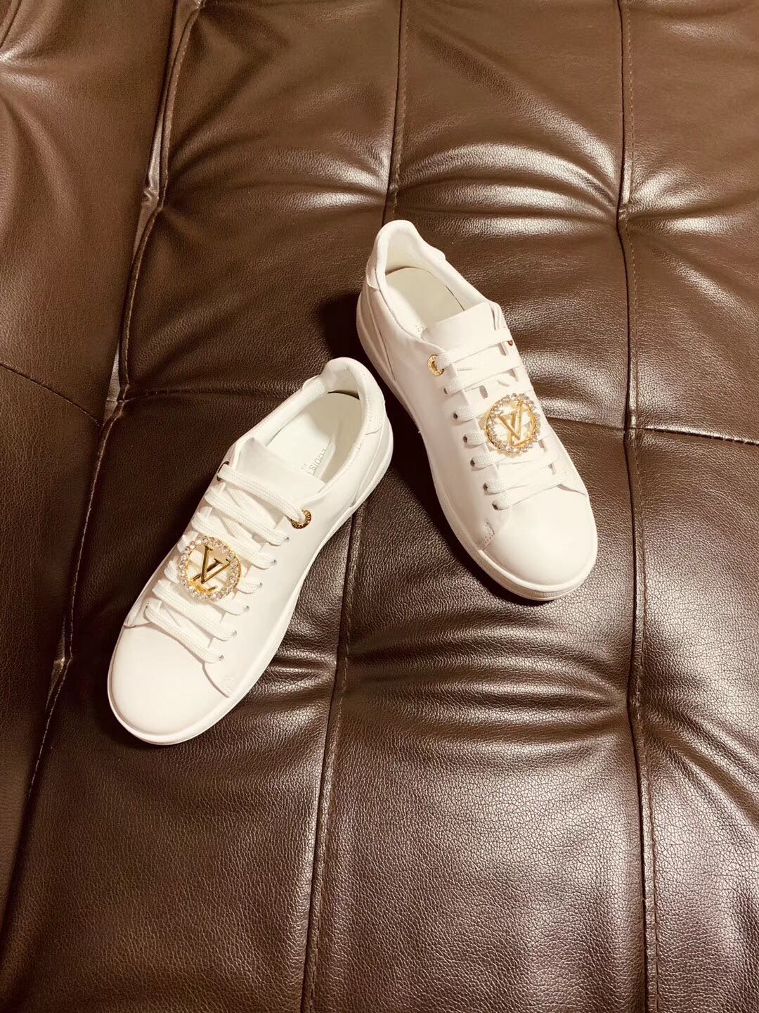 这款鞋子是AAAAA 1:1 质量 (非常棒). 使用了和原版一模一样的材料. 商标部分也保持了和路易威登/Louis Vuitton一样. 图片拍摄是实物鞋子拍摄, 您所收到的实物保证和我们图片一模一样.