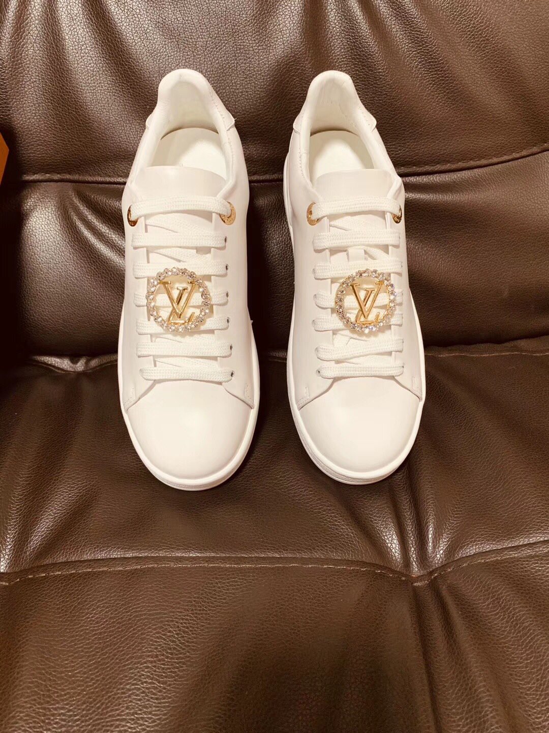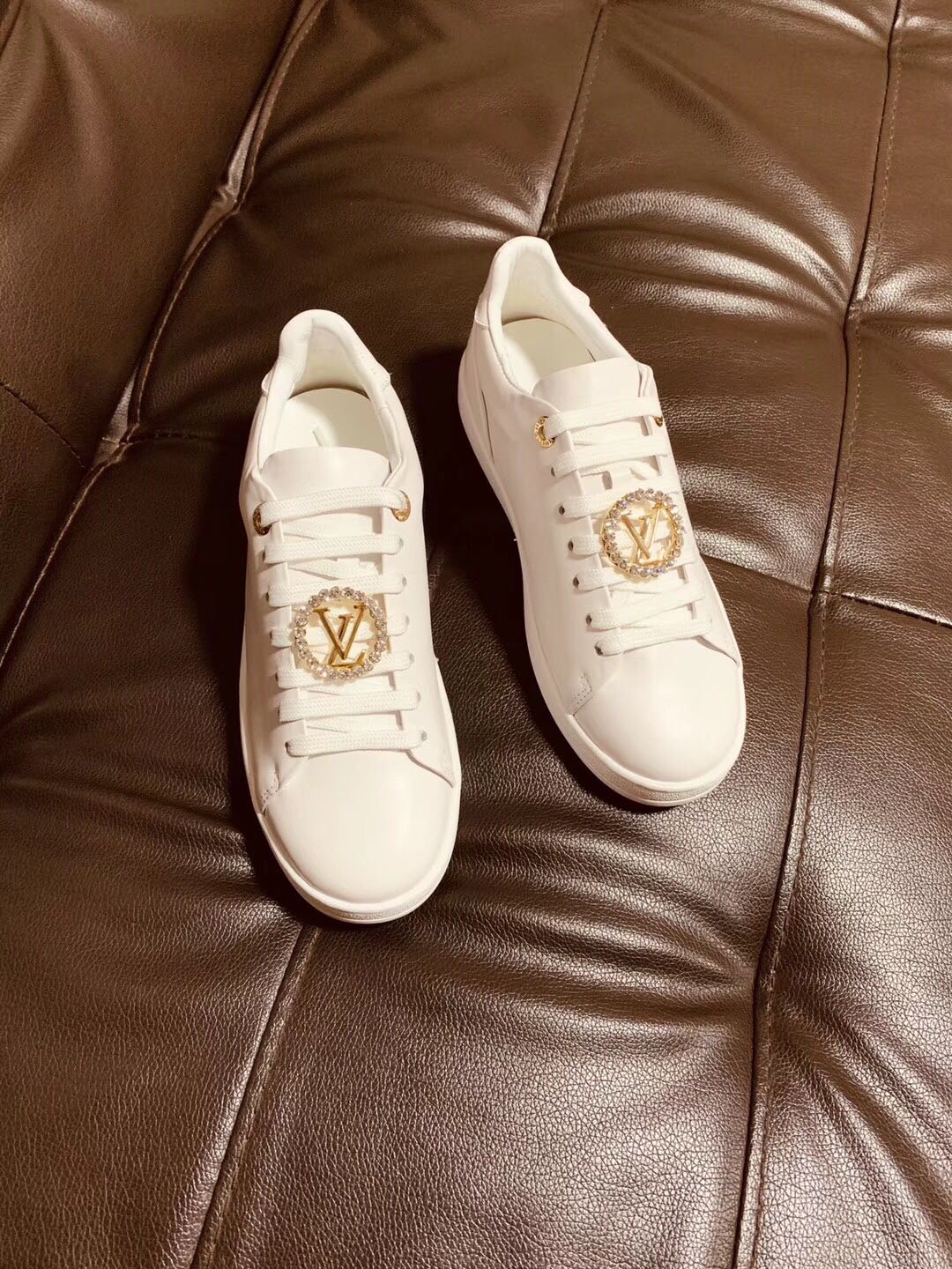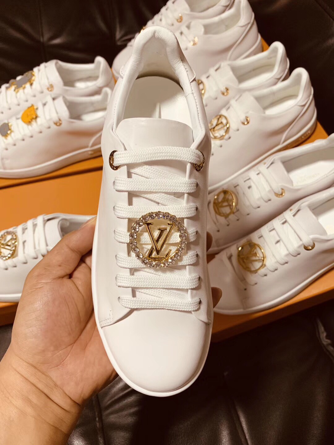 这款鞋子是AAAAA 1:1 质量 (非常棒). 使用了和原版一模一样的材料. 商标部分也保持了和路易威登/Louis Vuitton一样. 图片拍摄是实物鞋子拍摄, 您所收到的实物保证和我们图片一模一样.
