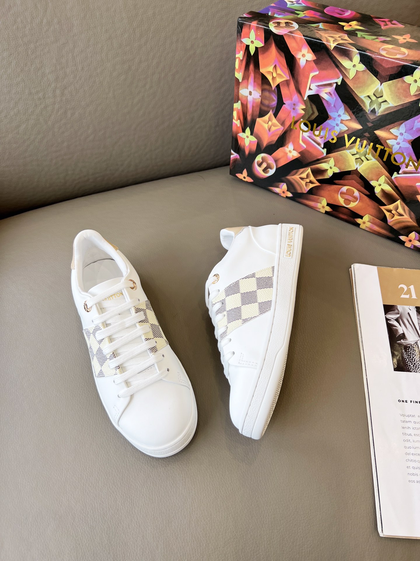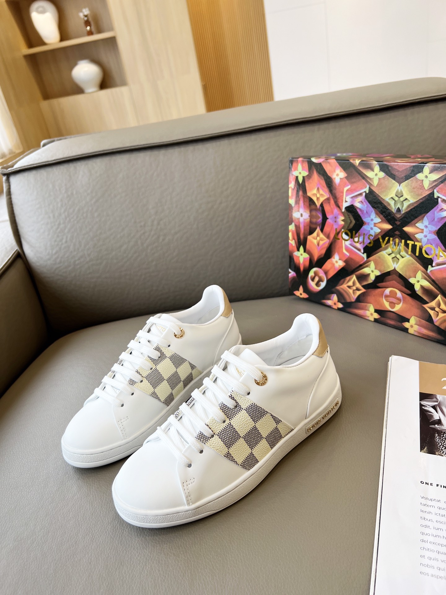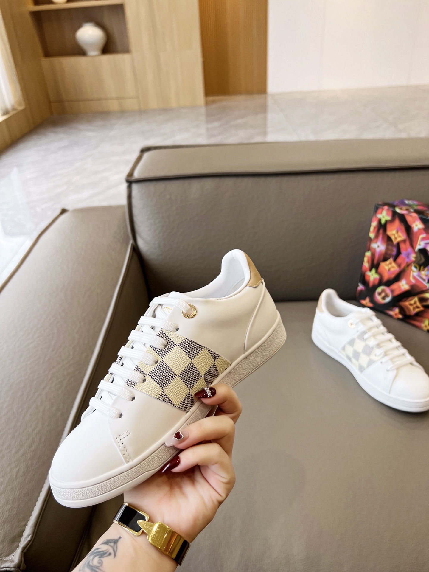 这款鞋子是AAAAA 1:1 质量 (非常棒). 使用了和原版一模一样的材料. 商标部分也保持了和路易威登/Louis Vuitton一样. 图片拍摄是实物鞋子拍摄, 您所收到的实物保证和我们图片一模一样.