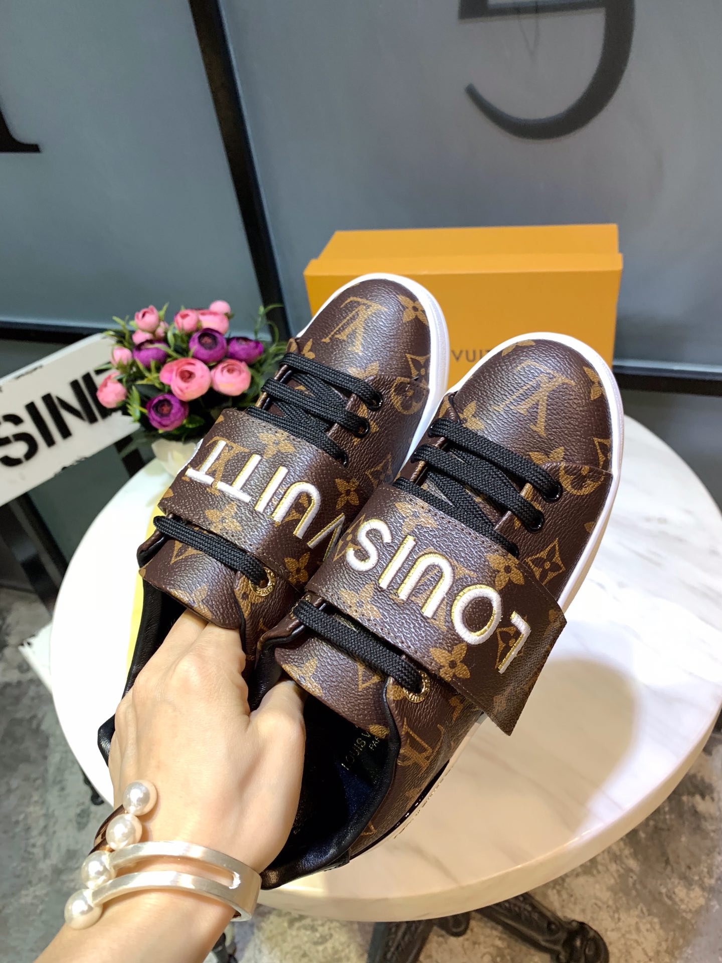 这款鞋子是AAAAA 1:1 质量 (非常棒). 使用了和原版一模一样的材料. 商标部分也保持了和路易威登/Louis Vuitton一样. 图片拍摄是实物鞋子拍摄, 您所收到的实物保证和我们图片一模一样.