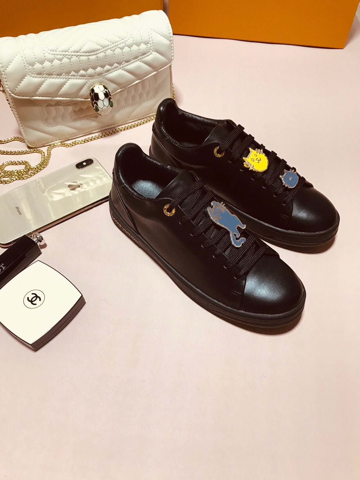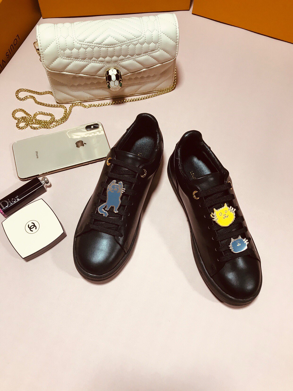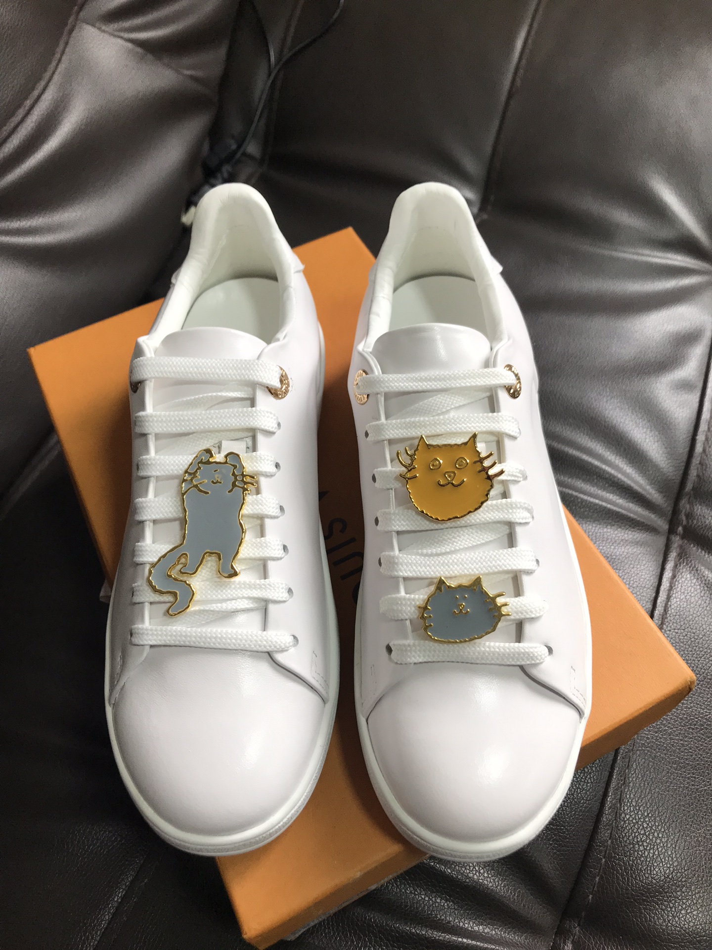 这款鞋子是AAAAA 1:1 质量 (非常棒). 使用了和原版一模一样的材料. 商标部分也保持了和路易威登/Louis Vuitton一样. 图片拍摄是实物鞋子拍摄, 您所收到的实物保证和我们图片一模一样.