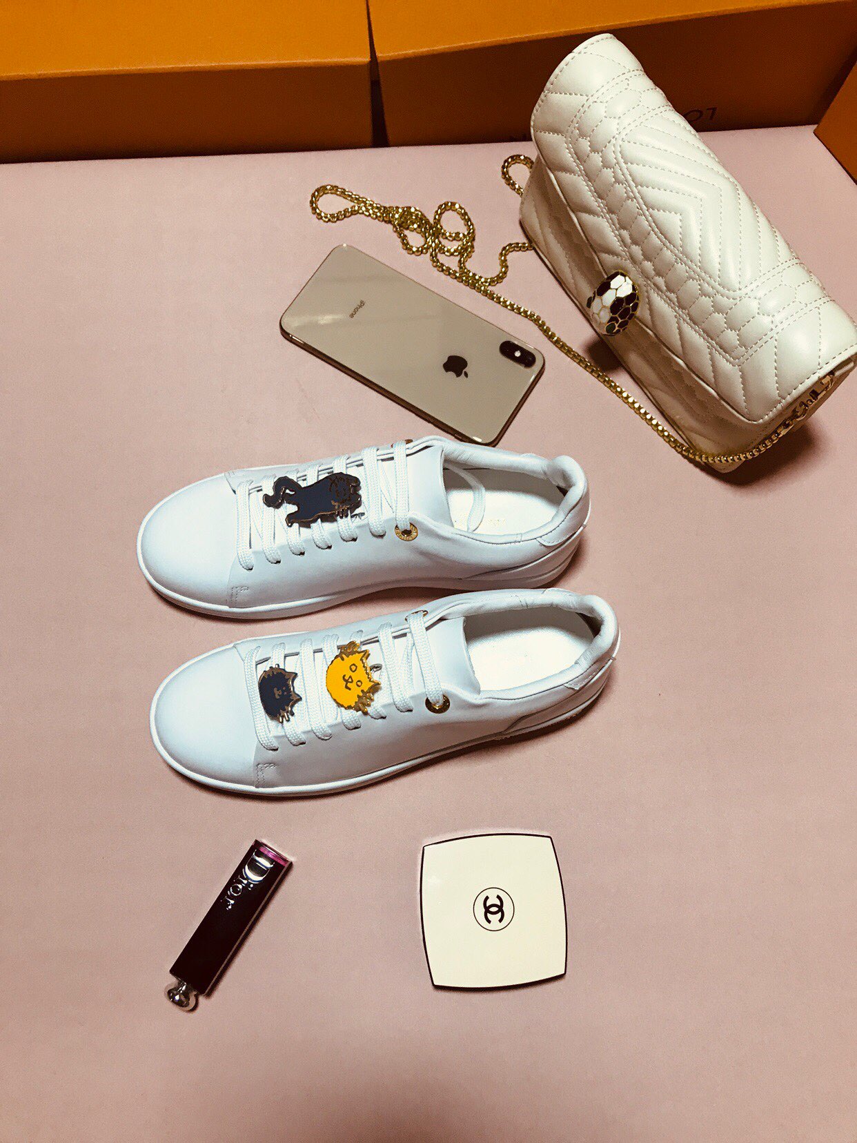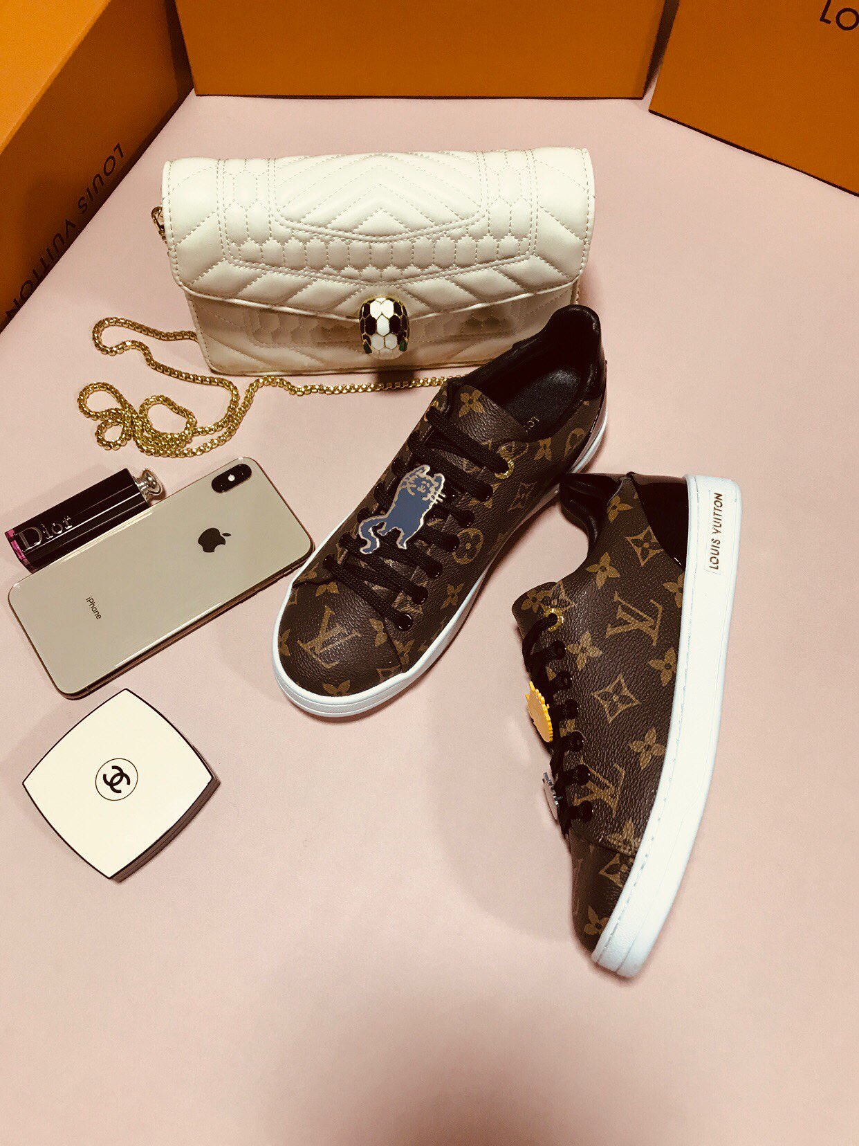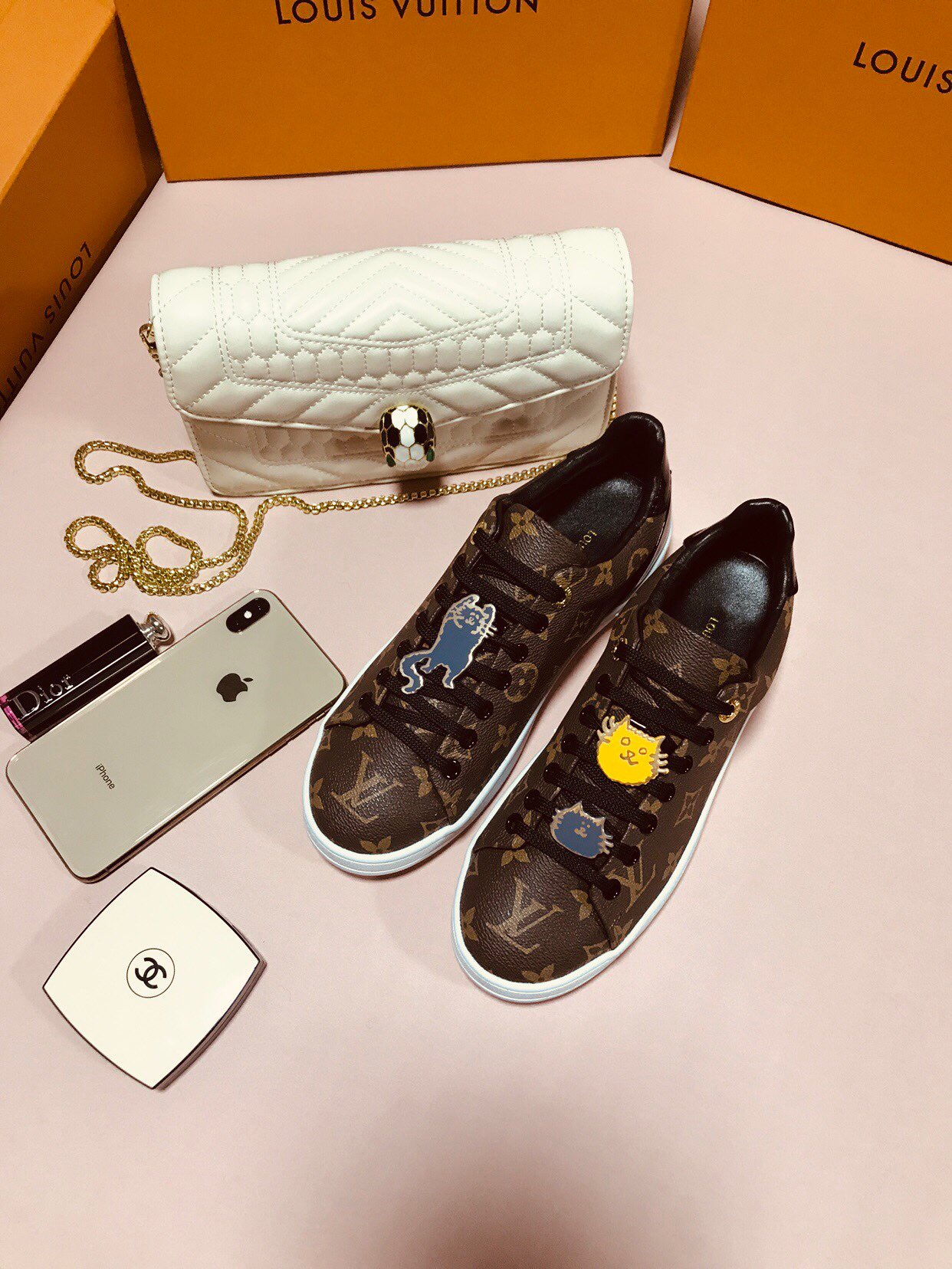 这款鞋子是AAAAA 1:1 质量 (非常棒). 使用了和原版一模一样的材料. 商标部分也保持了和路易威登/Louis Vuitton一样. 图片拍摄是实物鞋子拍摄, 您所收到的实物保证和我们图片一模一样.