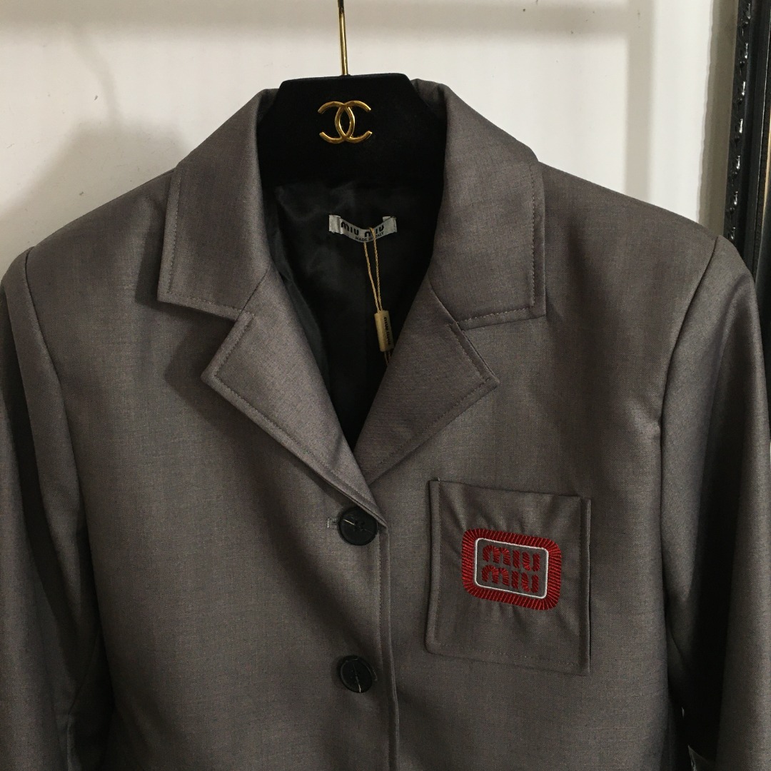 这款衣服是AAAAA 1:1 质量 (非常棒). 使用了和原版一模一样的材料. 商标部分也保持了和缪缪/Miu Miu一样. 图片拍摄是实物衣服拍摄, 您所收到的实物保证和我们图片一模一样.