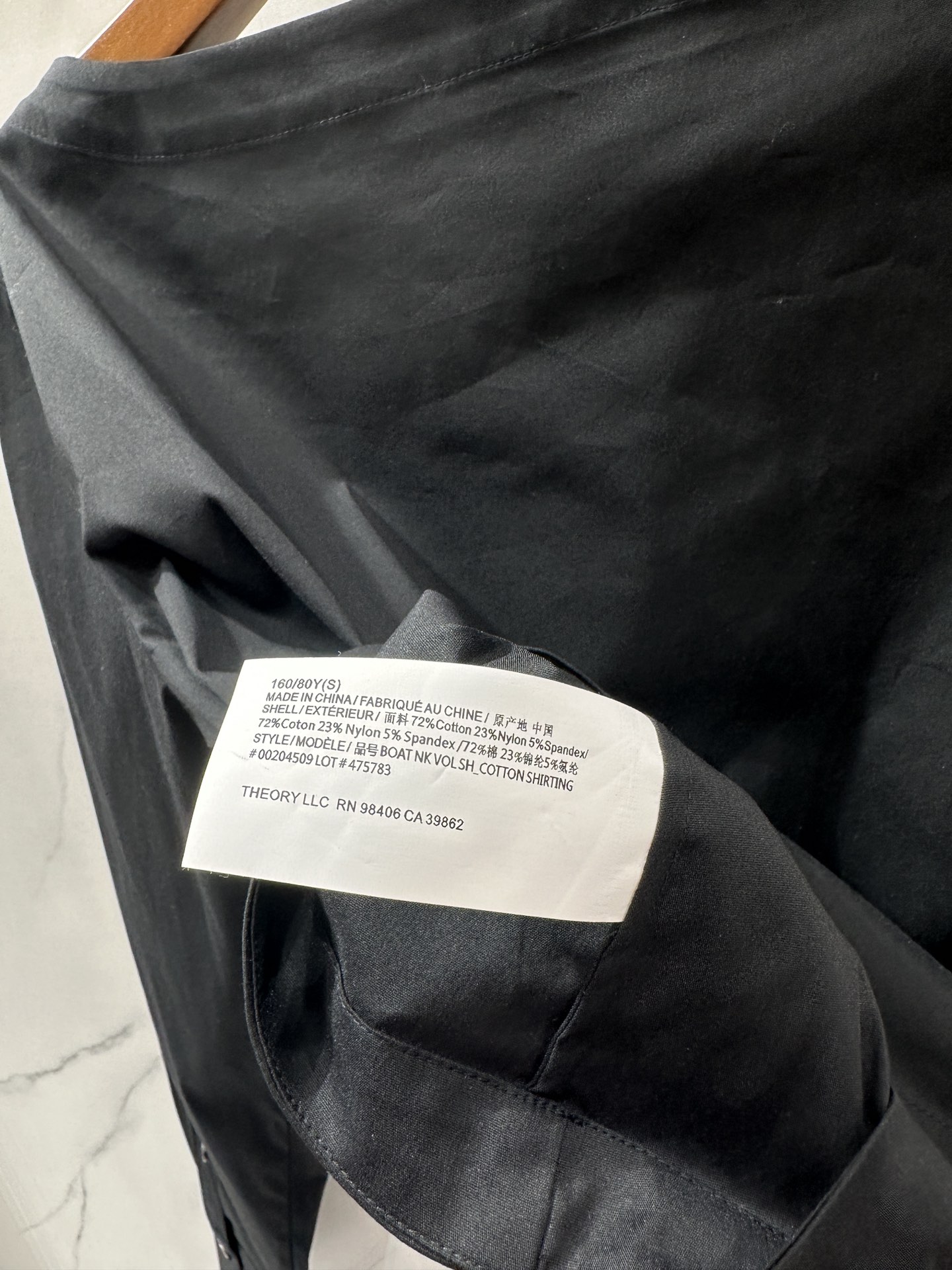 这款衣服是AAAAA 1:1 质量 (非常棒). 使用了和原版一模一样的材料. 商标部分也保持了和Theory一样. 图片拍摄是实物衣服拍摄, 您所收到的实物保证和我们图片一模一样.