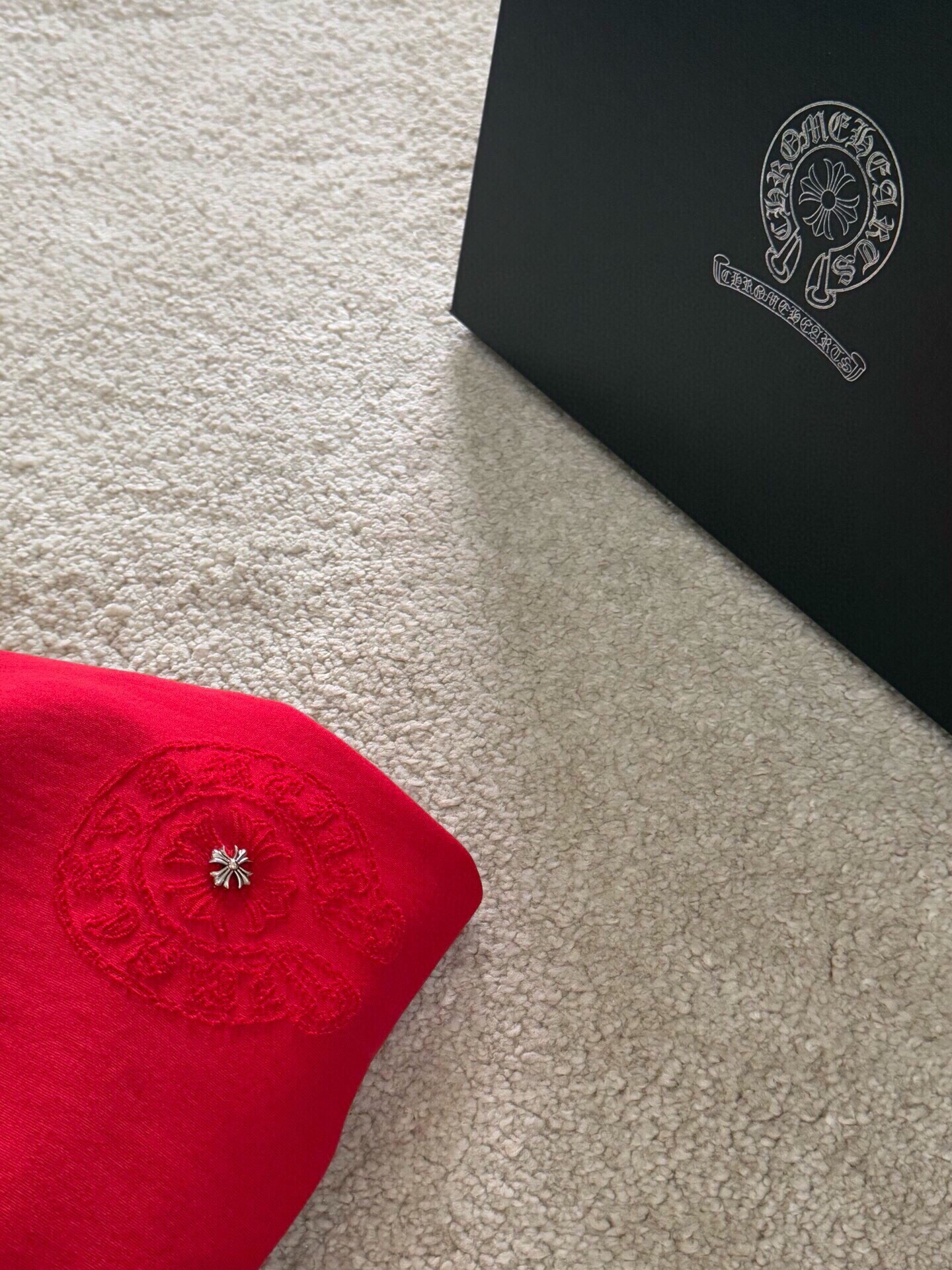 这款衣服是AAAAA 1:1 质量 (非常棒). 使用了和原版一模一样的材料. 商标部分也保持了和克罗心/Chrome Hearts一样. 图片拍摄是实物衣服拍摄, 您所收到的实物保证和我们图片一模一样.