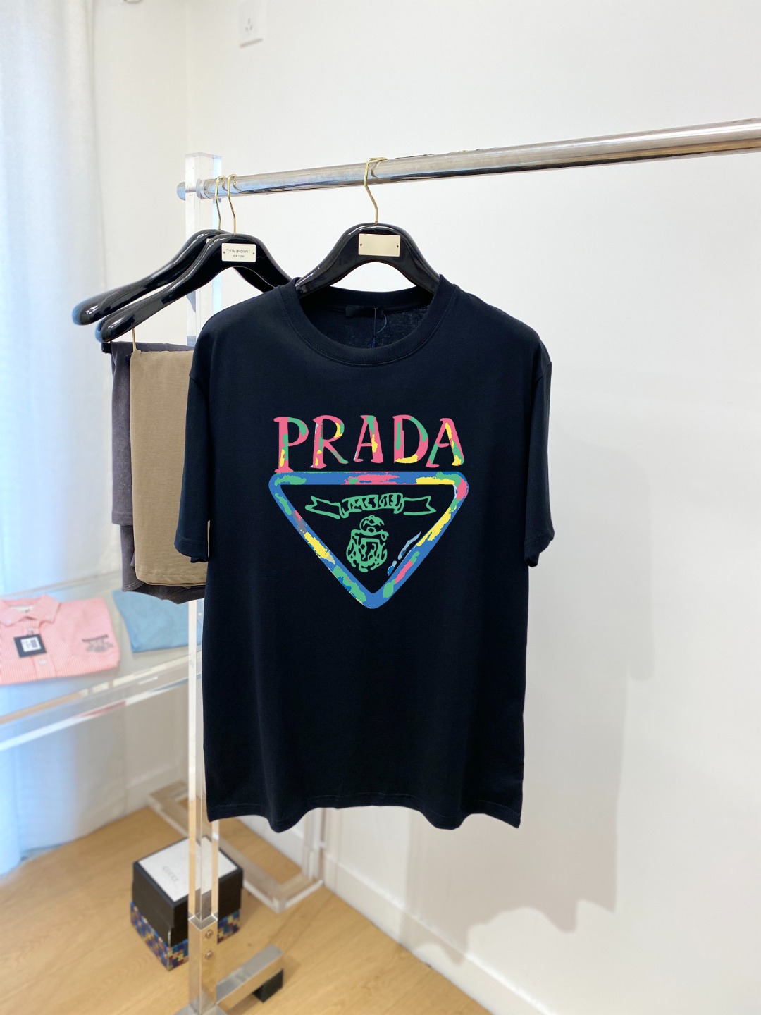 这款衣服是AAAAA 1:1 质量 (非常棒). 使用了和原版一模一样的材料. 商标部分也保持了和普拉达/Prada一样. 图片拍摄是实物衣服拍摄, 您所收到的实物保证和我们图片一模一样.