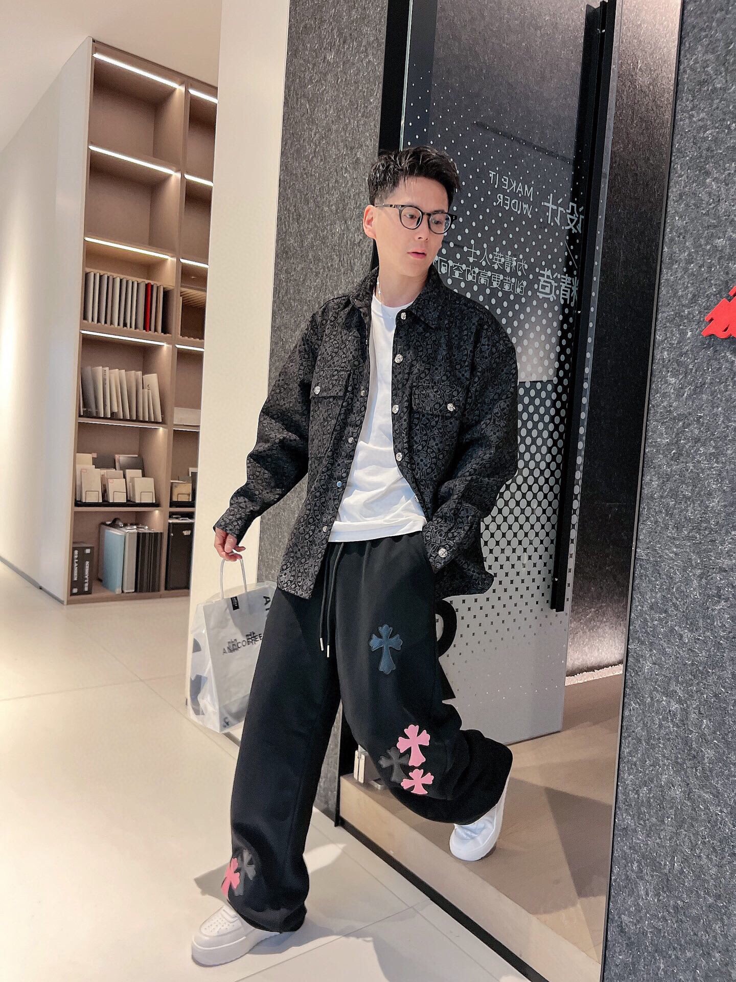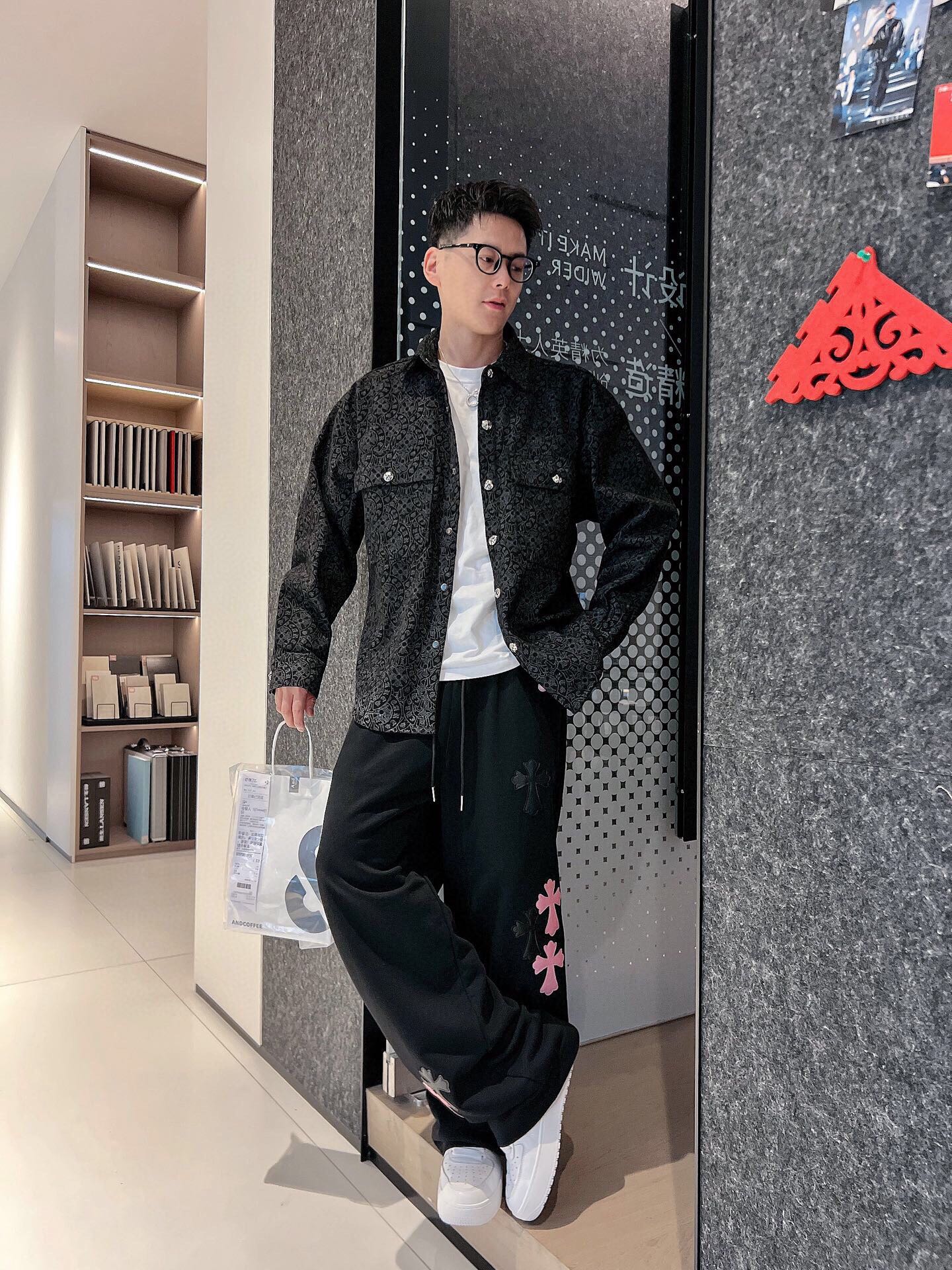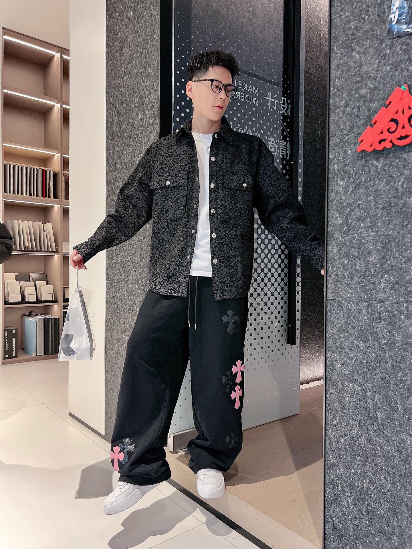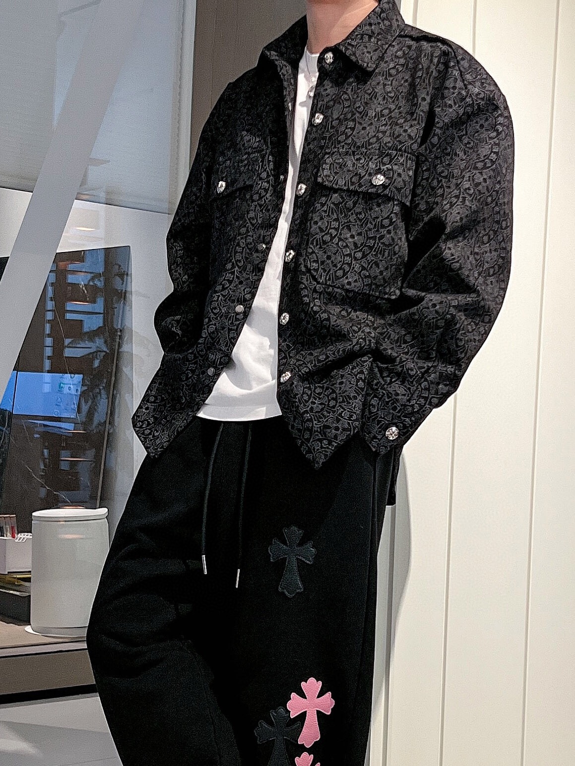 这款衣服是AAAAA 1:1 质量 (非常棒). 使用了和原版一模一样的材料. 商标部分也保持了和克罗心/Chrome Hearts一样. 图片拍摄是实物衣服拍摄, 您所收到的实物保证和我们图片一模一样.