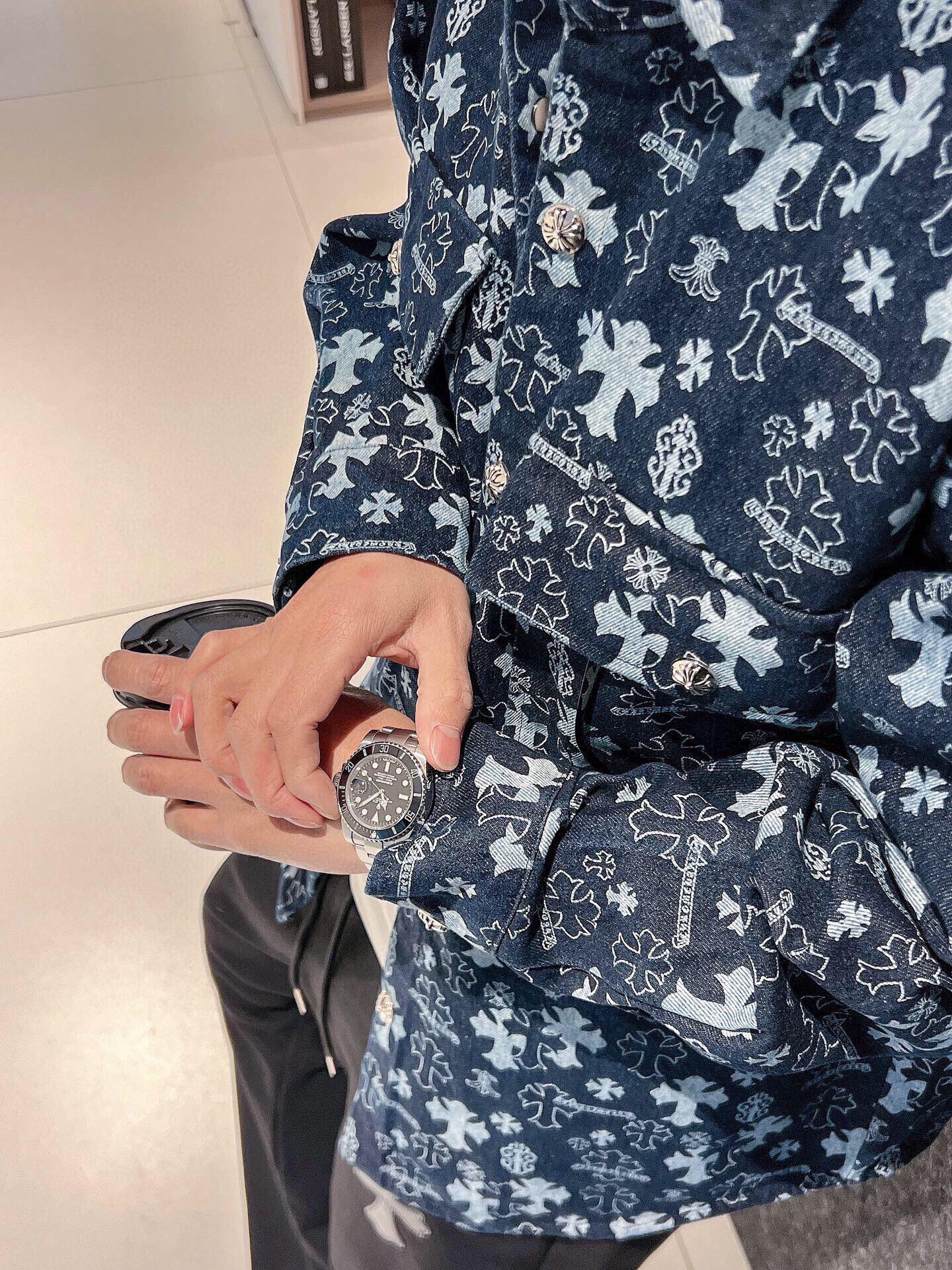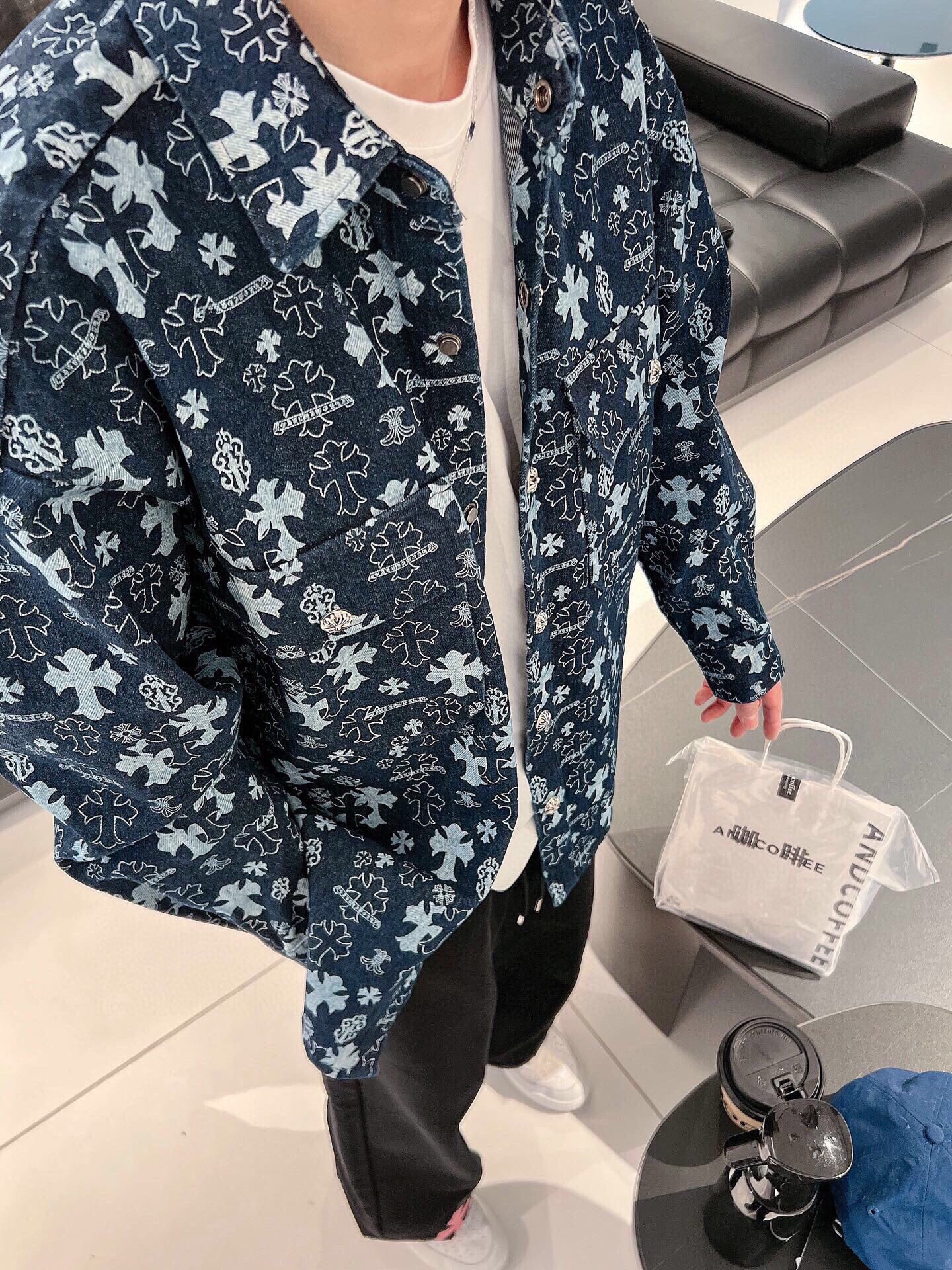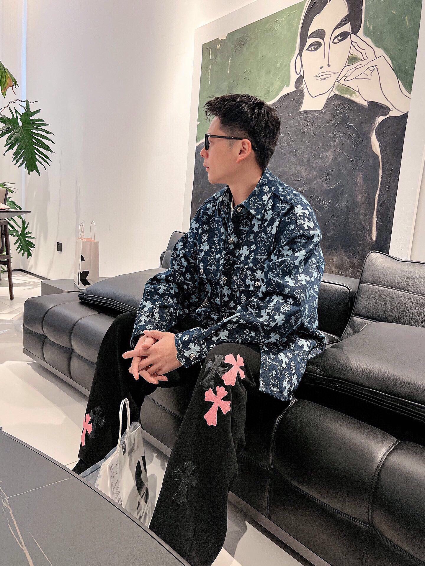 这款衣服是AAAAA 1:1 质量 (非常棒). 使用了和原版一模一样的材料. 商标部分也保持了和克罗心/Chrome Hearts一样. 图片拍摄是实物衣服拍摄, 您所收到的实物保证和我们图片一模一样.
