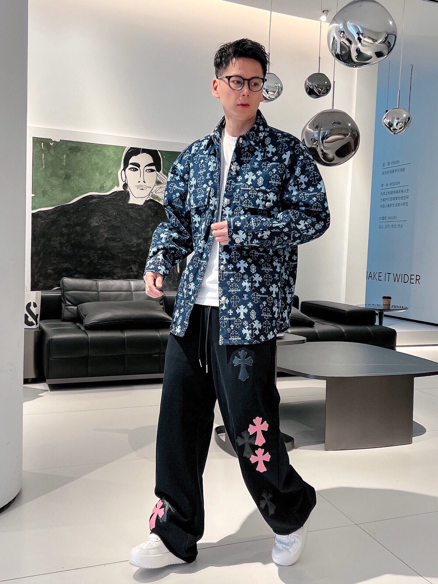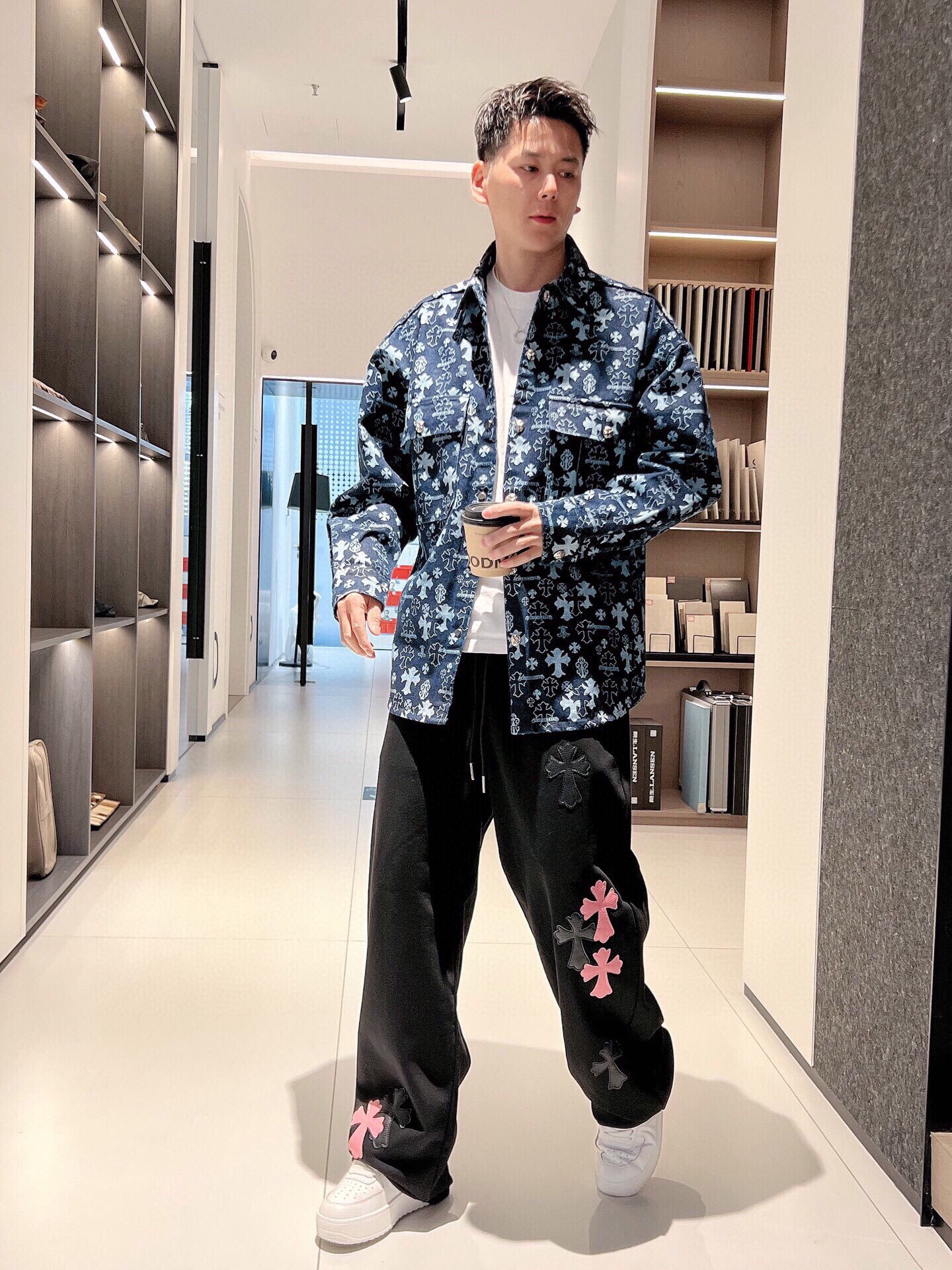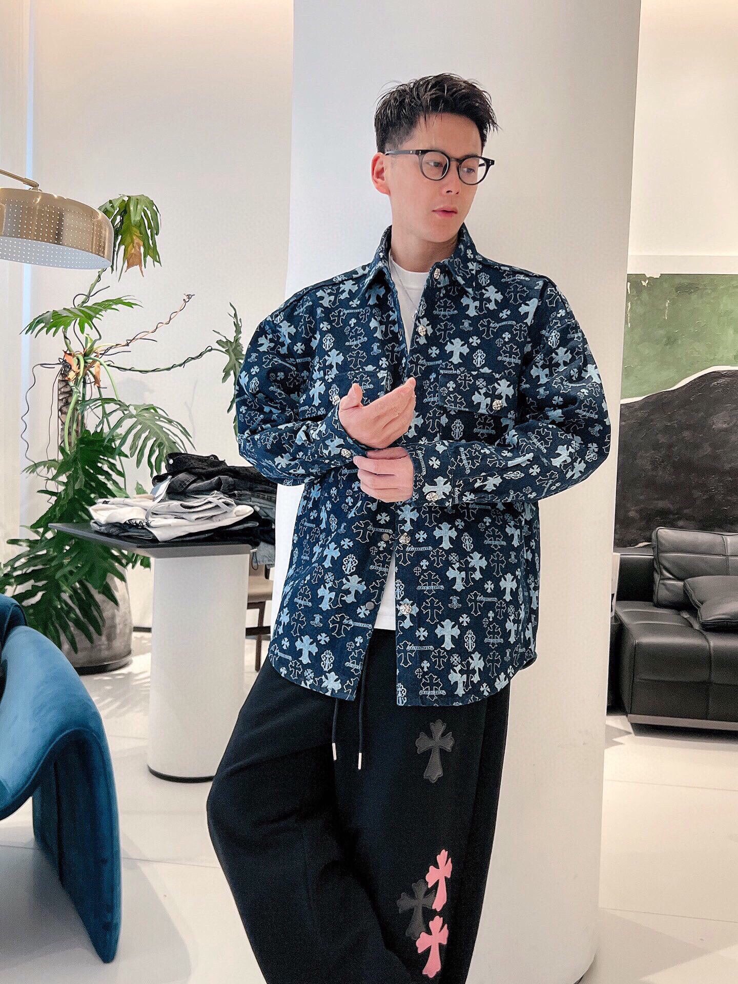 这款衣服是AAAAA 1:1 质量 (非常棒). 使用了和原版一模一样的材料. 商标部分也保持了和克罗心/Chrome Hearts一样. 图片拍摄是实物衣服拍摄, 您所收到的实物保证和我们图片一模一样.