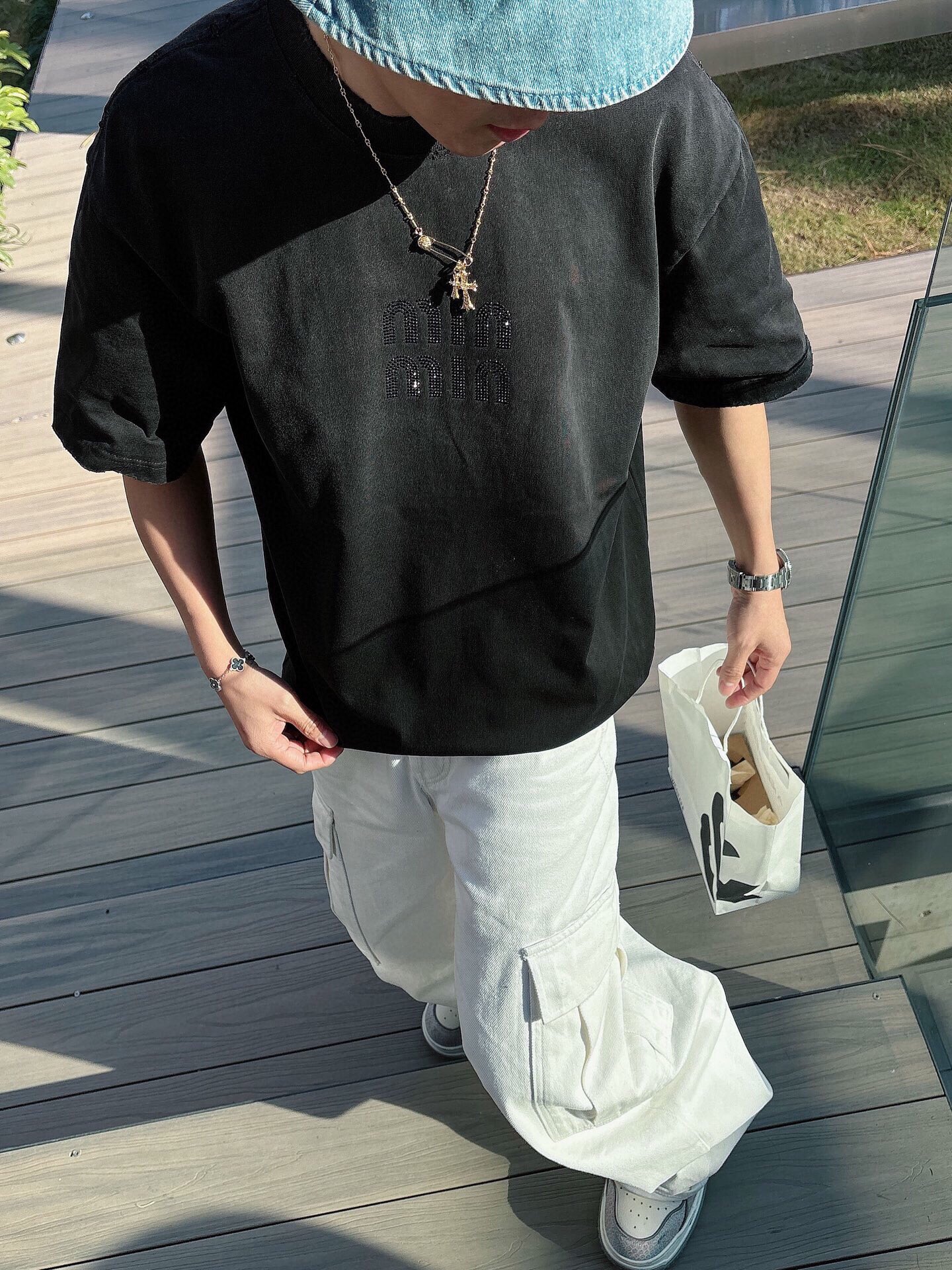 这款衣服是AAAAA 1:1 质量 (非常棒). 使用了和原版一模一样的材料. 商标部分也保持了和缪缪/Miu Miu一样. 图片拍摄是实物衣服拍摄, 您所收到的实物保证和我们图片一模一样.